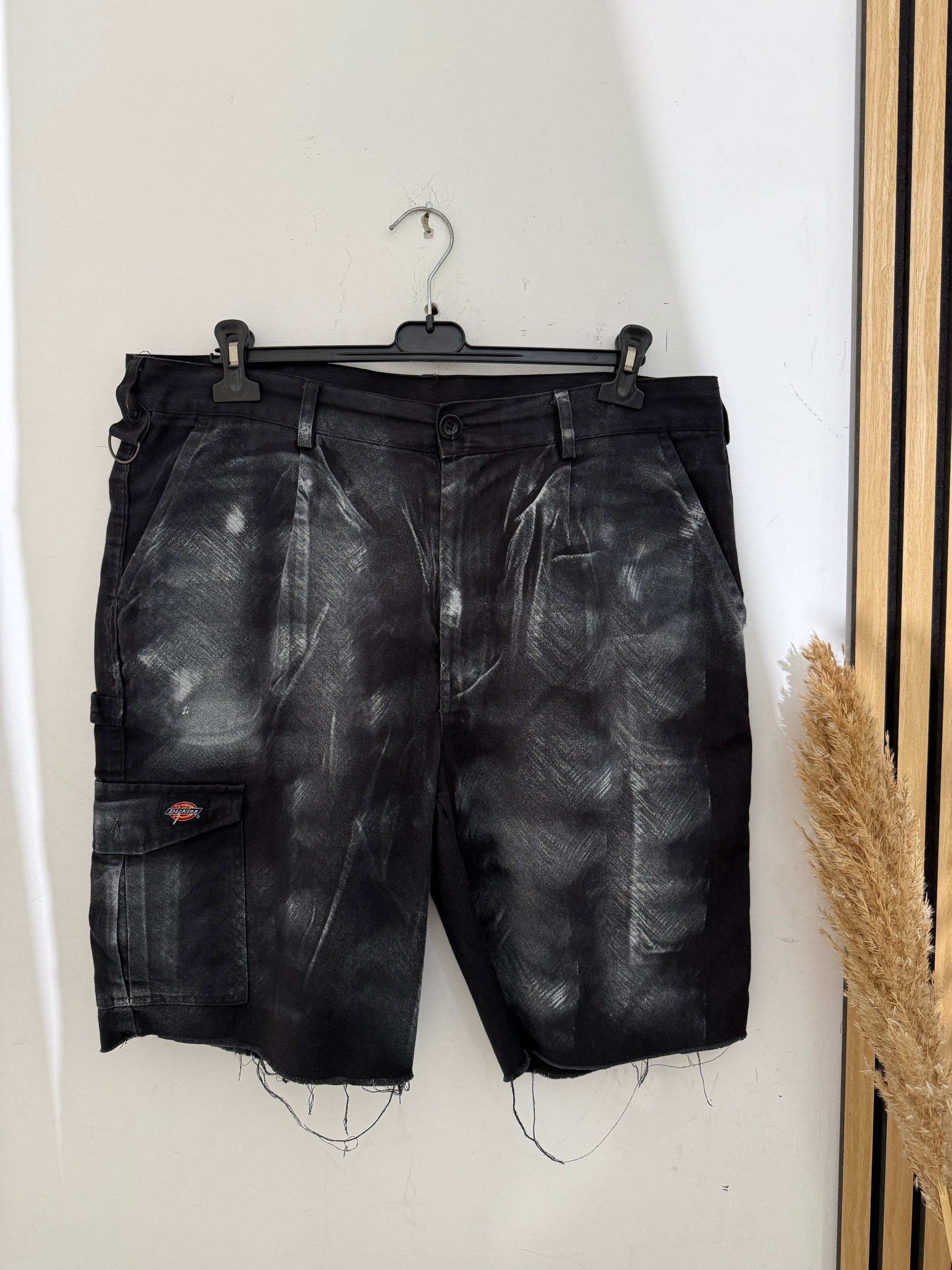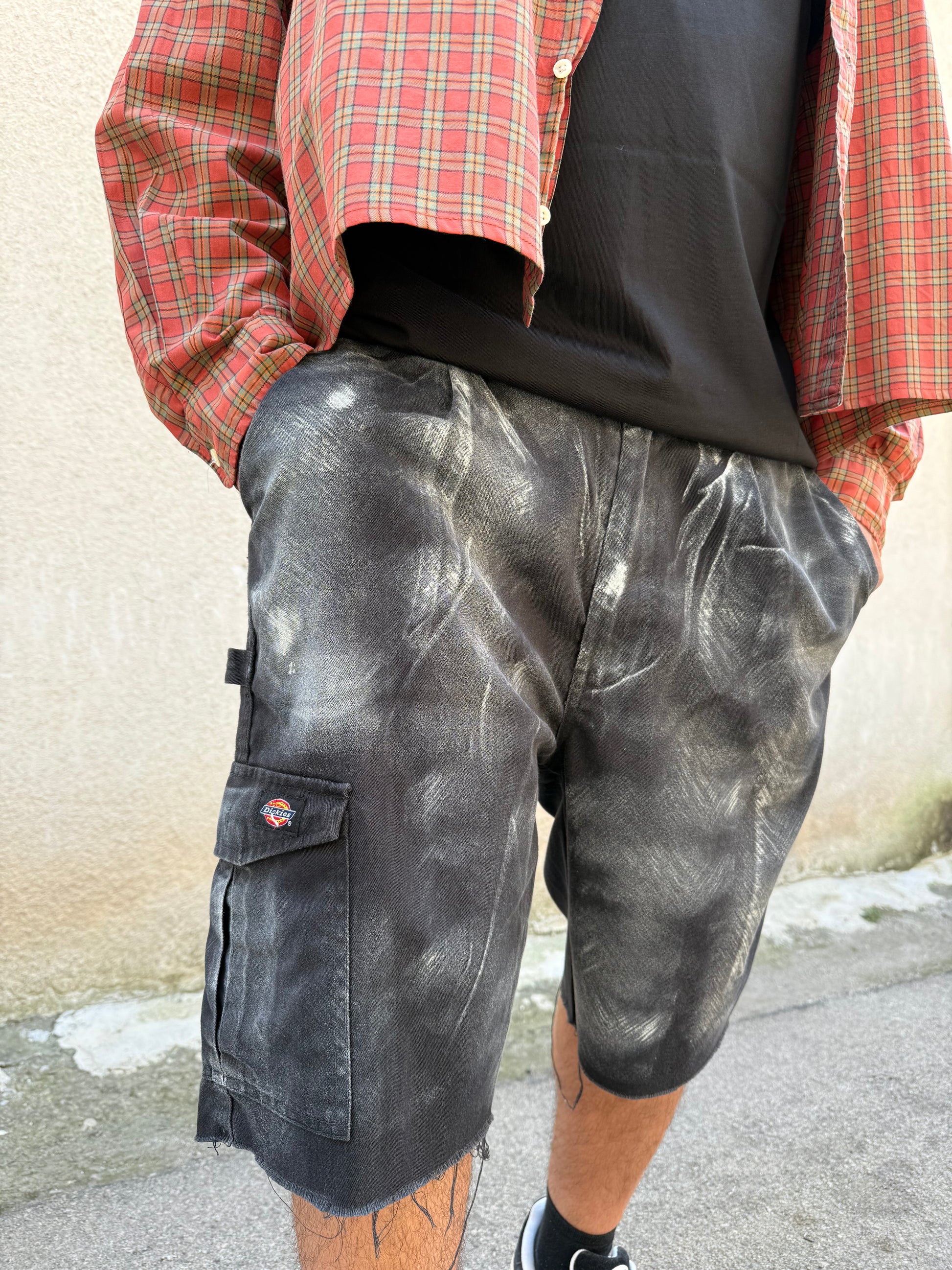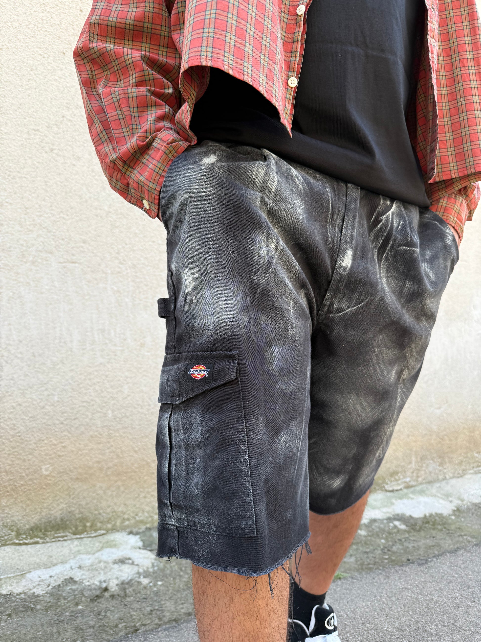 Bermuda Dickies cistomizzato con tratti di vernice bianca solo sul fronte.