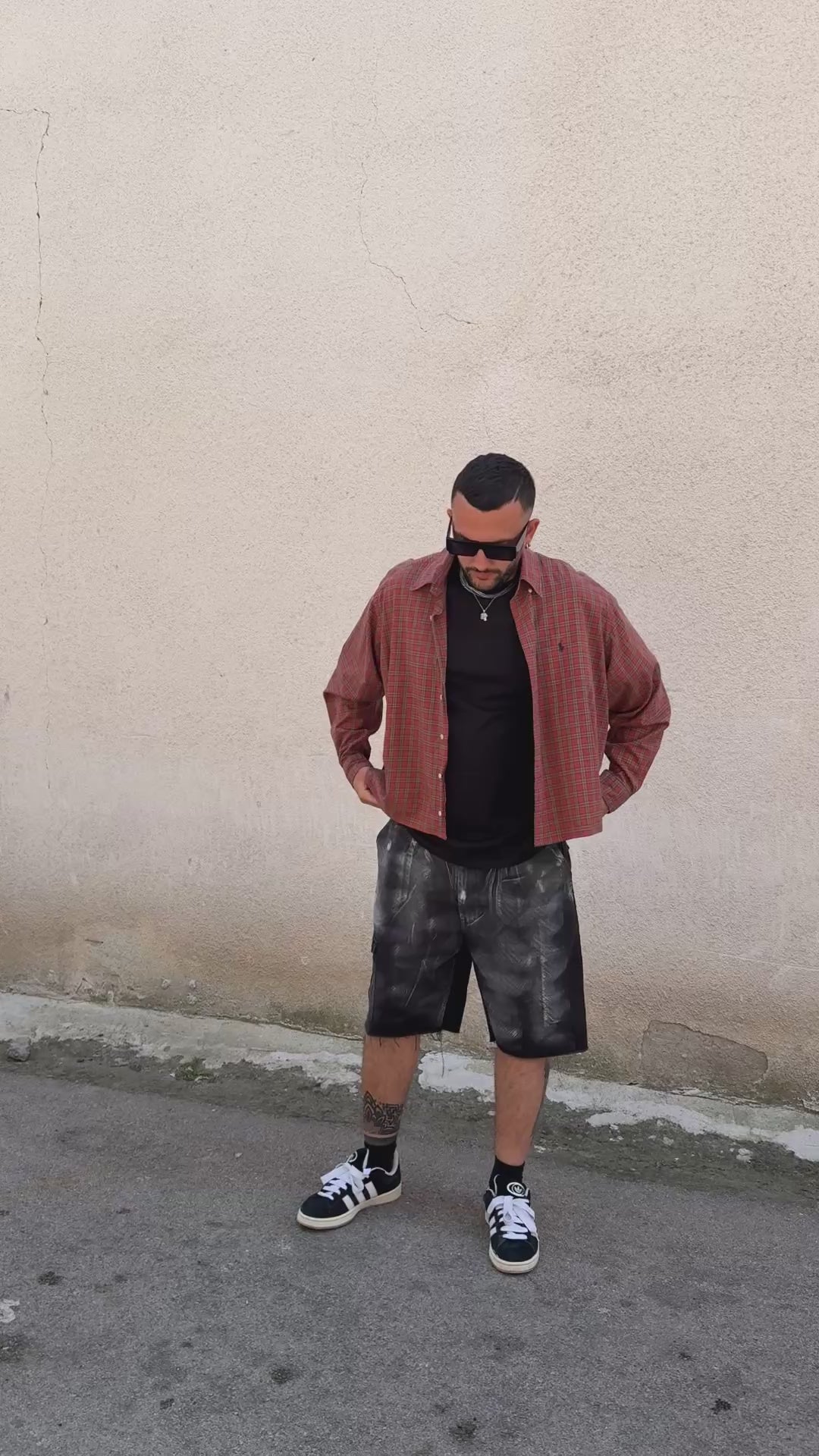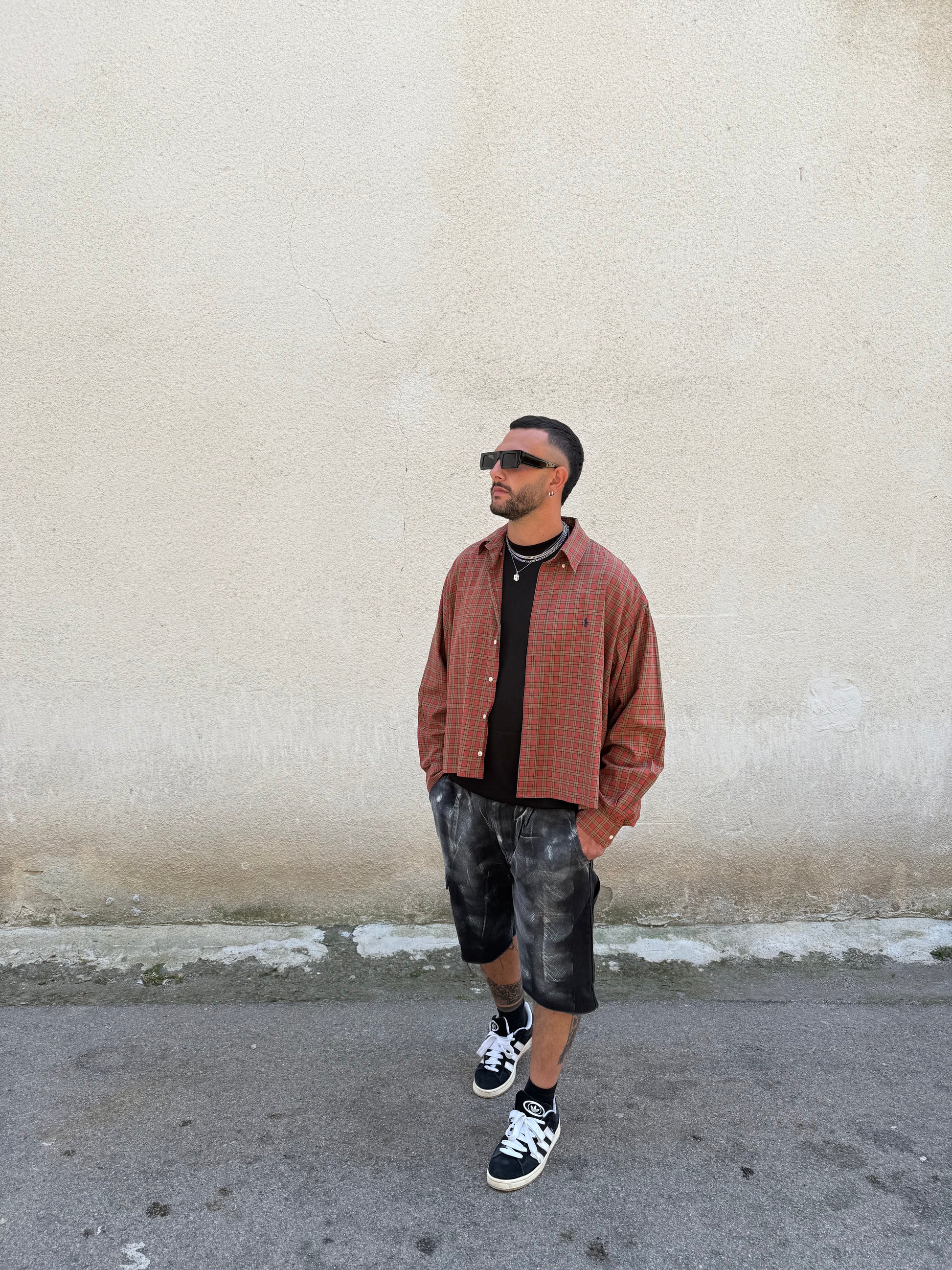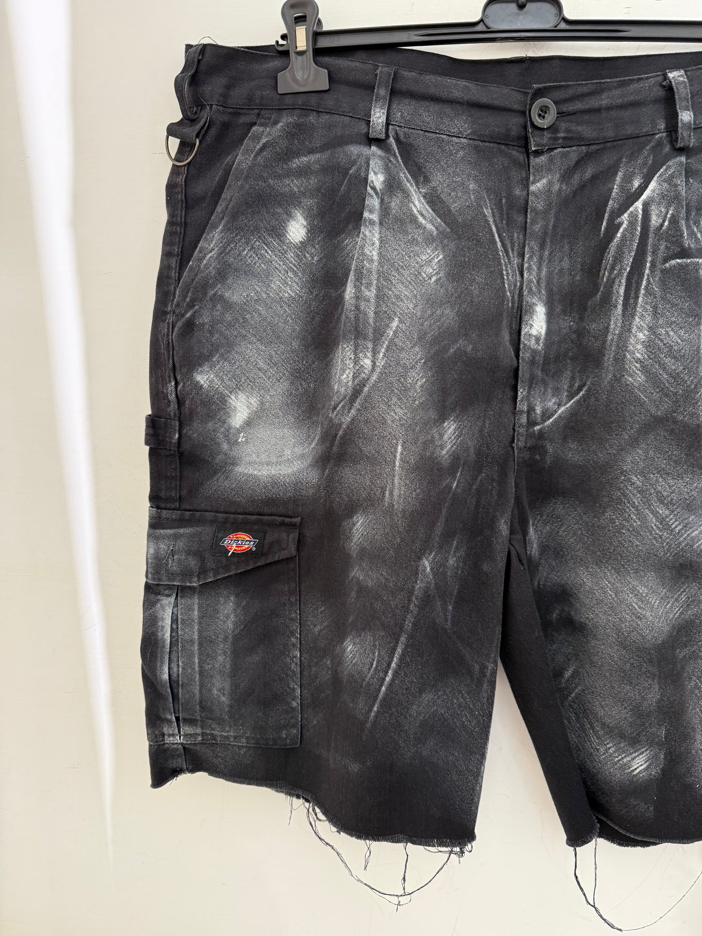 Bermuda Dickies cistomizzato con tratti di vernice bianca solo sul fronte.