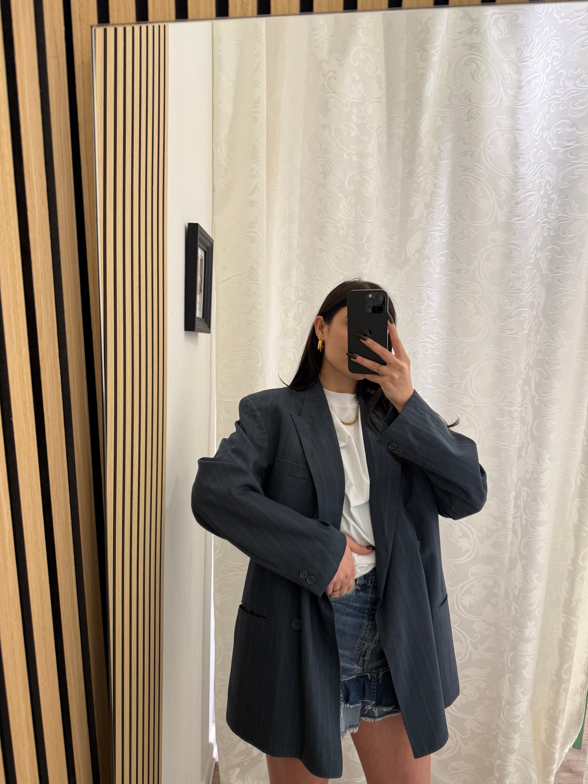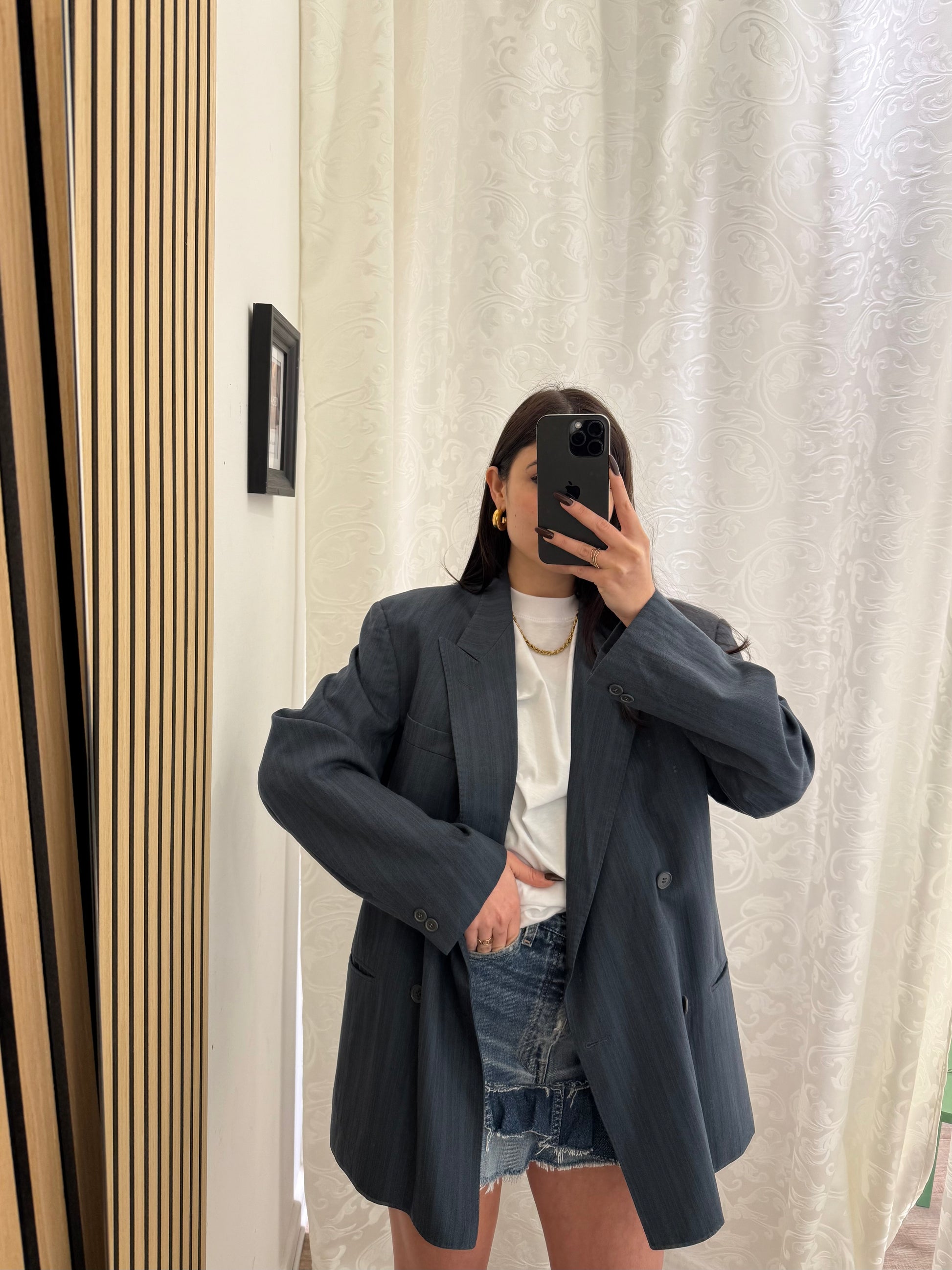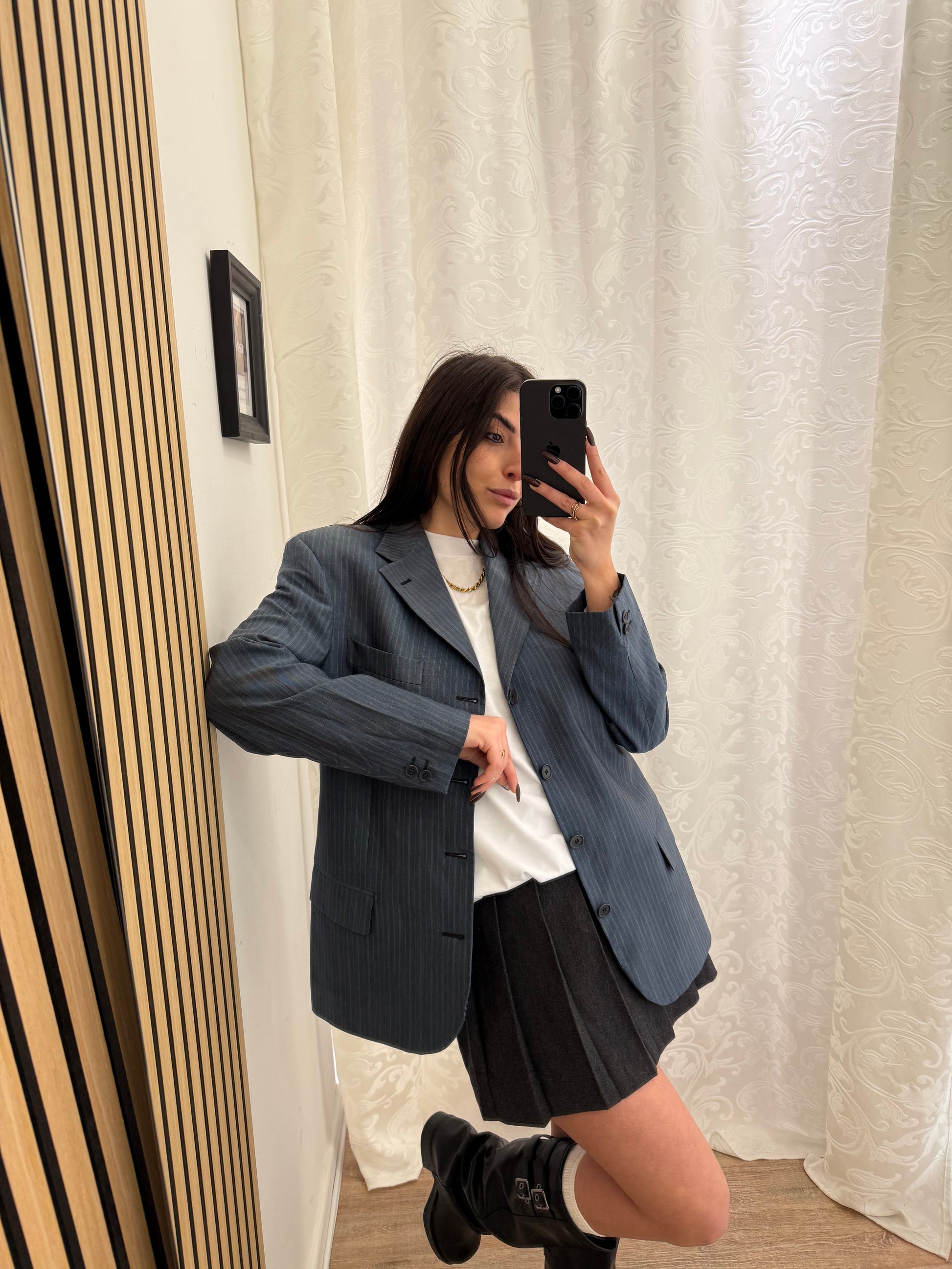 lBlazer Vintage gessato Doppiopetto Base sui toni dell’azzurro.