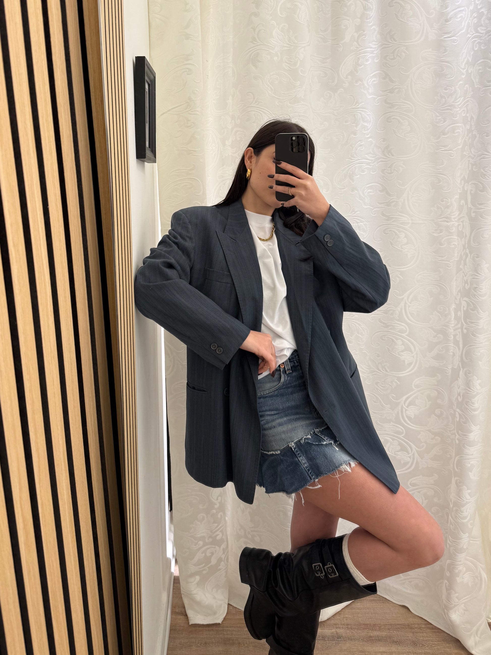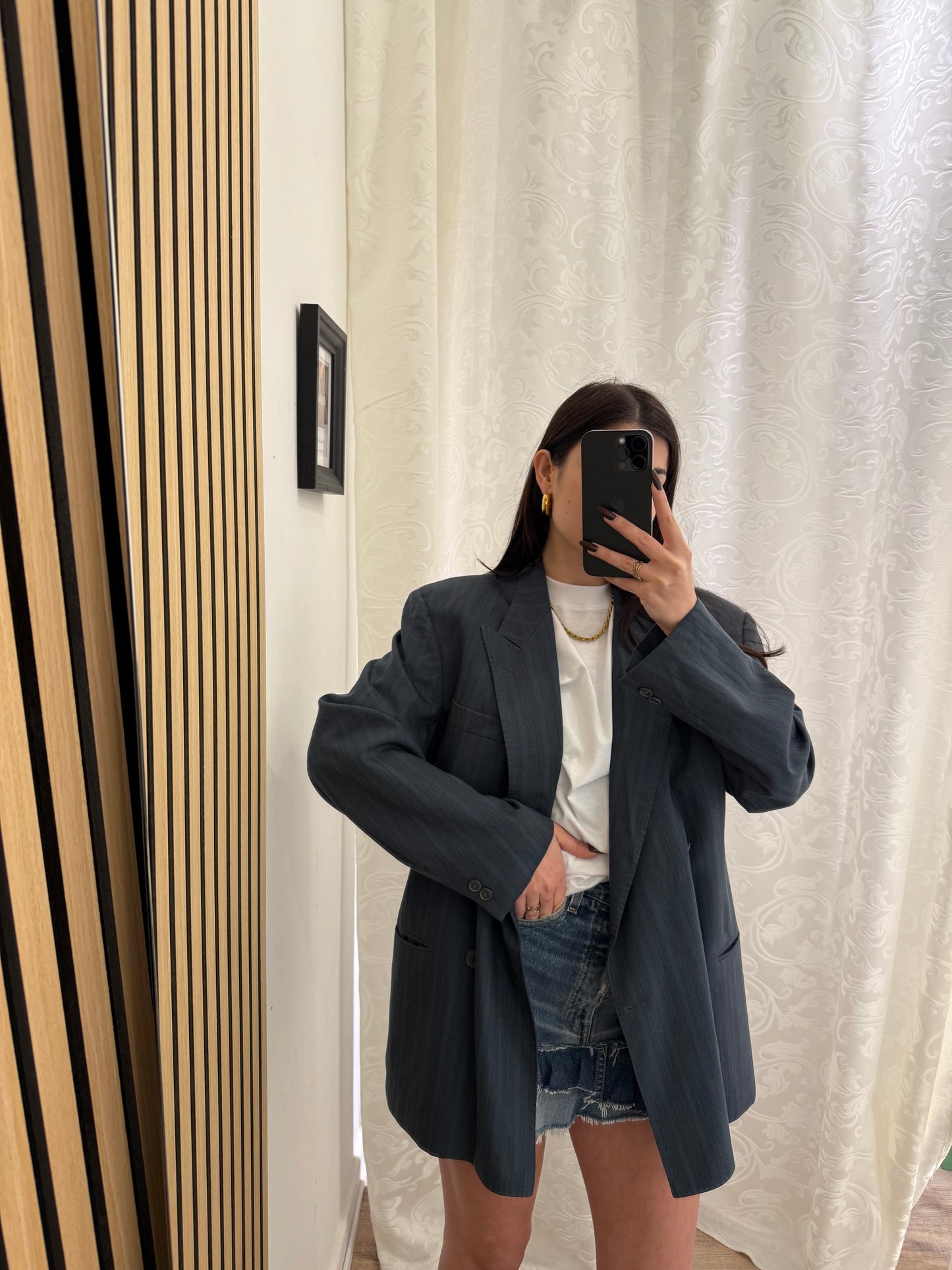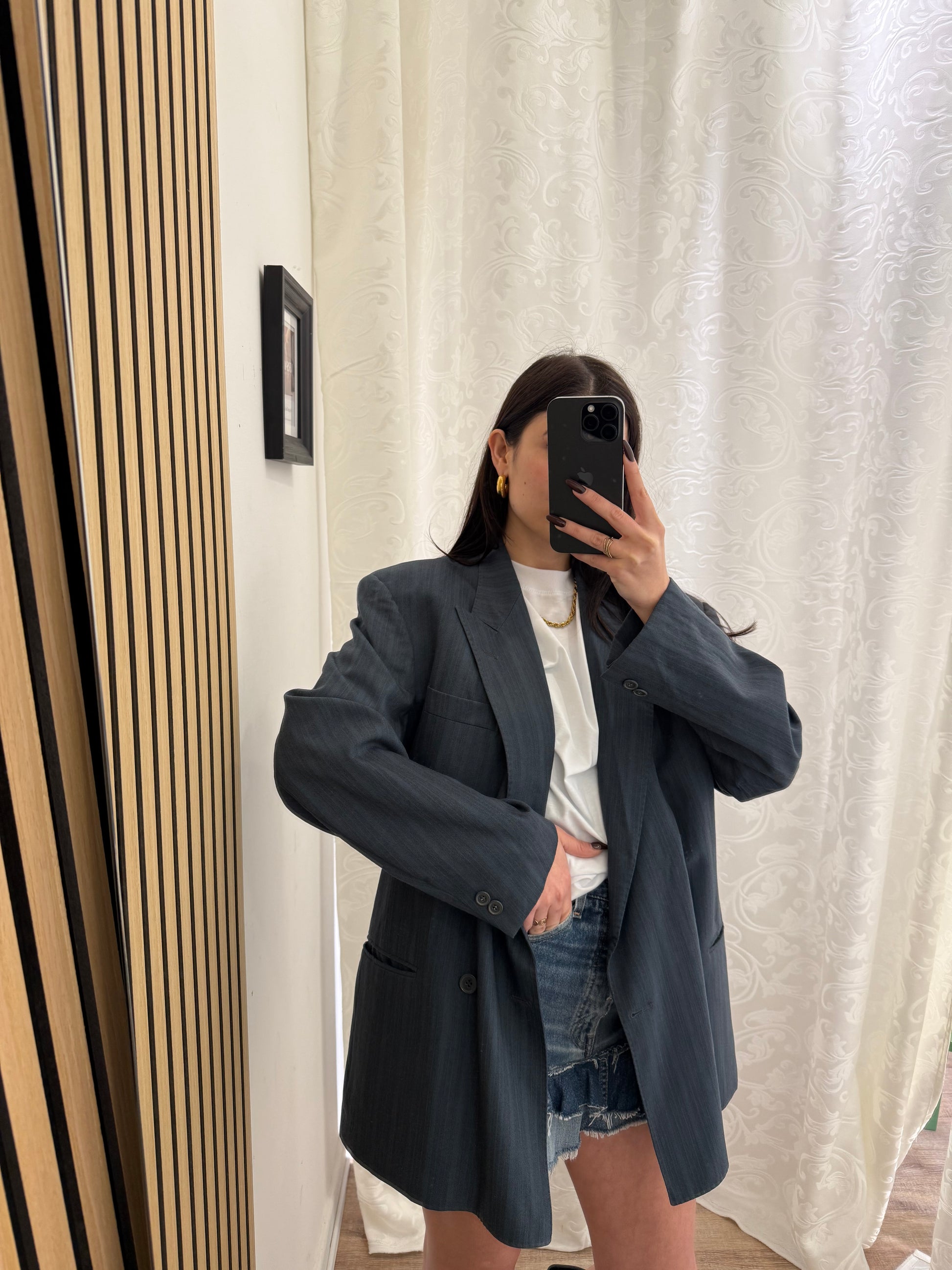 lBlazer Vintage gessato Doppiopetto Base sui toni dell’azzurro.