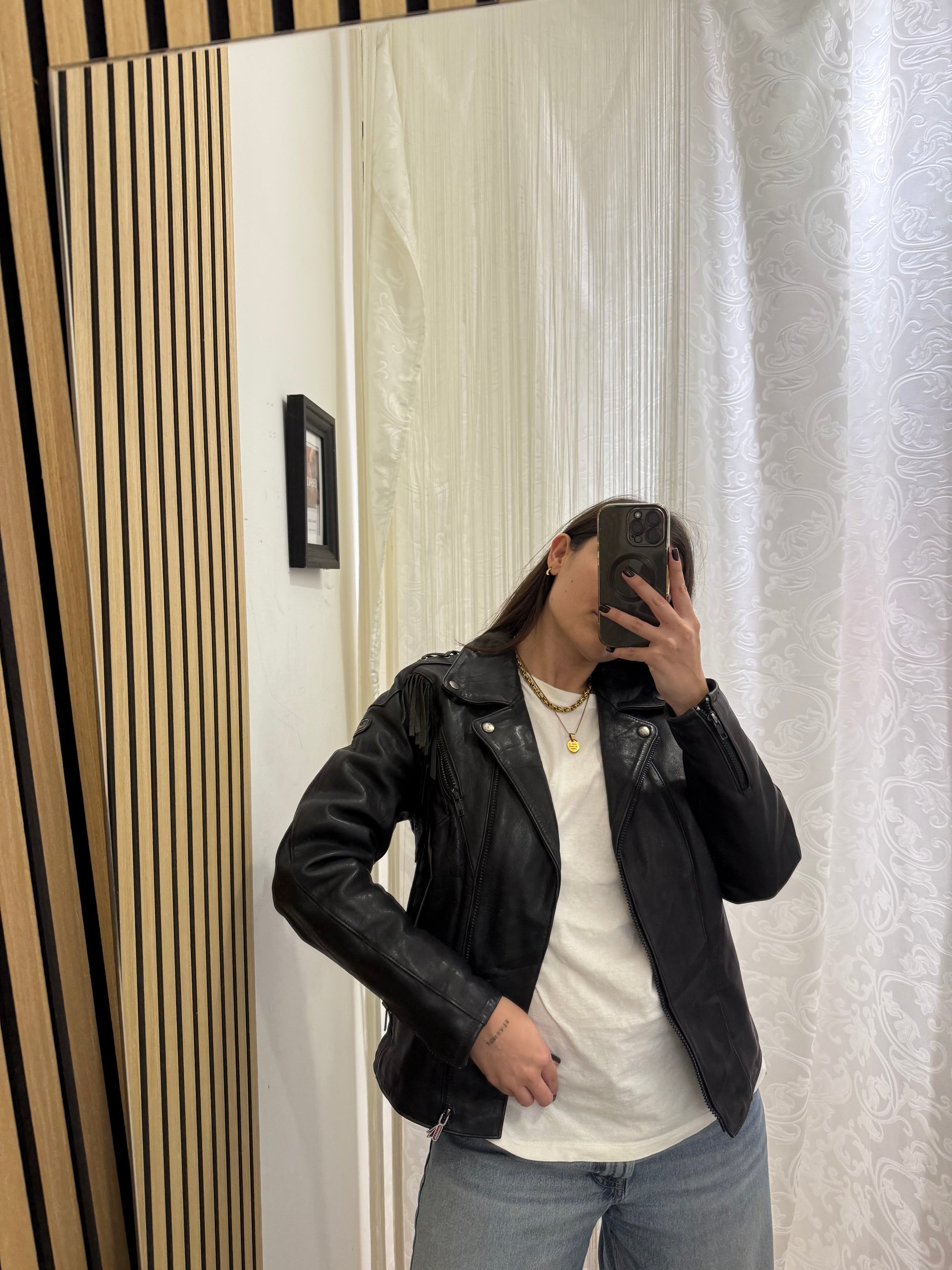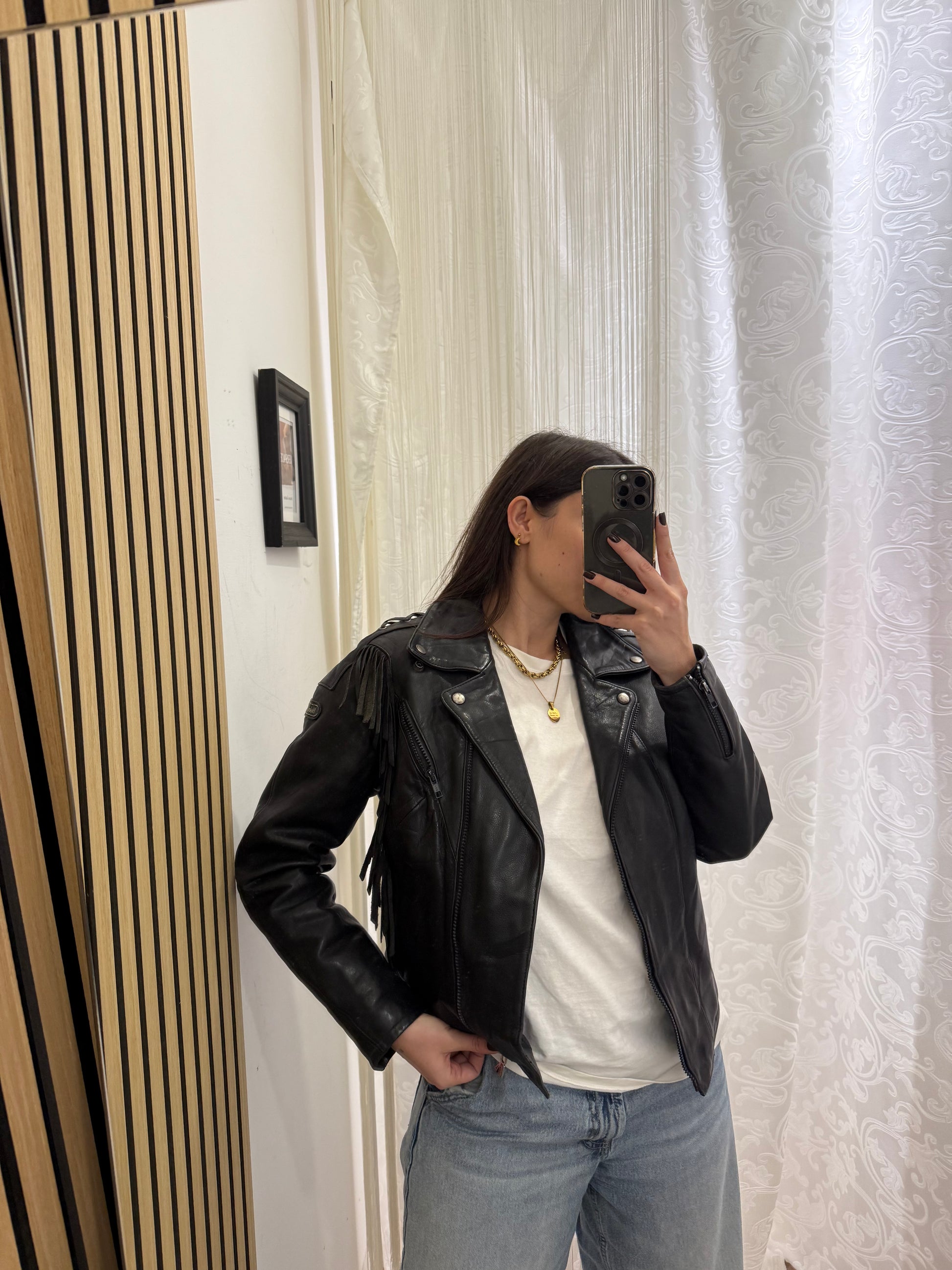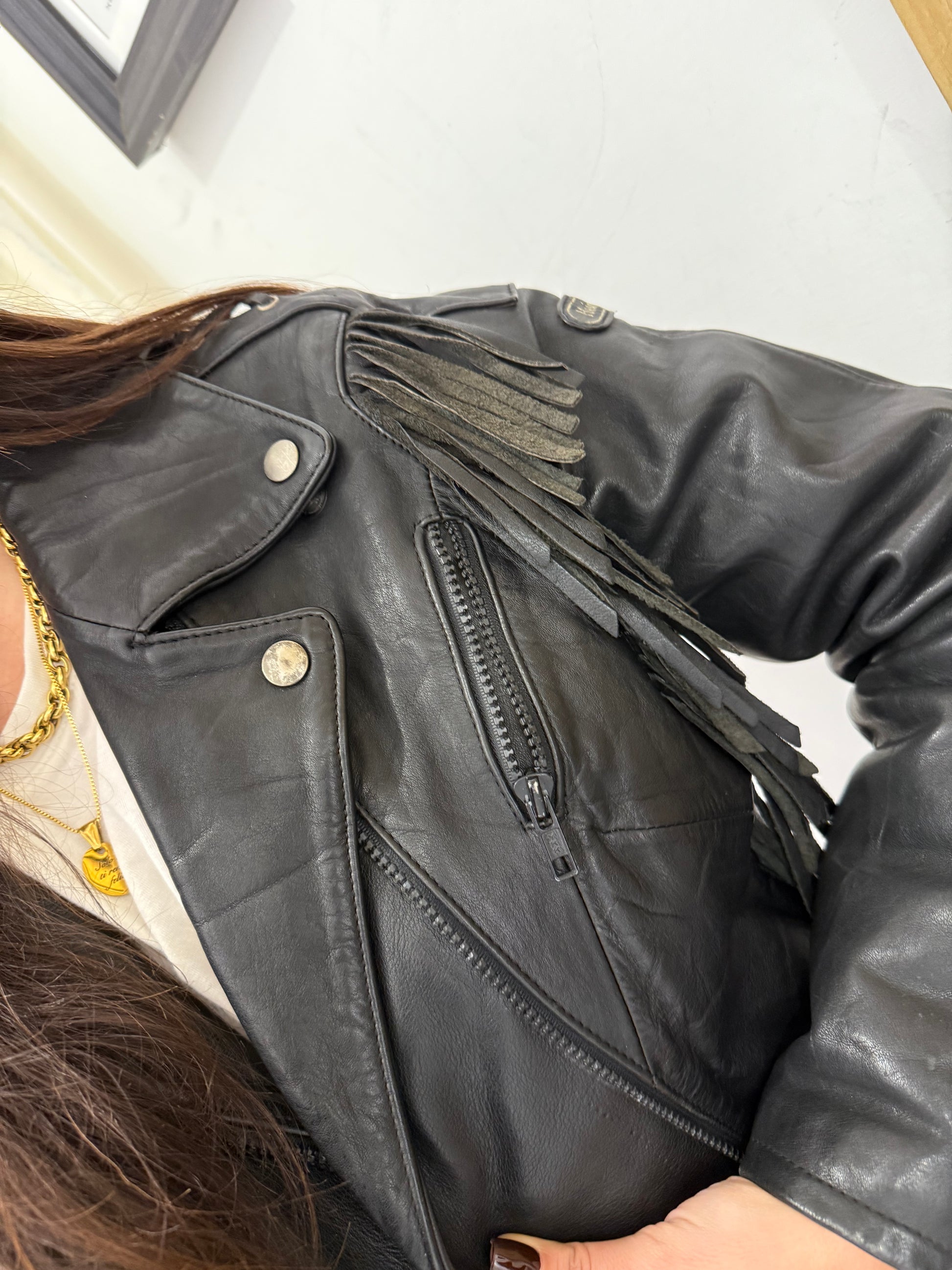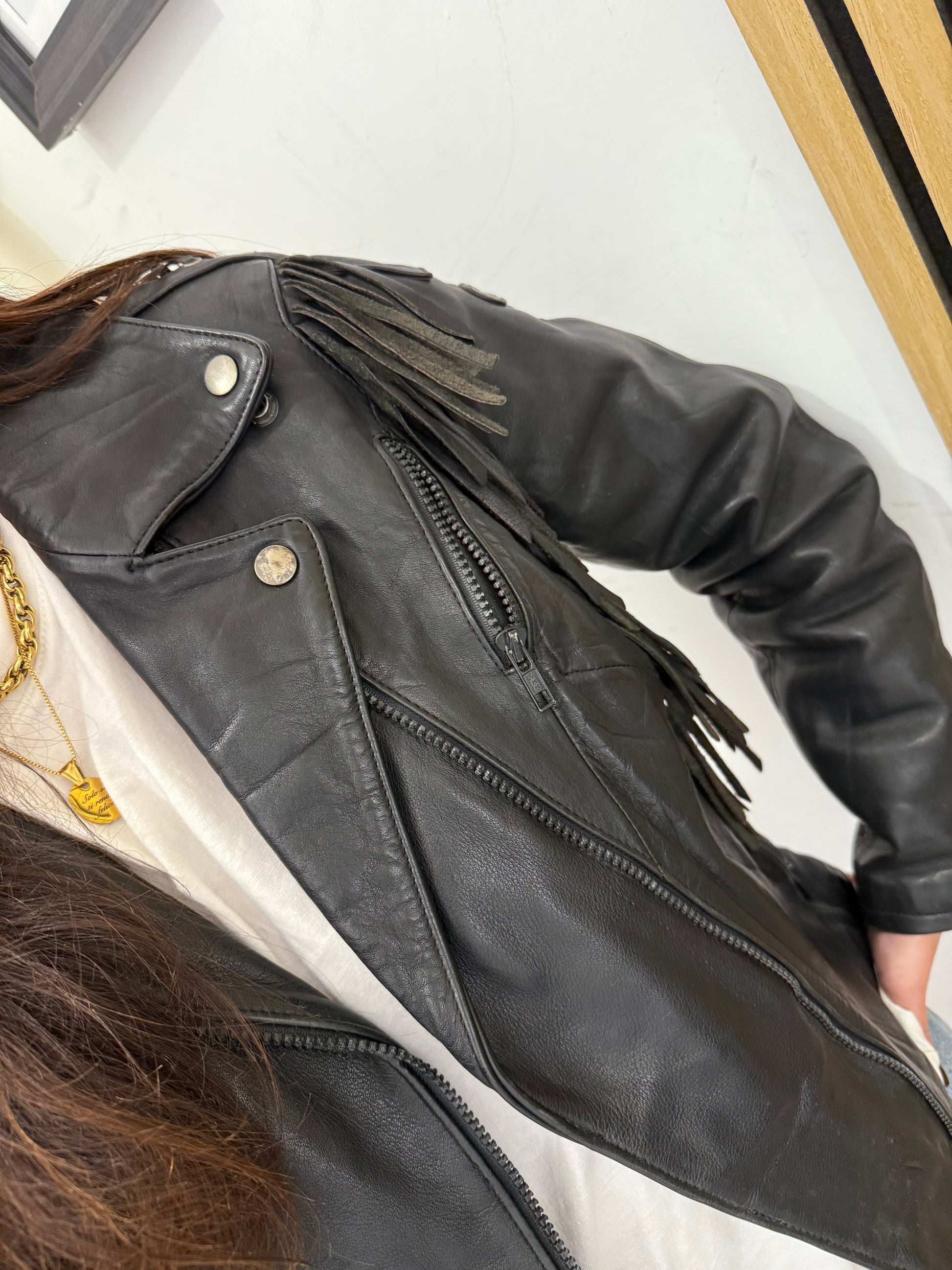Chiodo in vera pelle con frange
