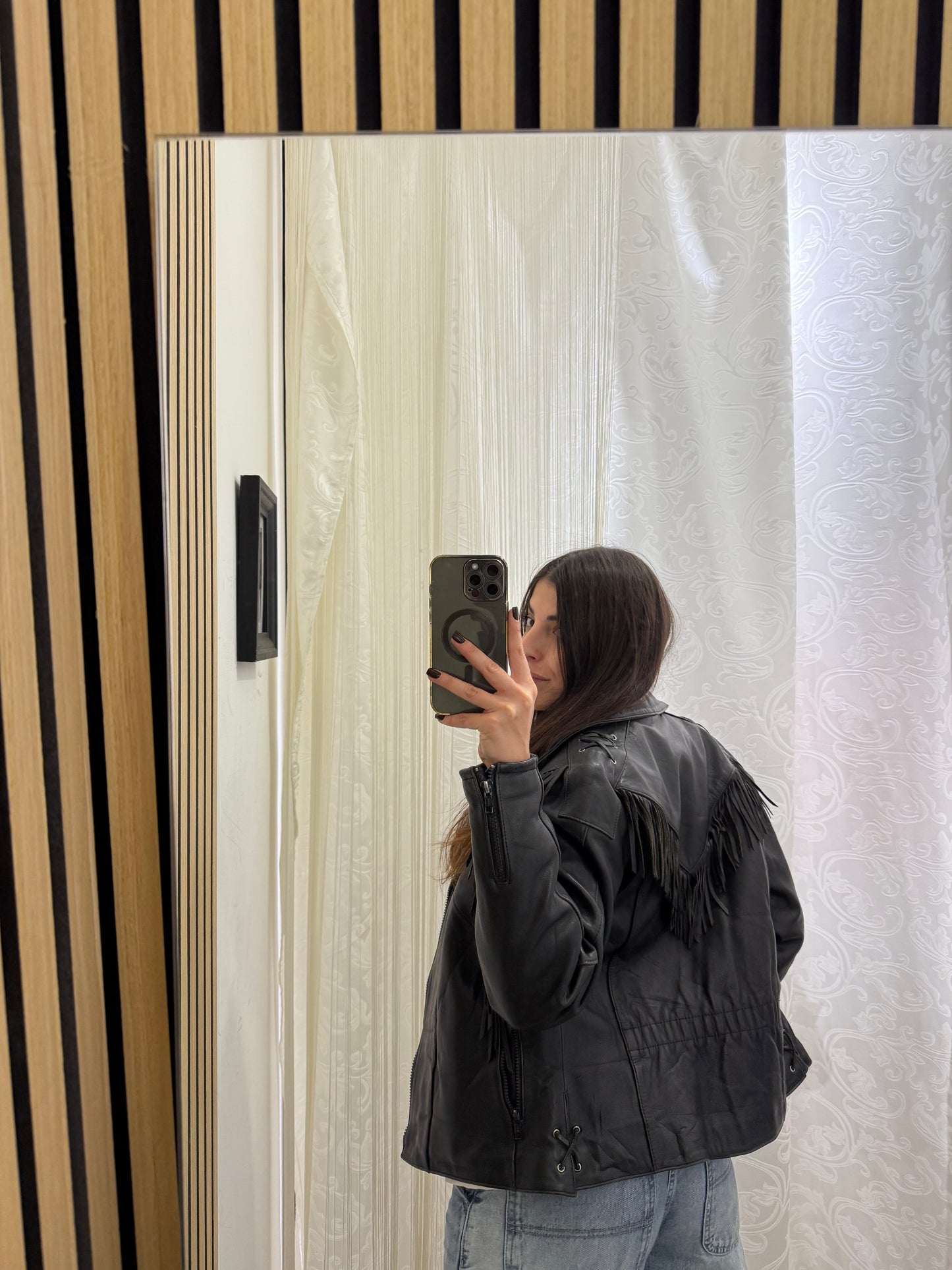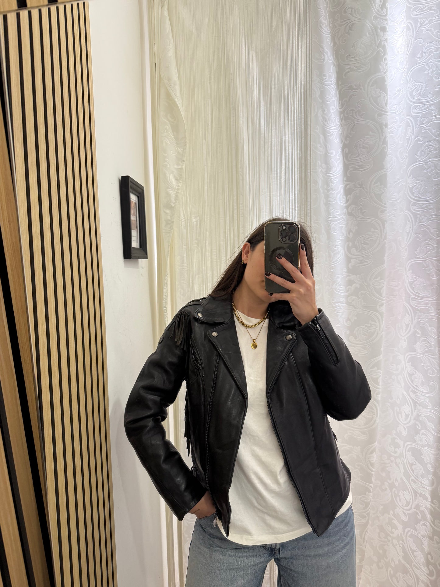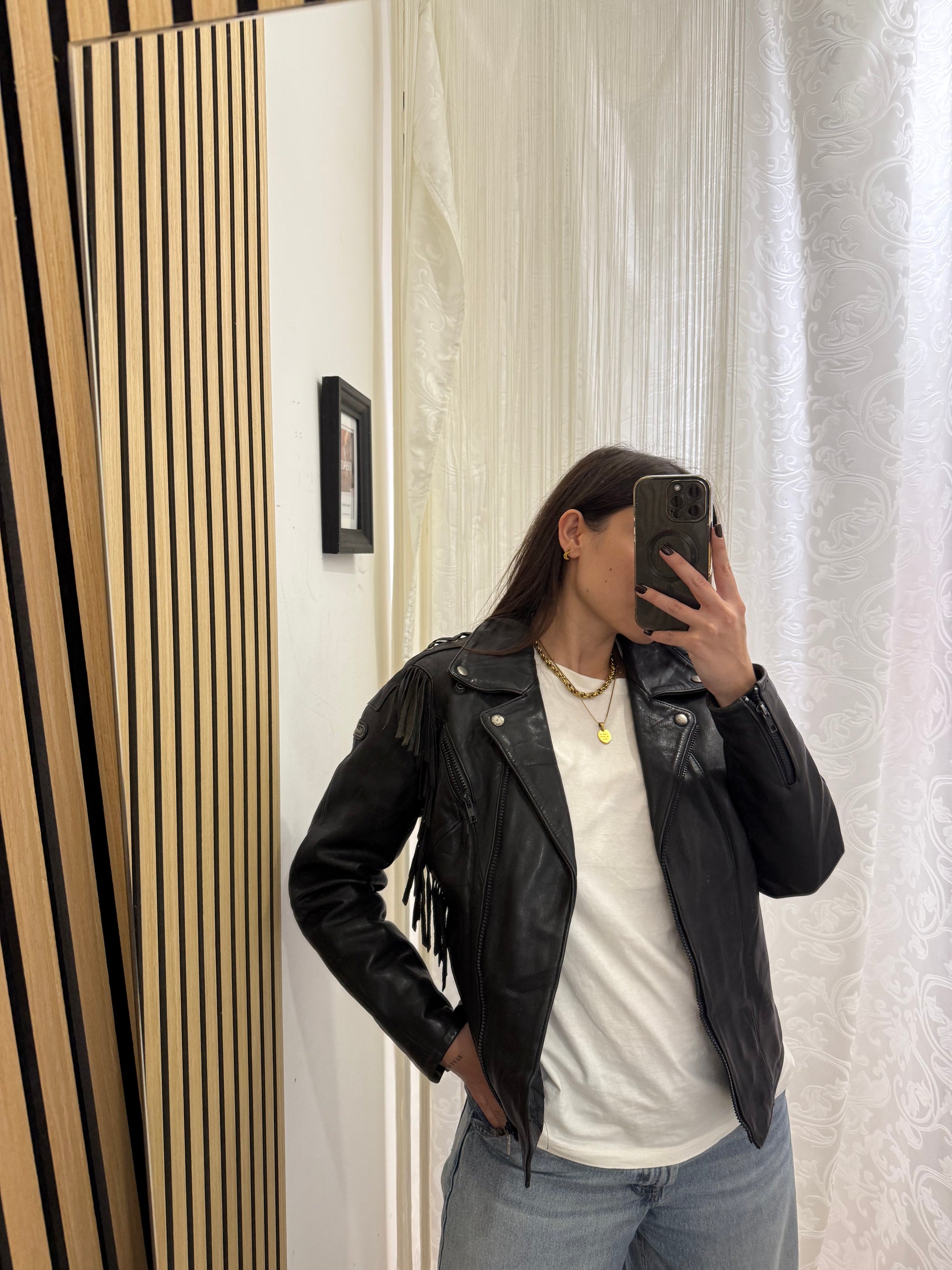 Chiodo in vera pelle con frange