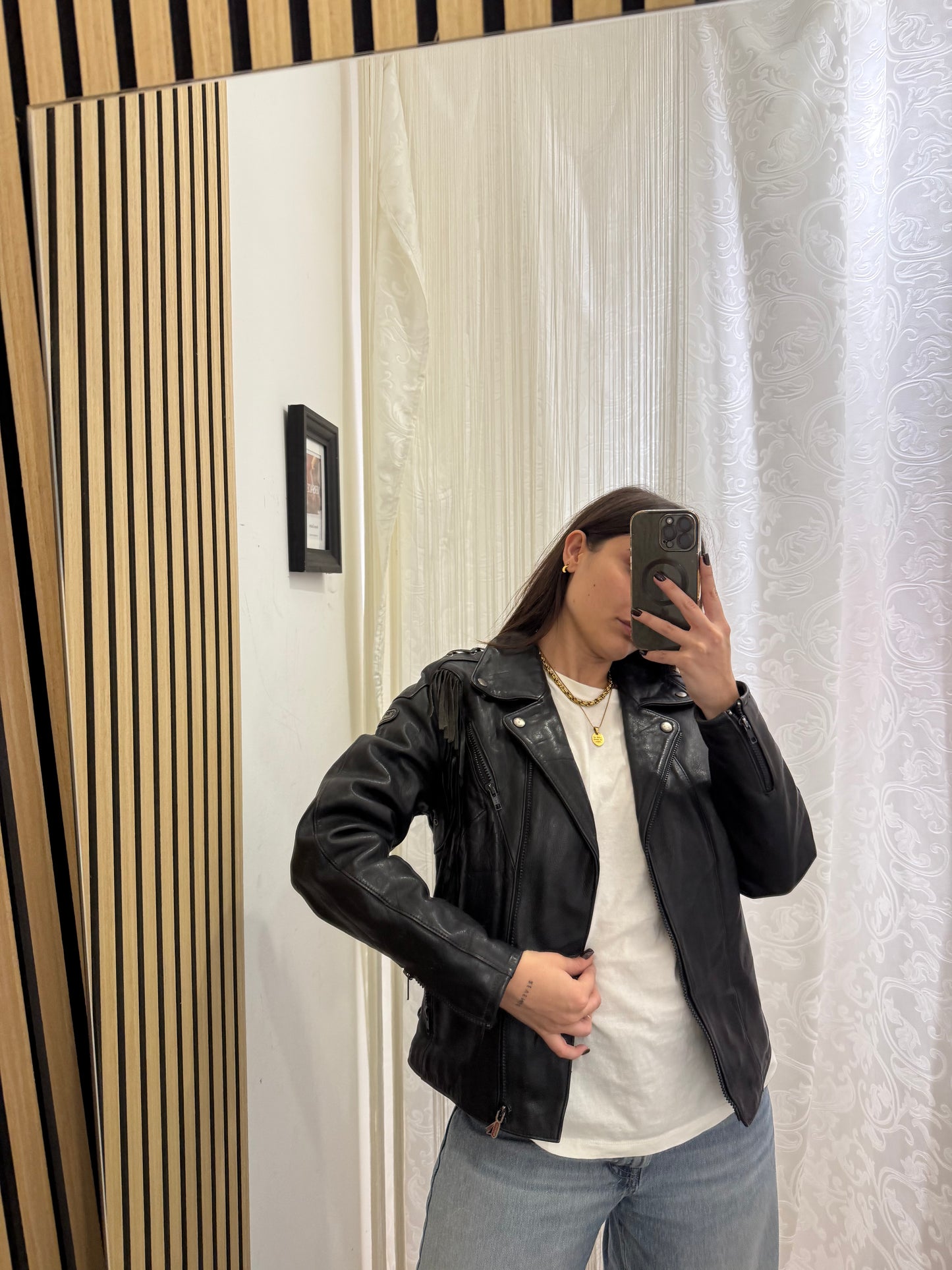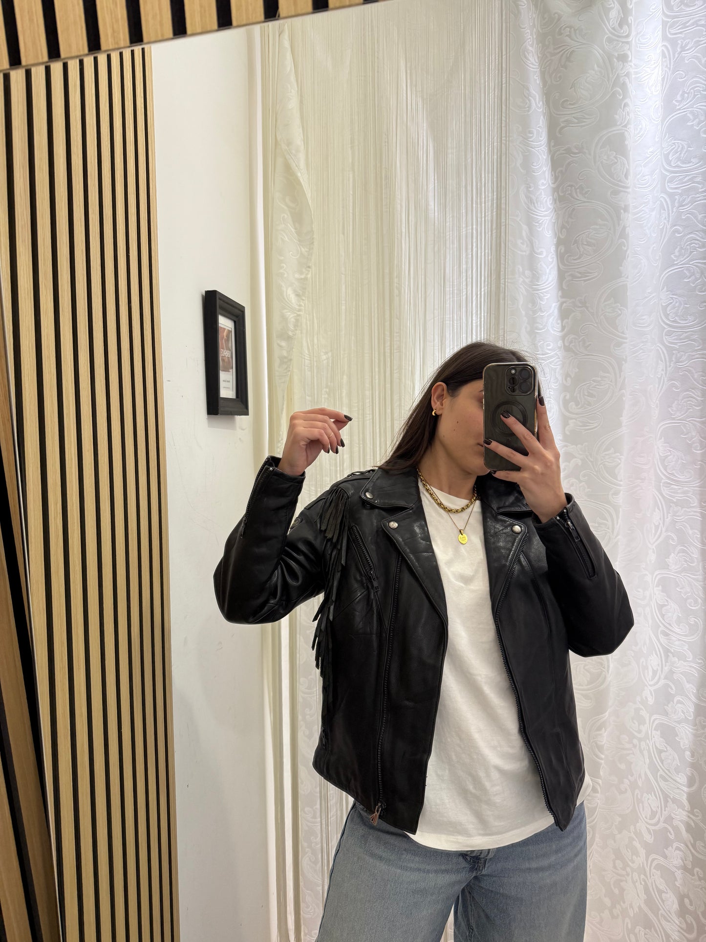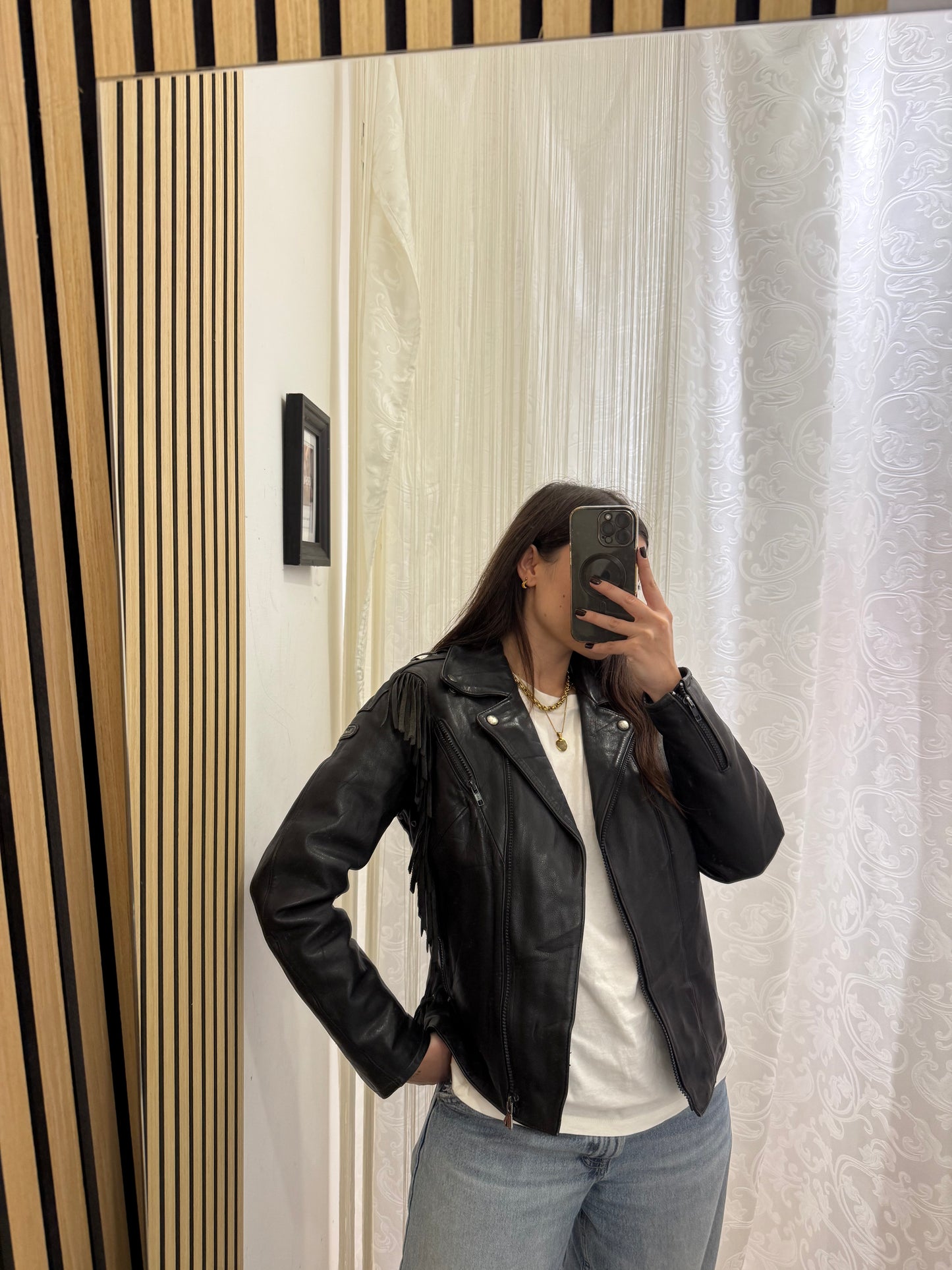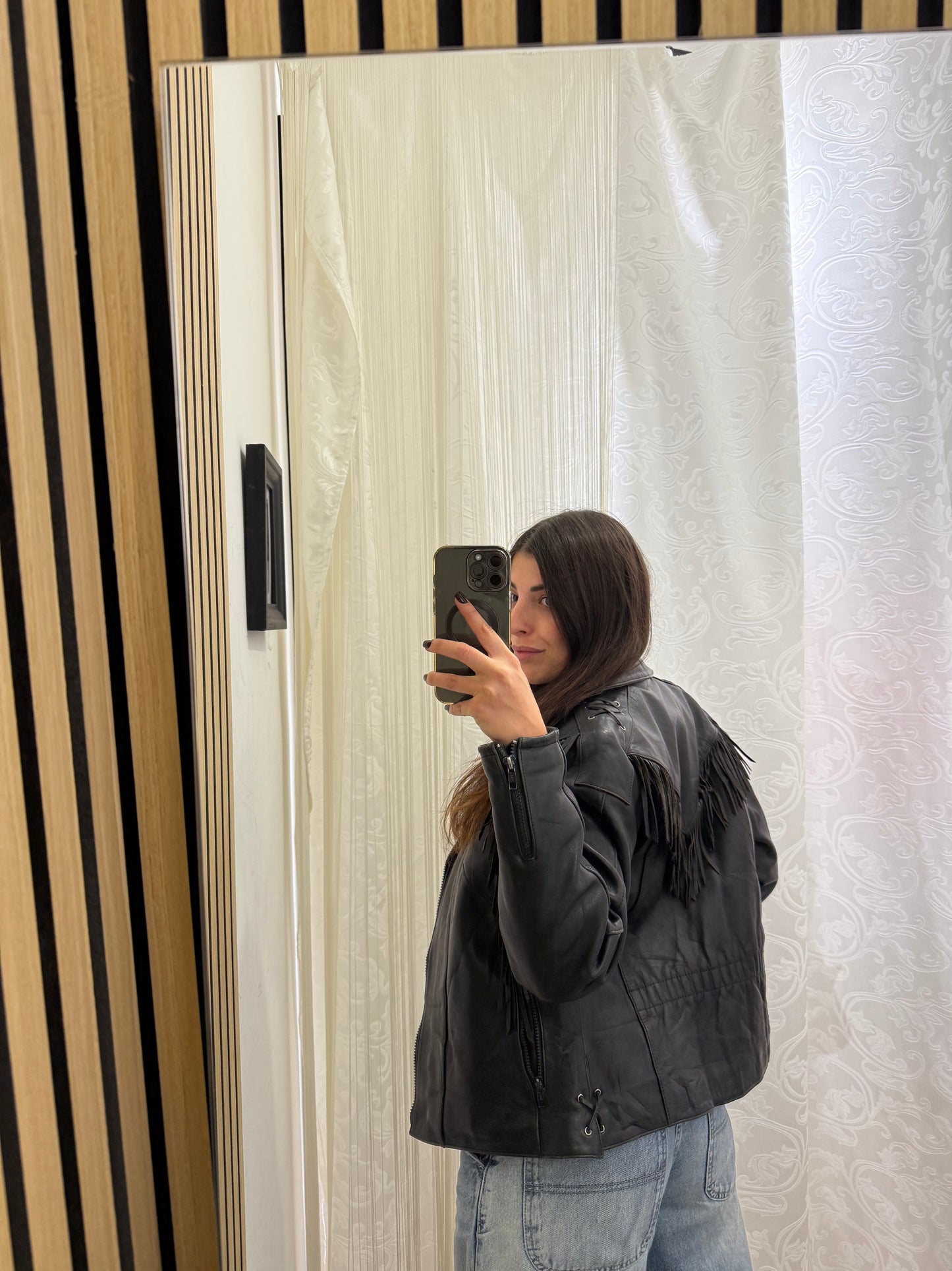 Chiodo in vera pelle con frange