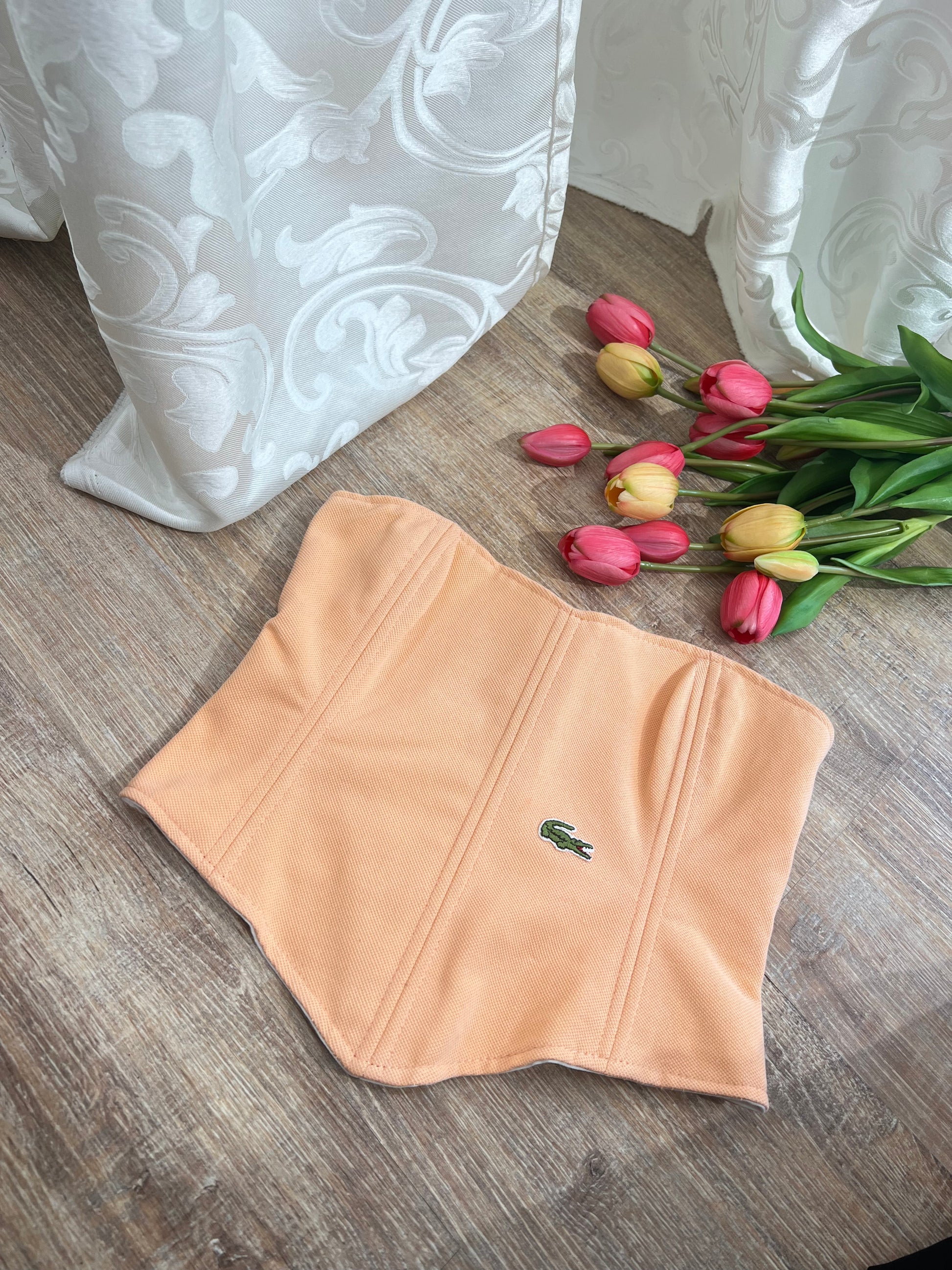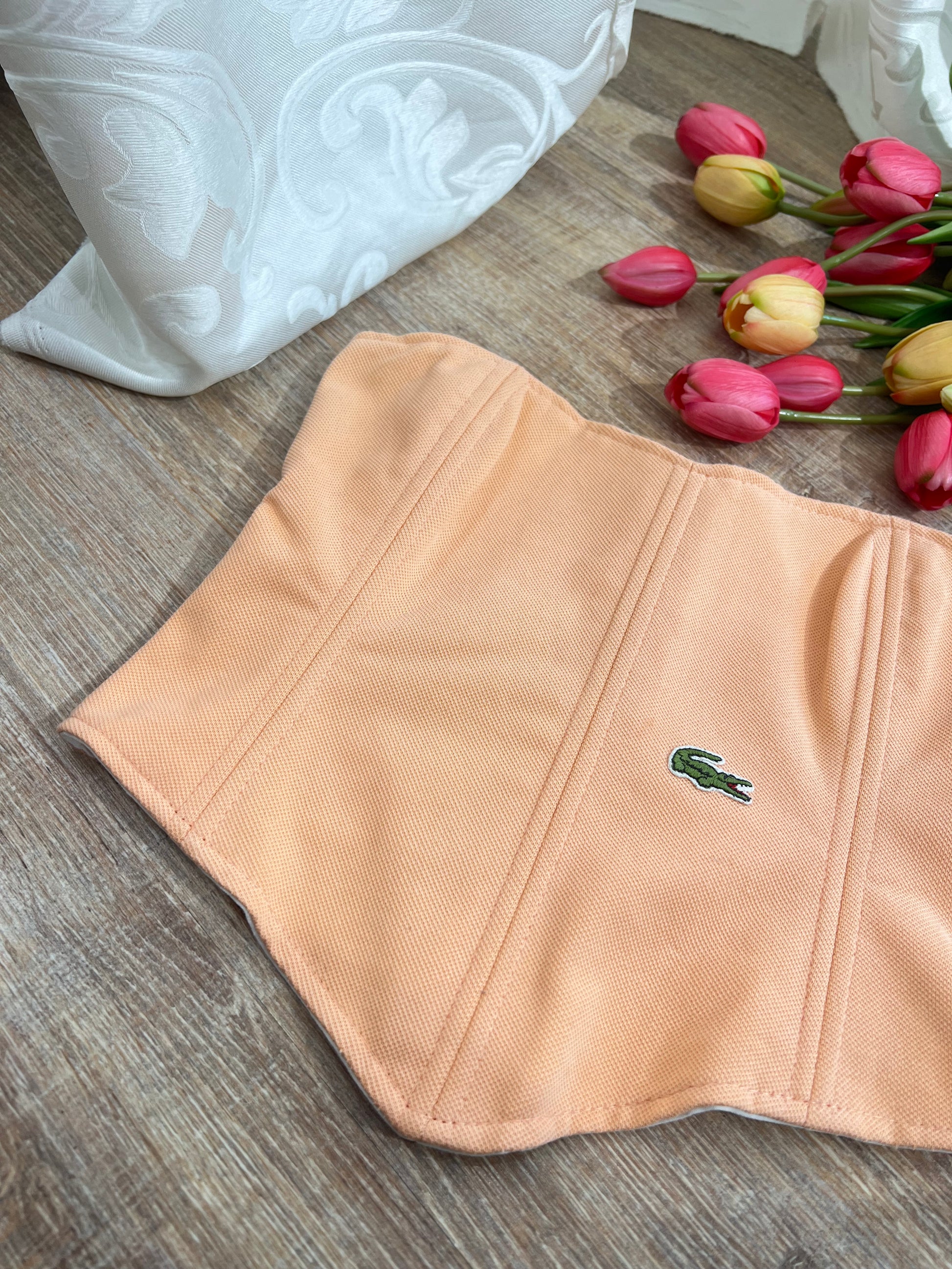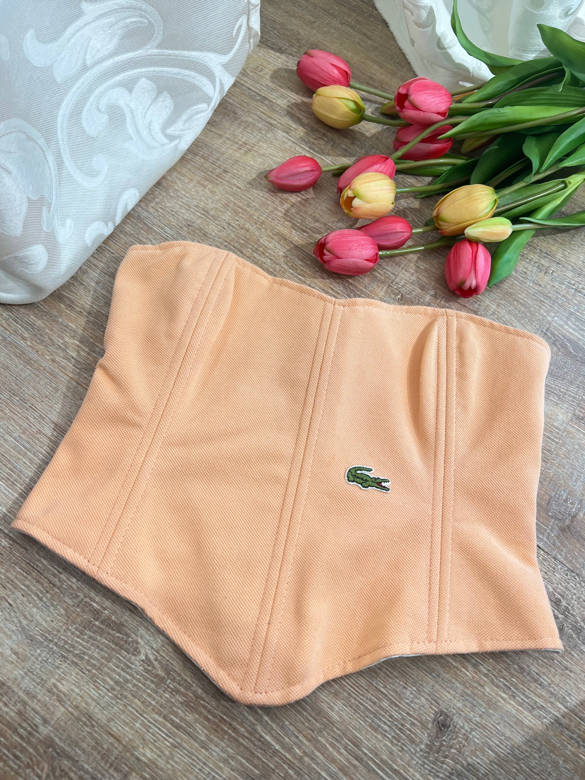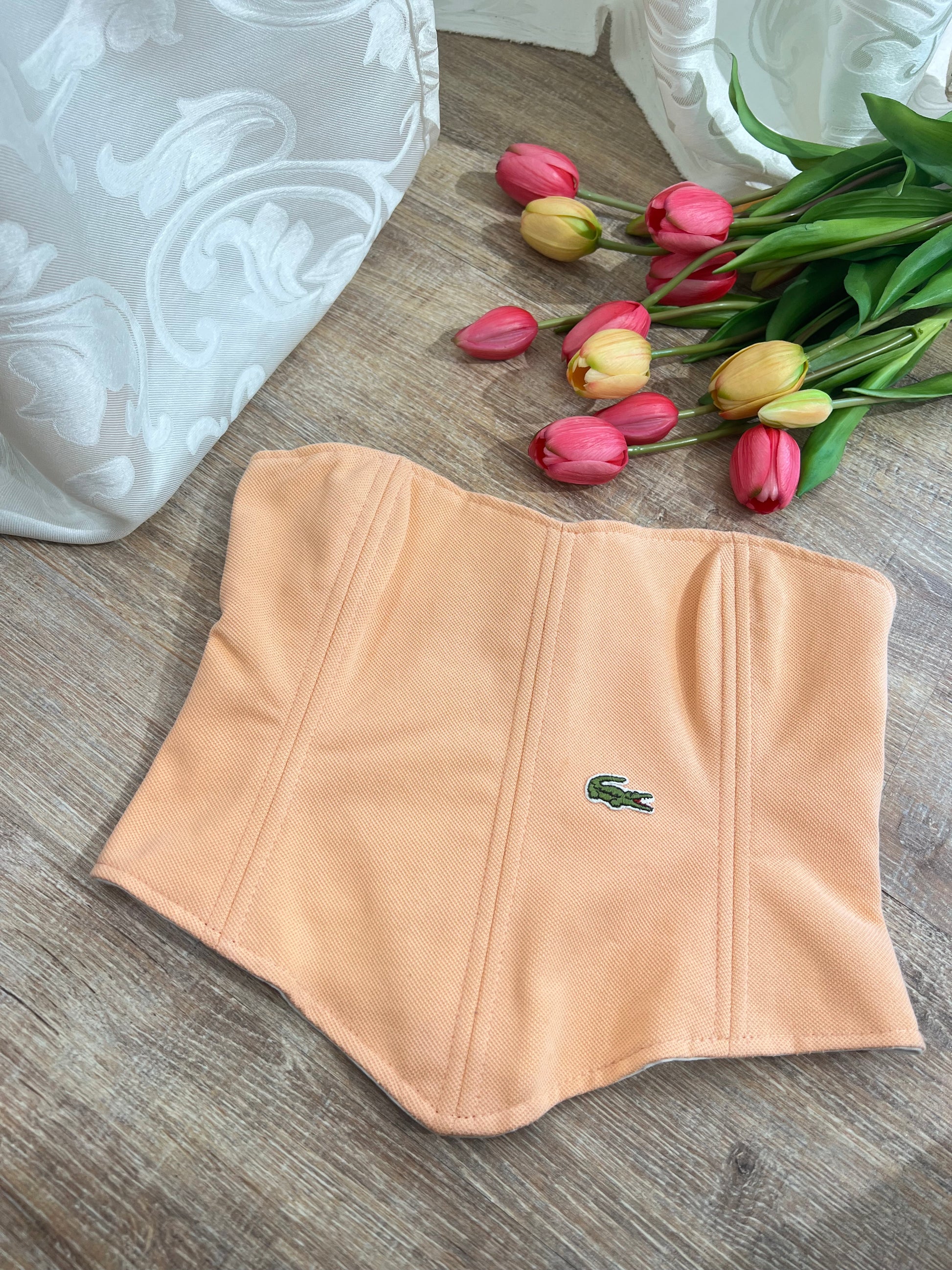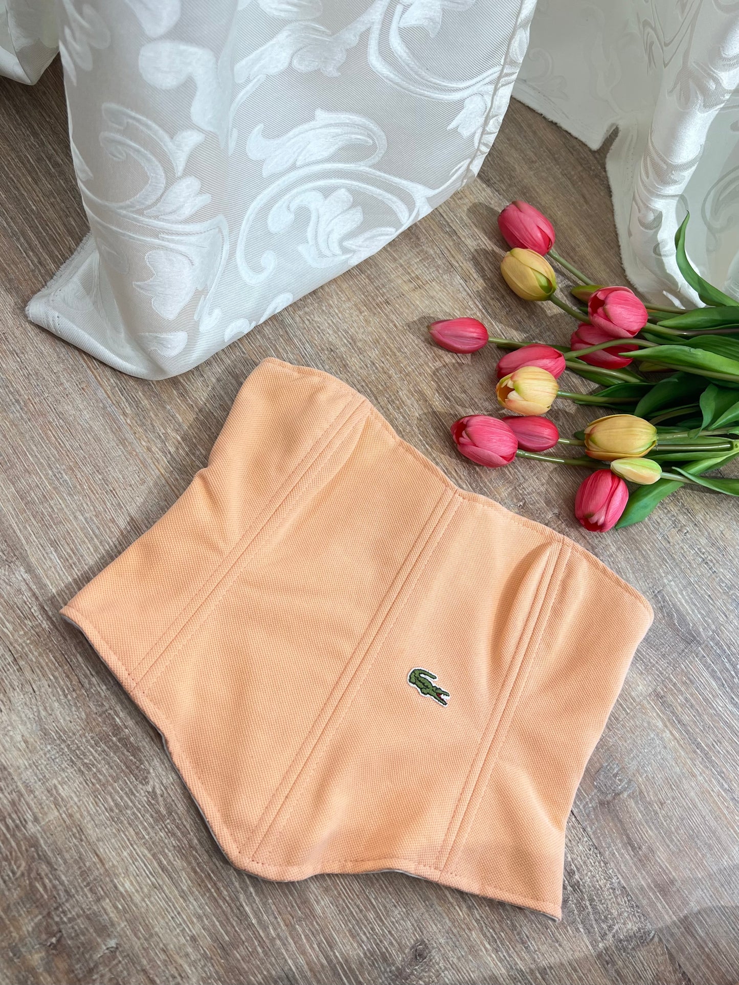 Corsetto Realizzato con una polo Lacoste Second Hand. Il Corsetto è regolabile, presenta degli occhielli sul retro dove con un laccetto è possibile regolare l‘aderenza.