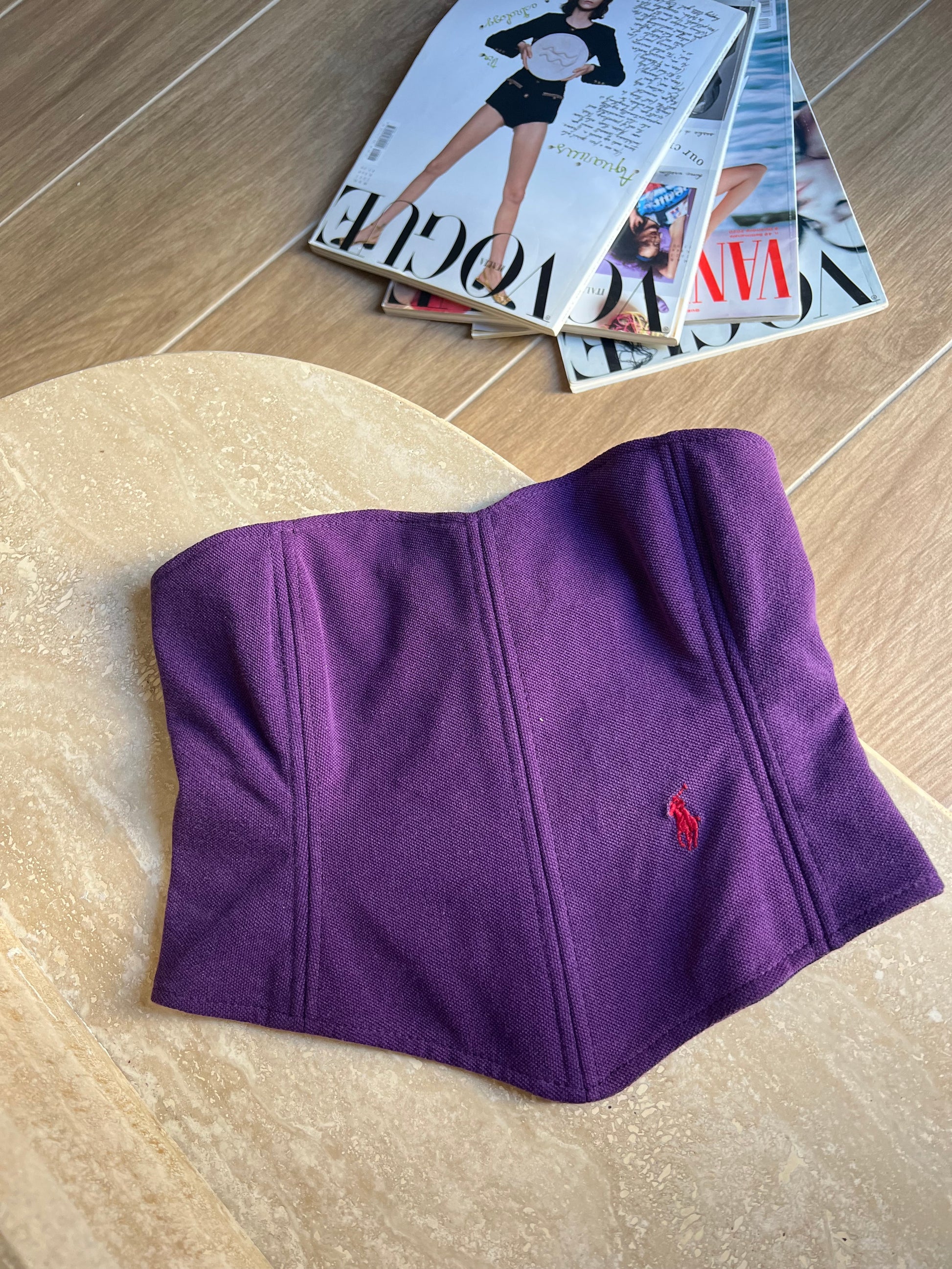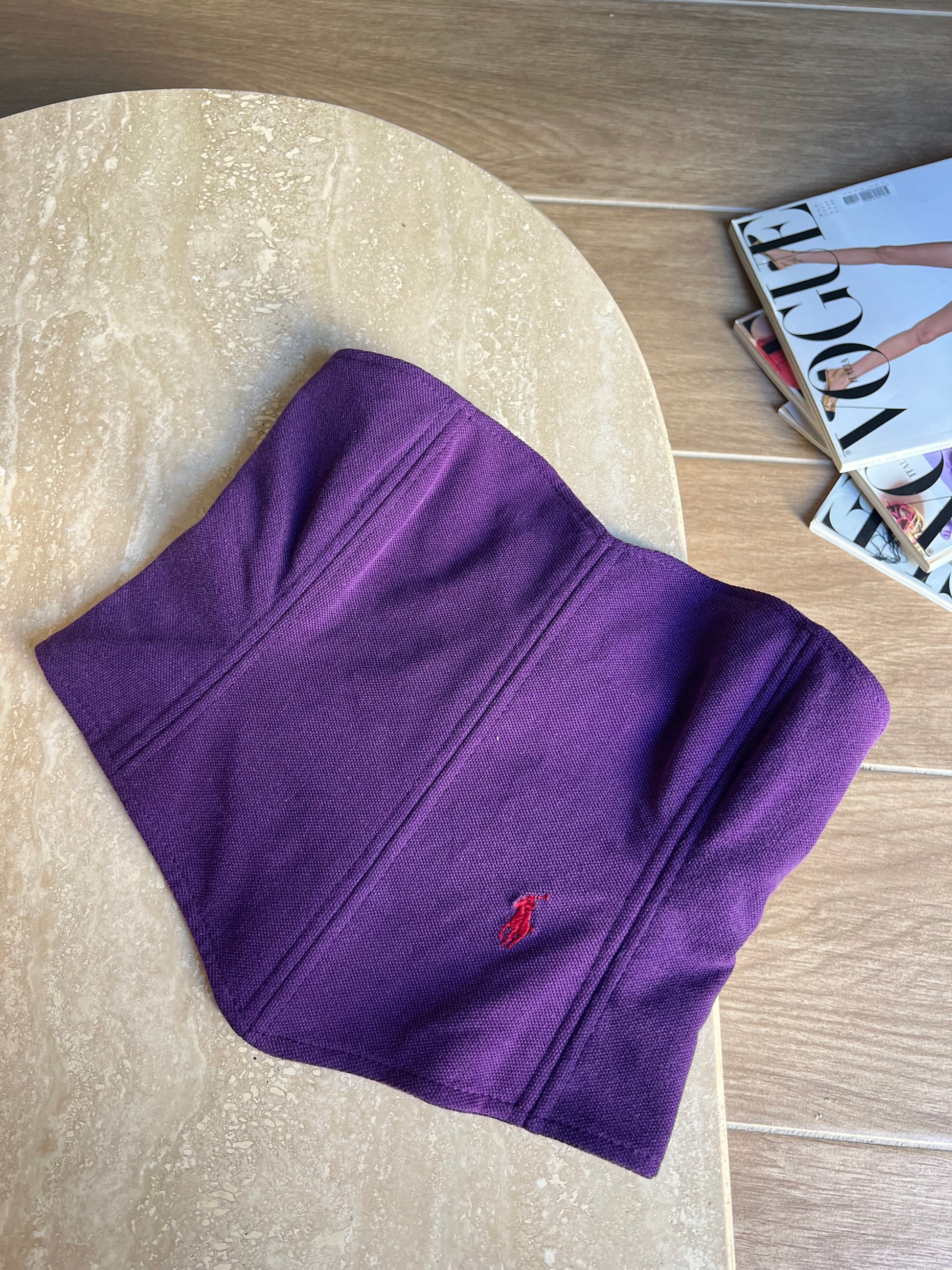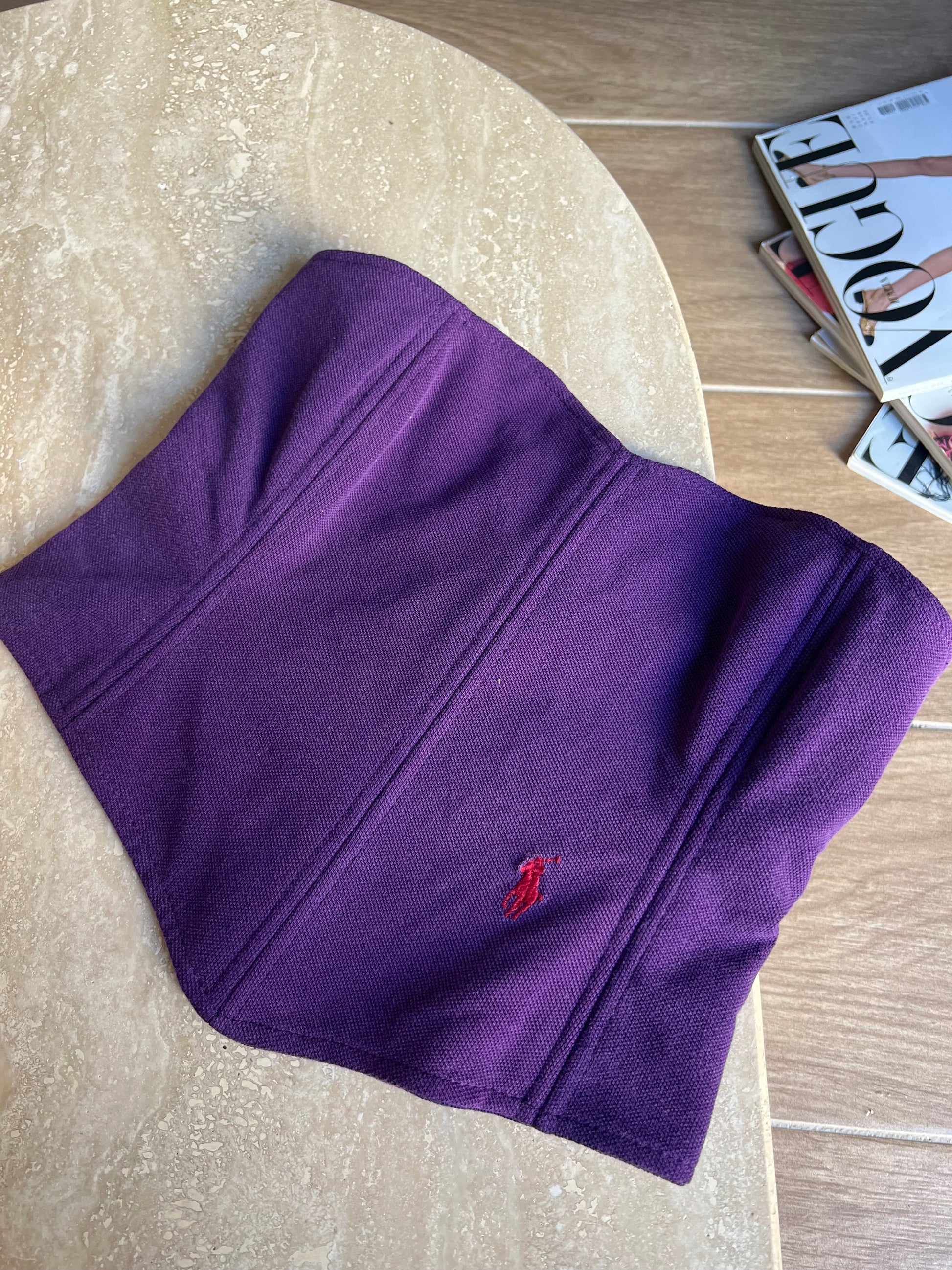 Corsetto Realizzato con una Polo Ralph Lauren Second Hand. Il Corsetto è regolabile, porta degli occhielli sul retro dove con un laccetto è possibile regolare l‘aderenza.