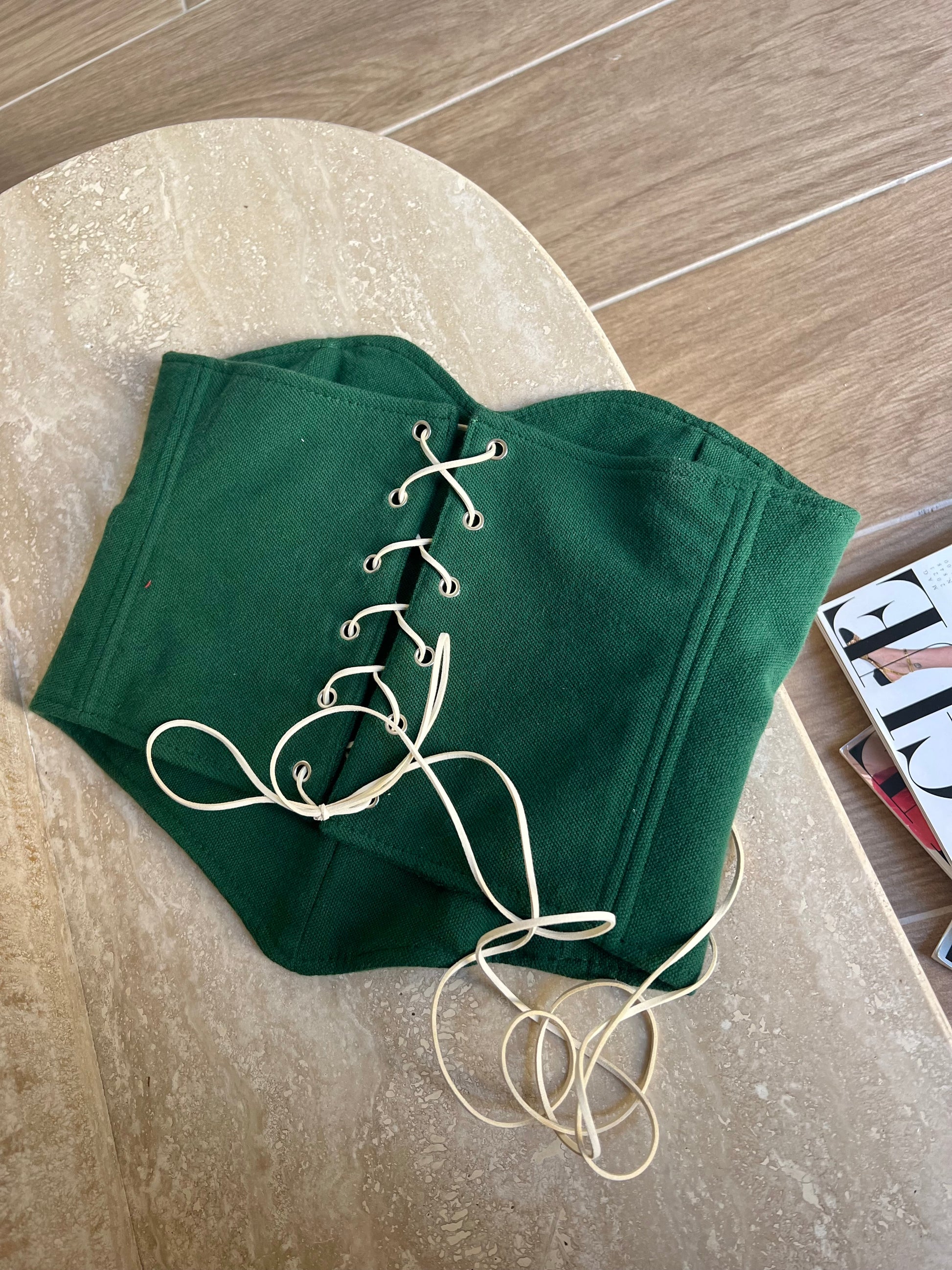 Cura e Lavaggio: Trattasi di un capo delicato consigliamo di lavare il corsetto a secco o a mano con una spazzola a setole morbide, evitare di strizzare il capo e farlo asciugare in modo orizzontale su una superficie.