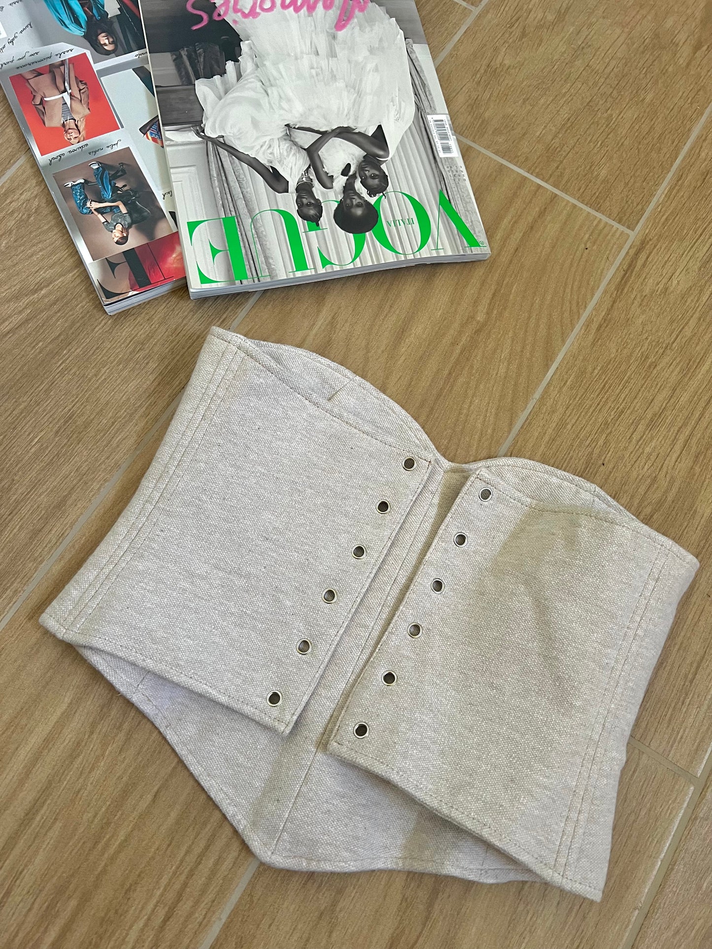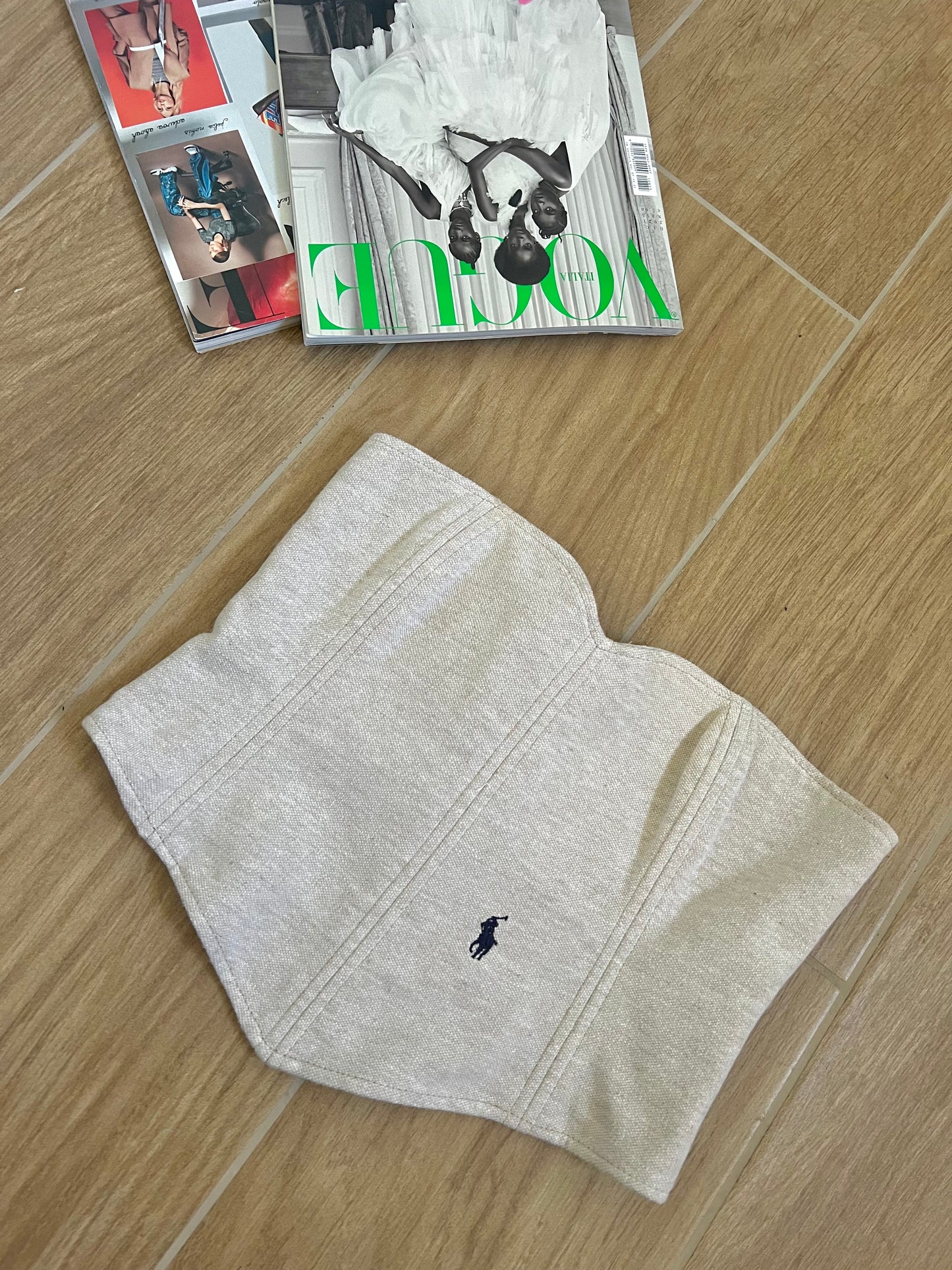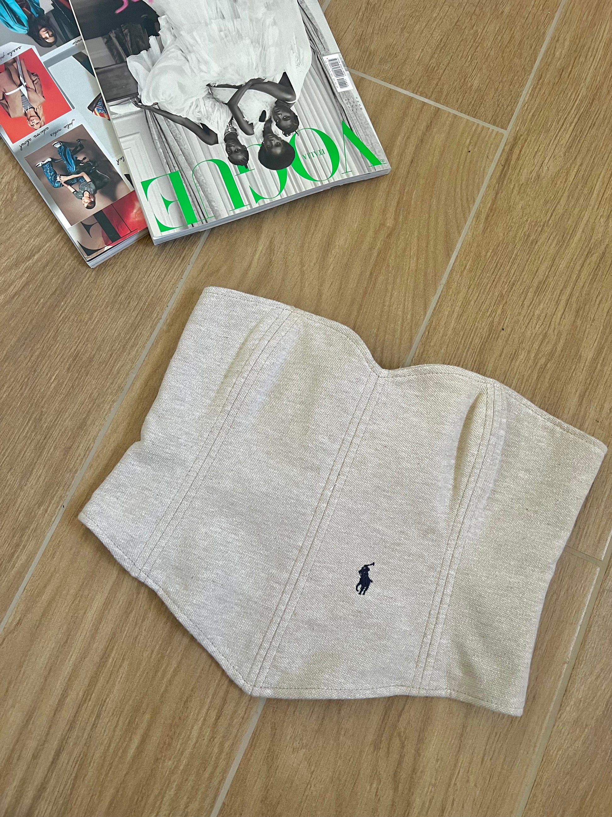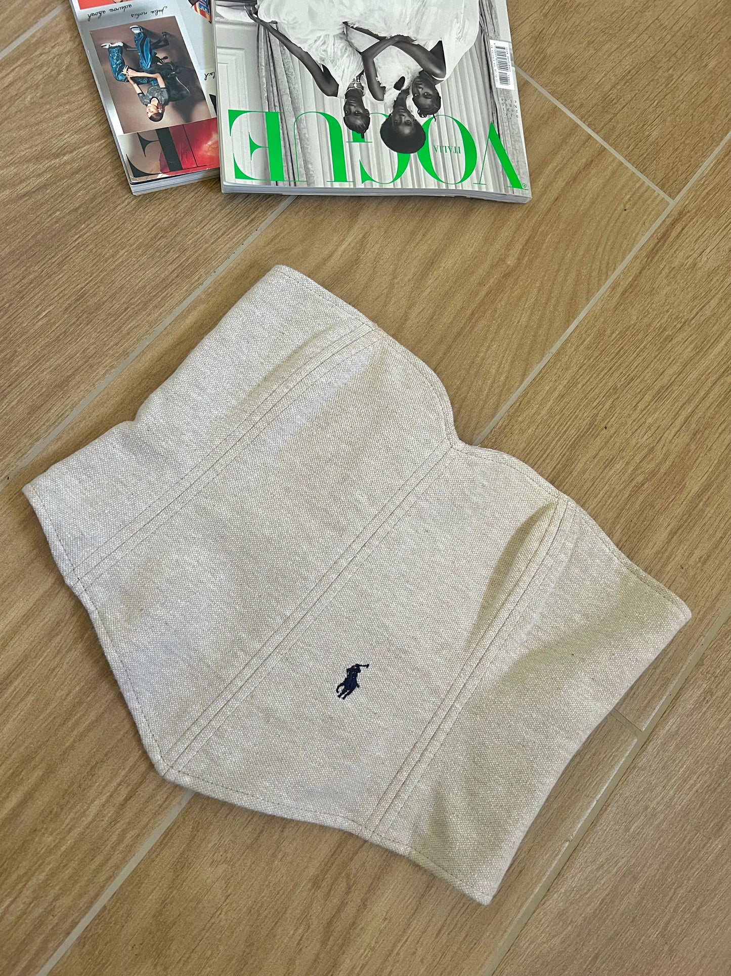 Corsetto Realizzato con una polo Ralph lauren Second Hand. Il Corsetto è regolabile, presenta degli occhielli sul retro dove con un laccetto è possibile regolare l‘aderenza.