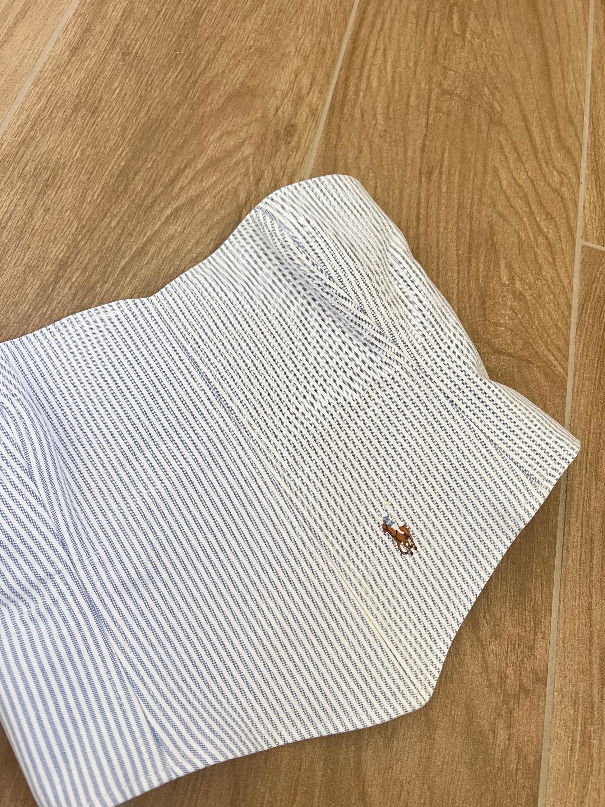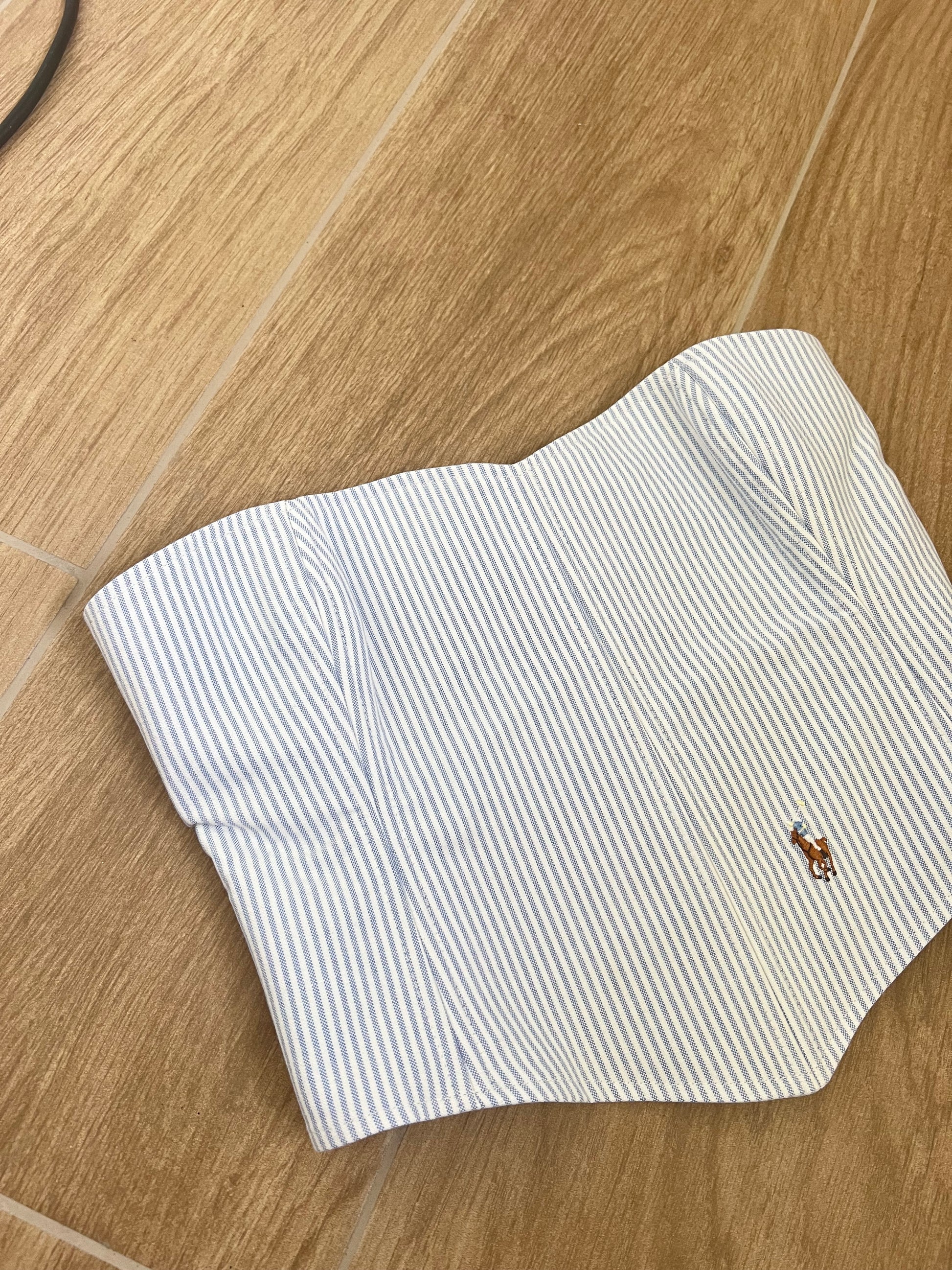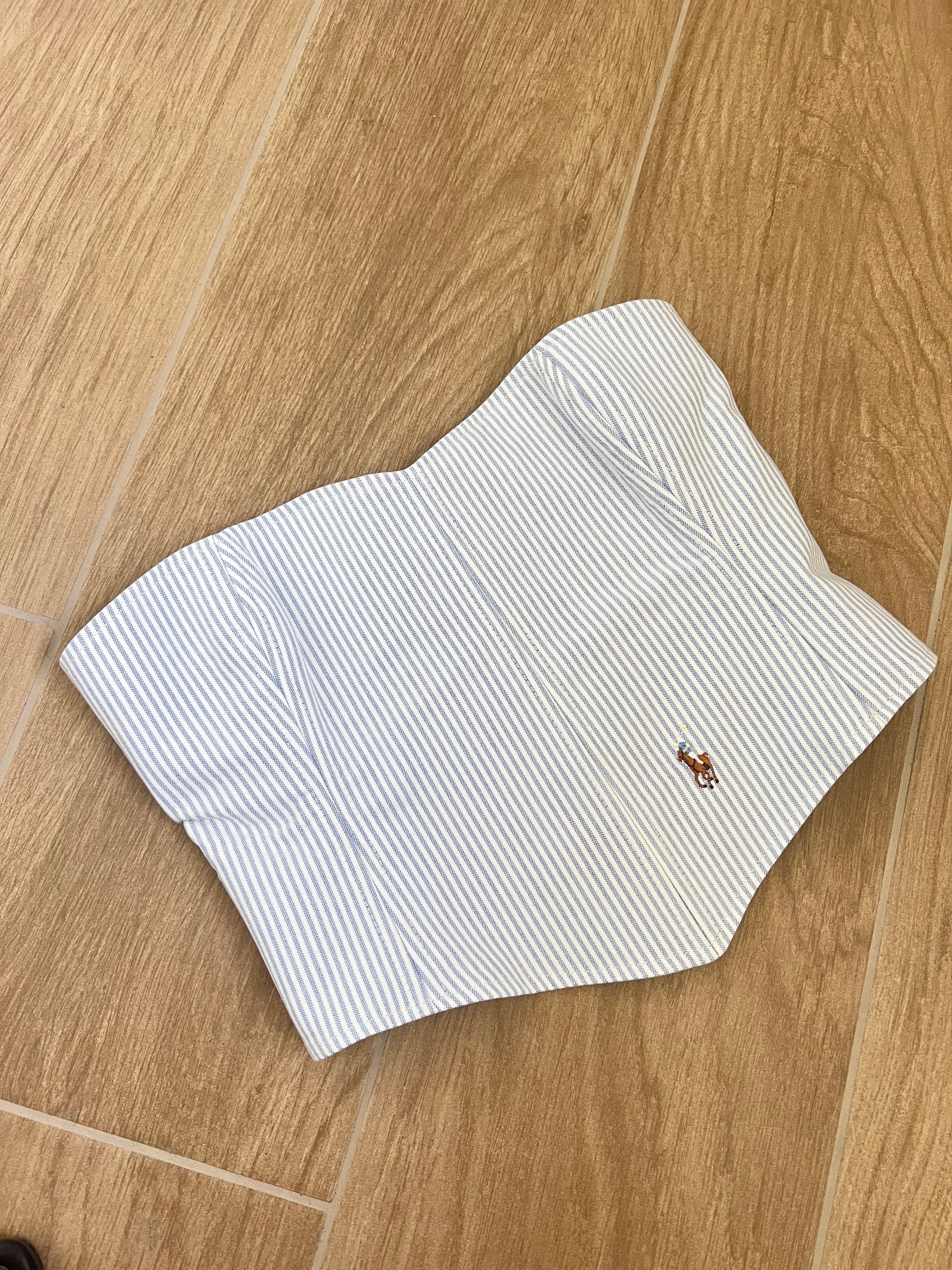 Corsetto a righe bianche e azzurre Realizzato con una Camicia Ralph Lauren Second Hand. Il Corsetto è regolabile, porta degli occhielli sul retro dove con un laccetto è possibile regolare l‘aderenza.