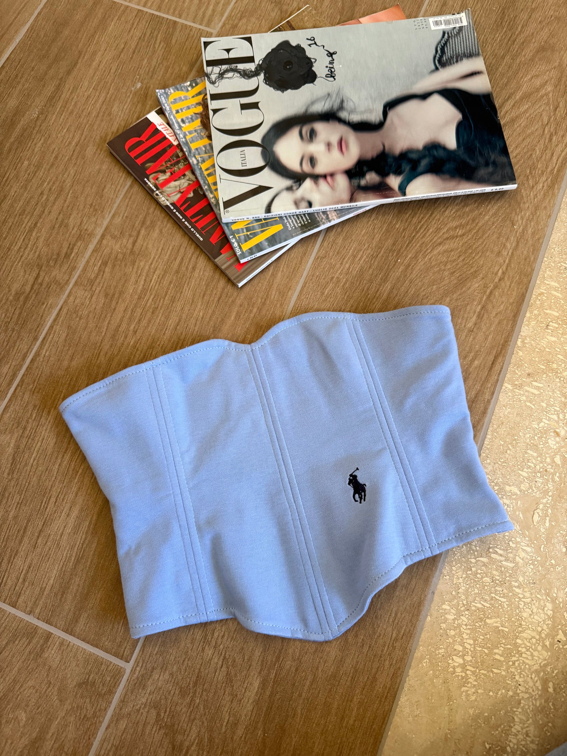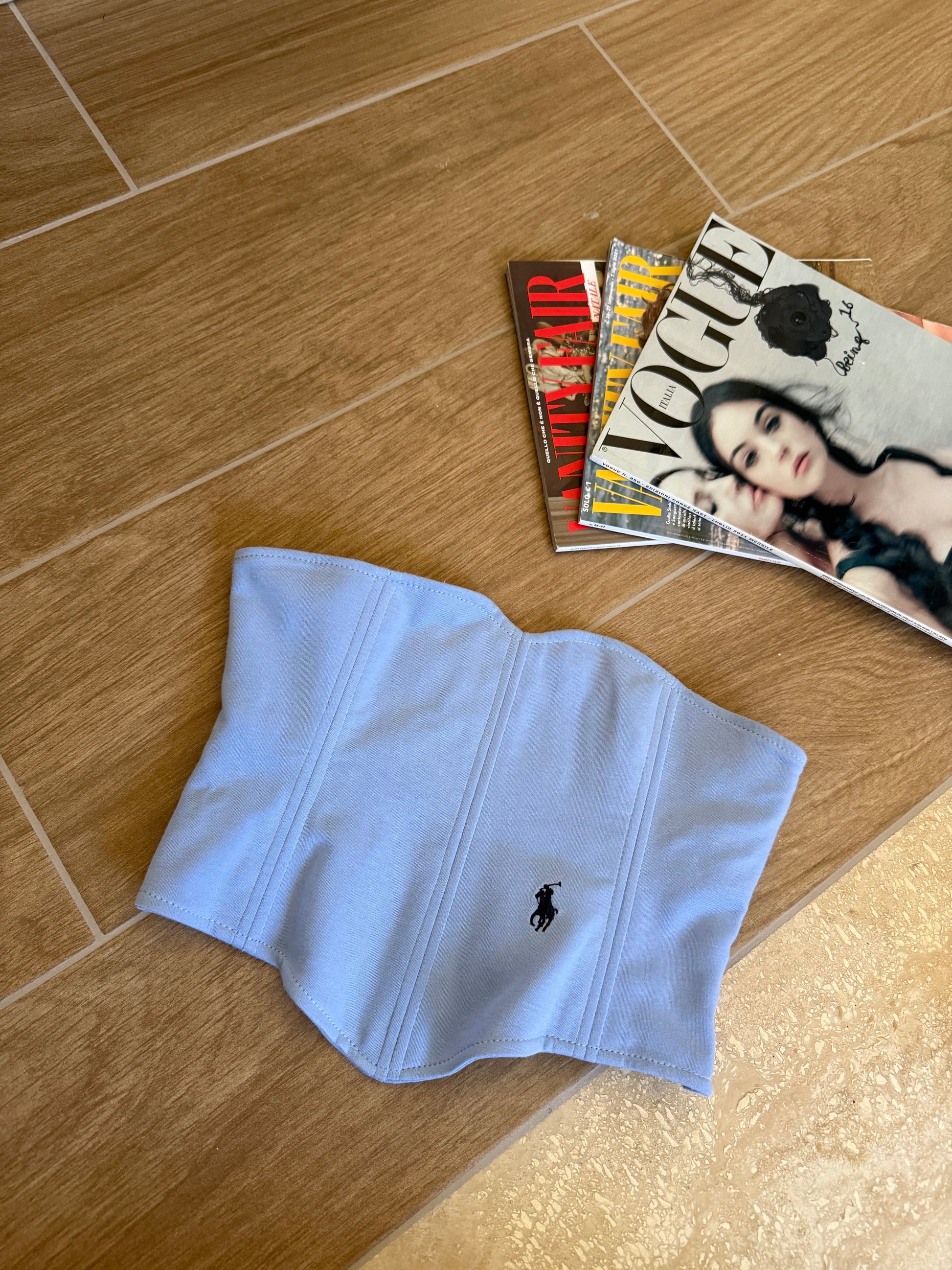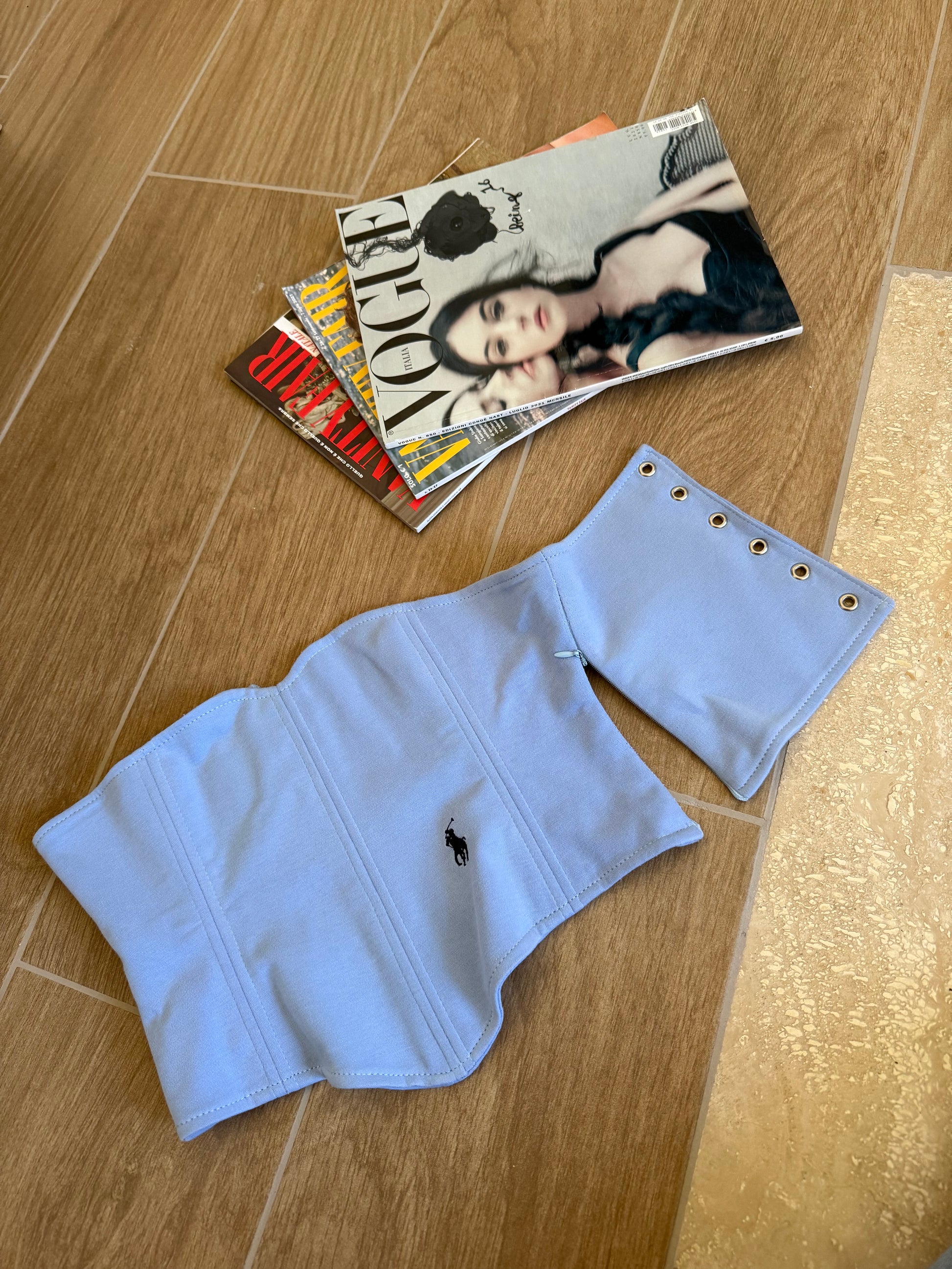 Corsetto Realizzato con una polo Ralph lauren Second Hand. Il Corsetto è regolabile, presenta degli occhielli sul retro dove con un laccetto (incluso) è possibile regolare l‘aderenza e la zip laterale vi facilita la Vestibilità