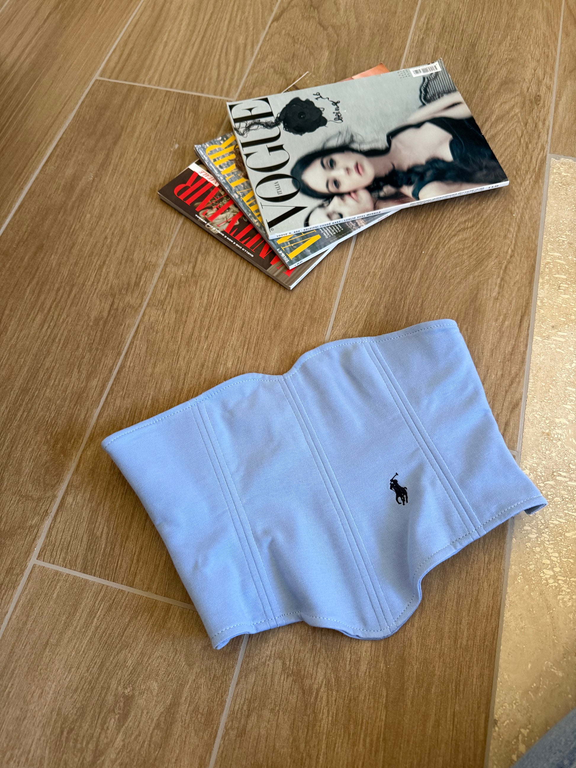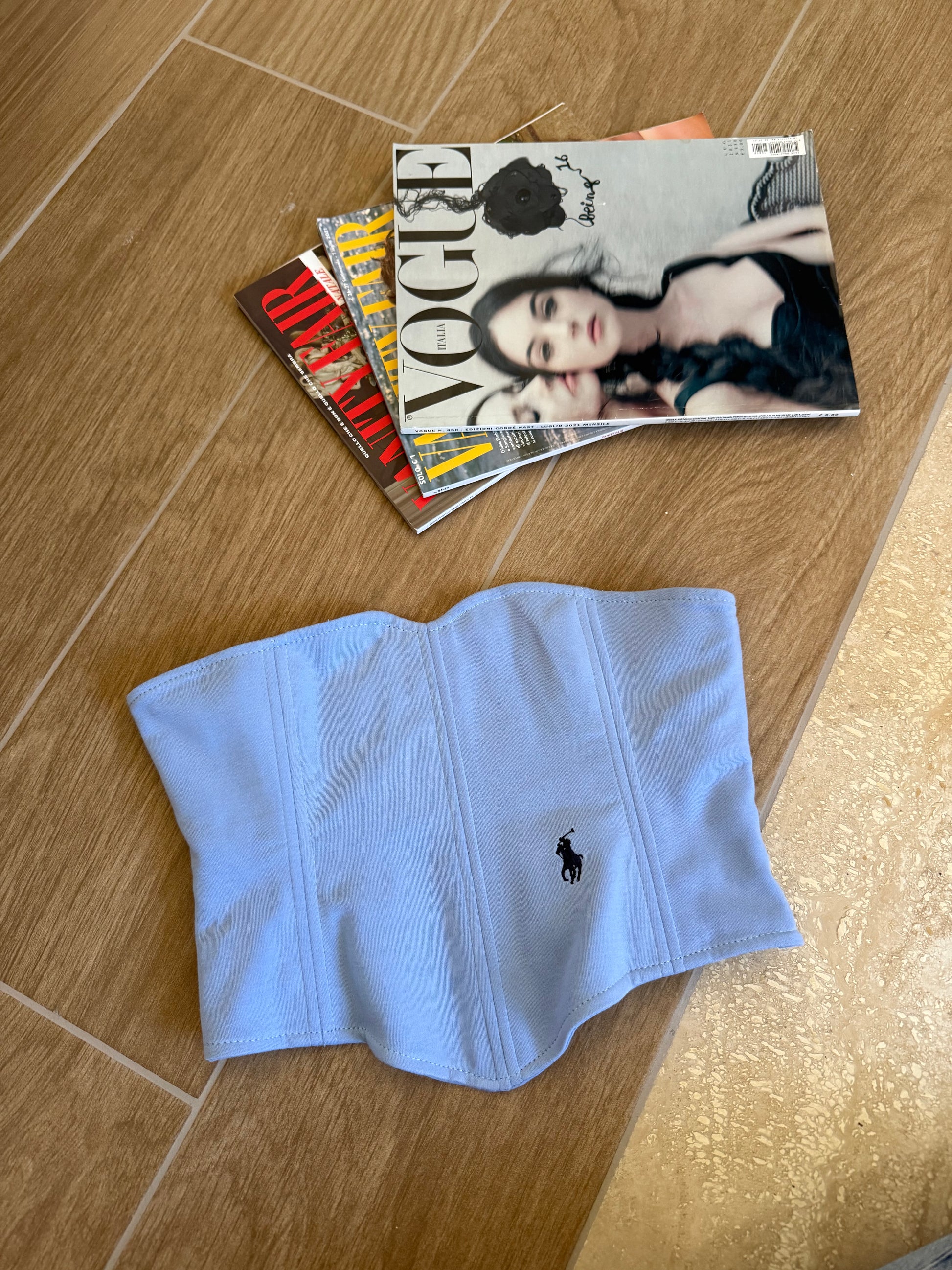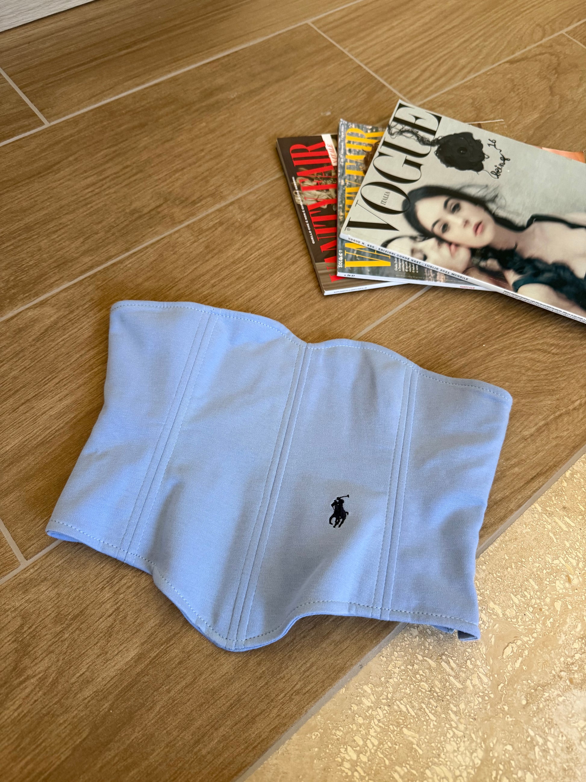 Corsetto Realizzato con una polo Ralph lauren Second Hand. Il Corsetto è regolabile, presenta degli occhielli sul retro dove con un laccetto (incluso) è possibile regolare l‘aderenza e la zip laterale vi facilita la Vestibilità