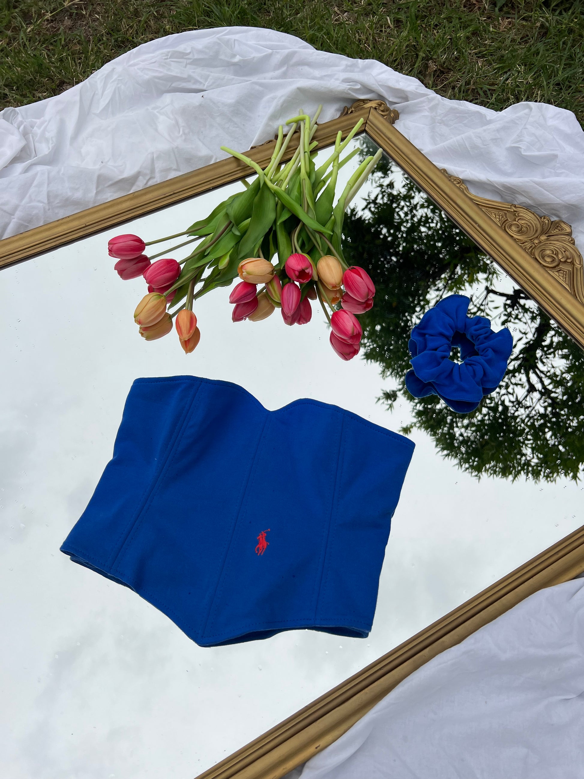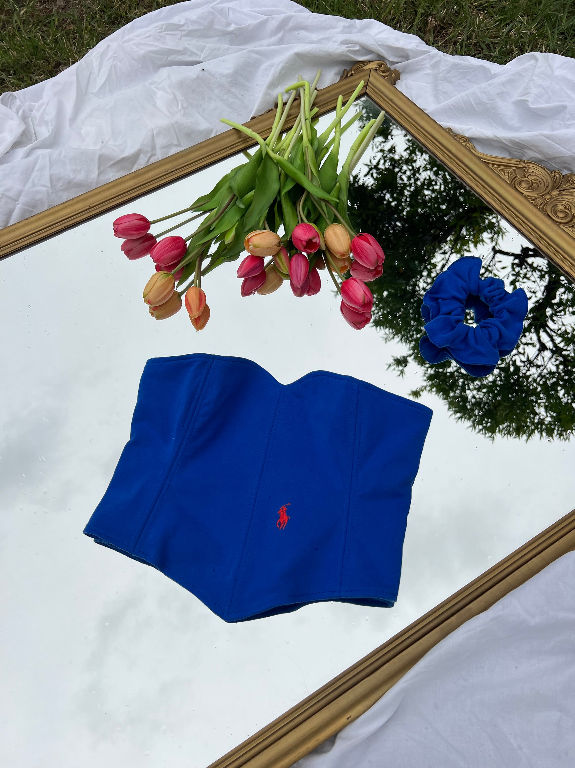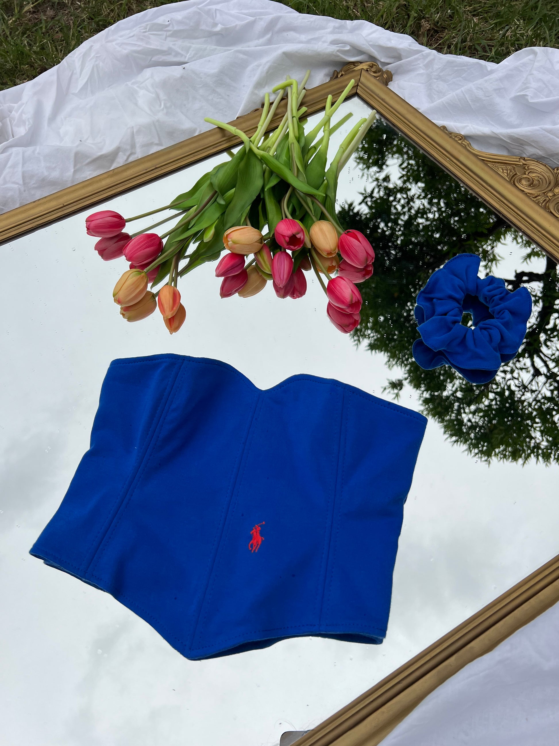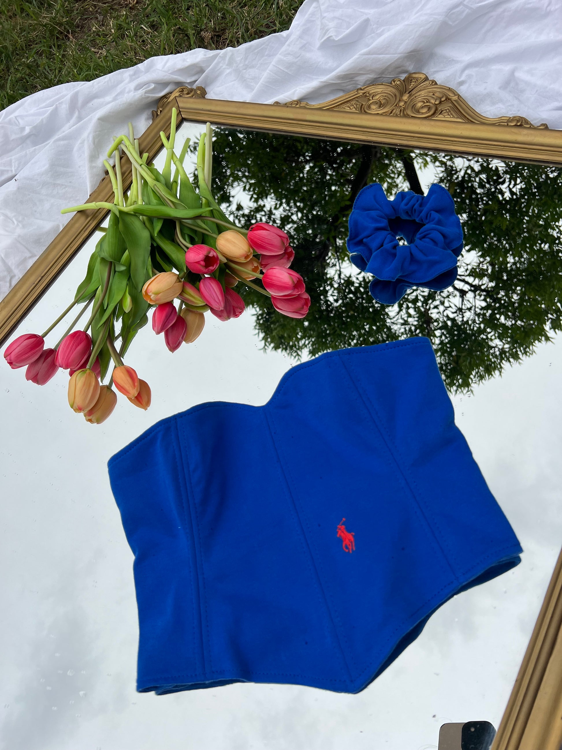 Corsetto Realizzato con una Polo Ralph Lauren Second Hand. Il Corsetto è regolabile, porta degli occhielli sul retro dove con un laccetto è possibile regolare l‘aderenza.