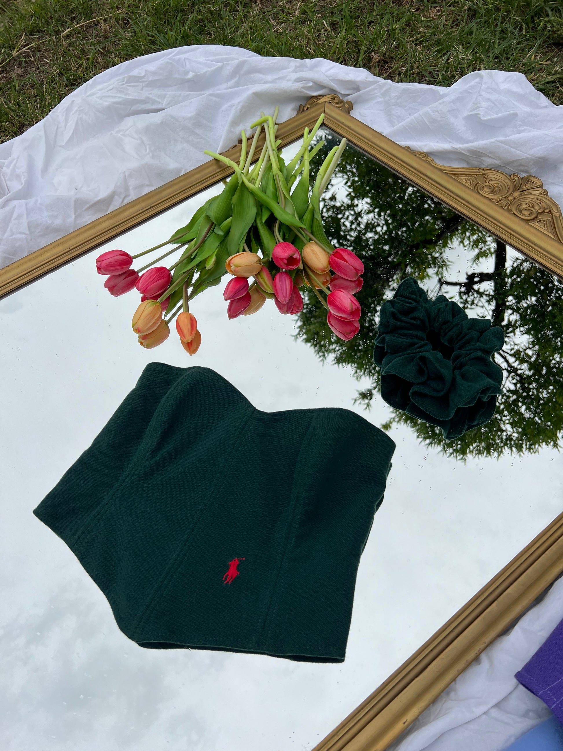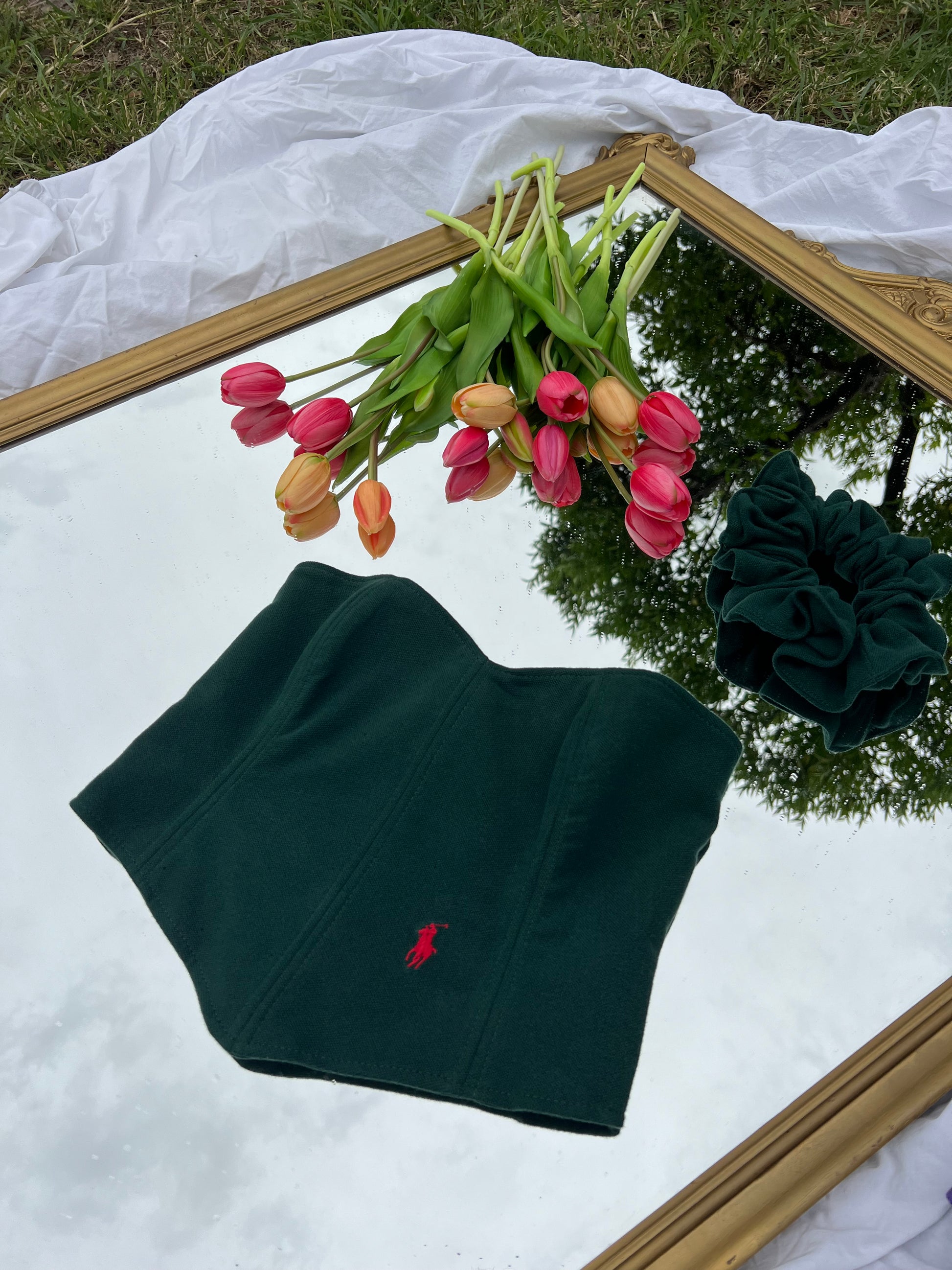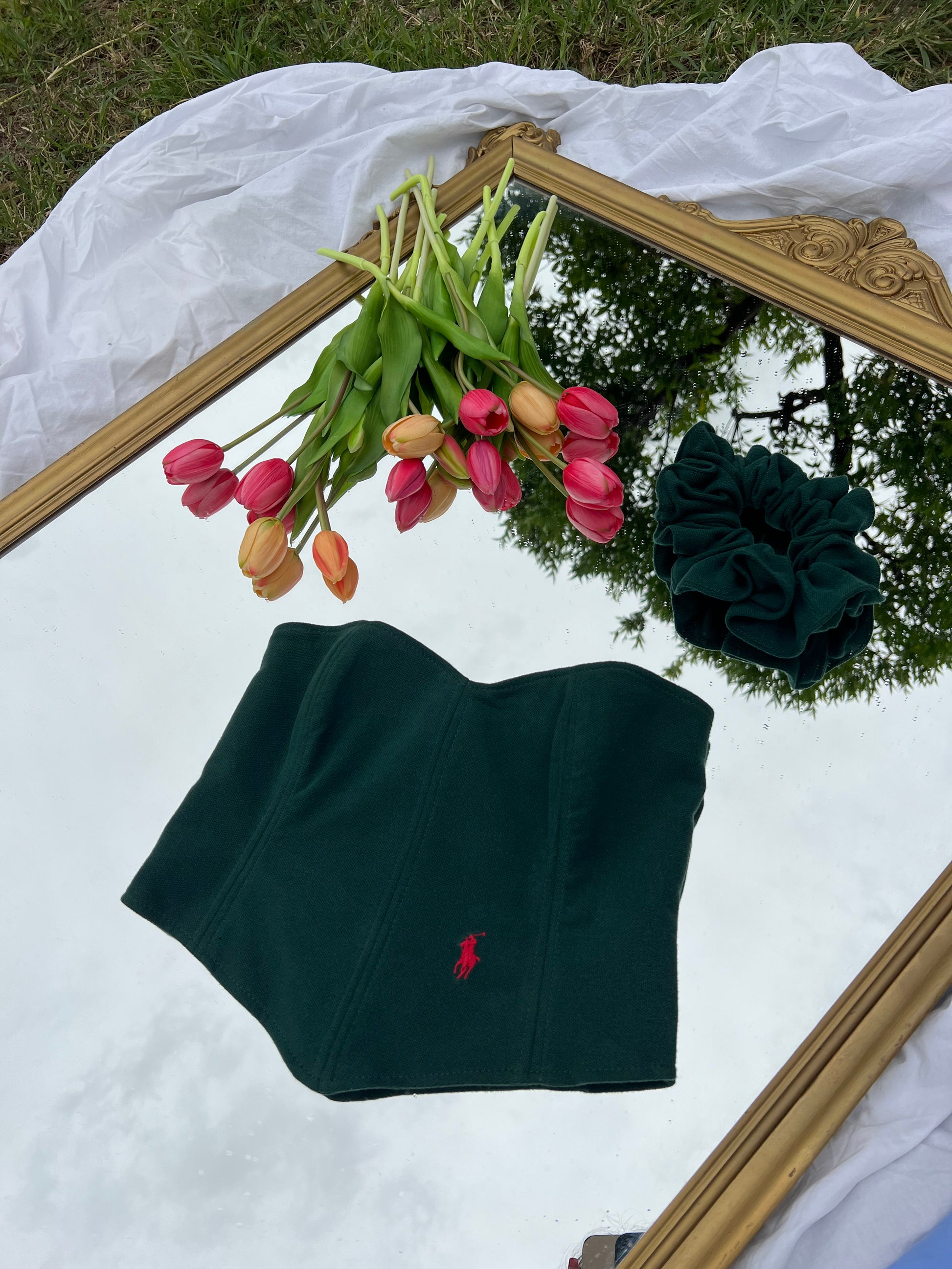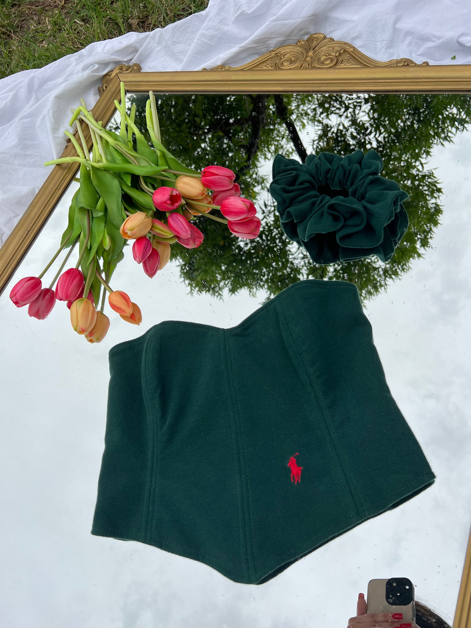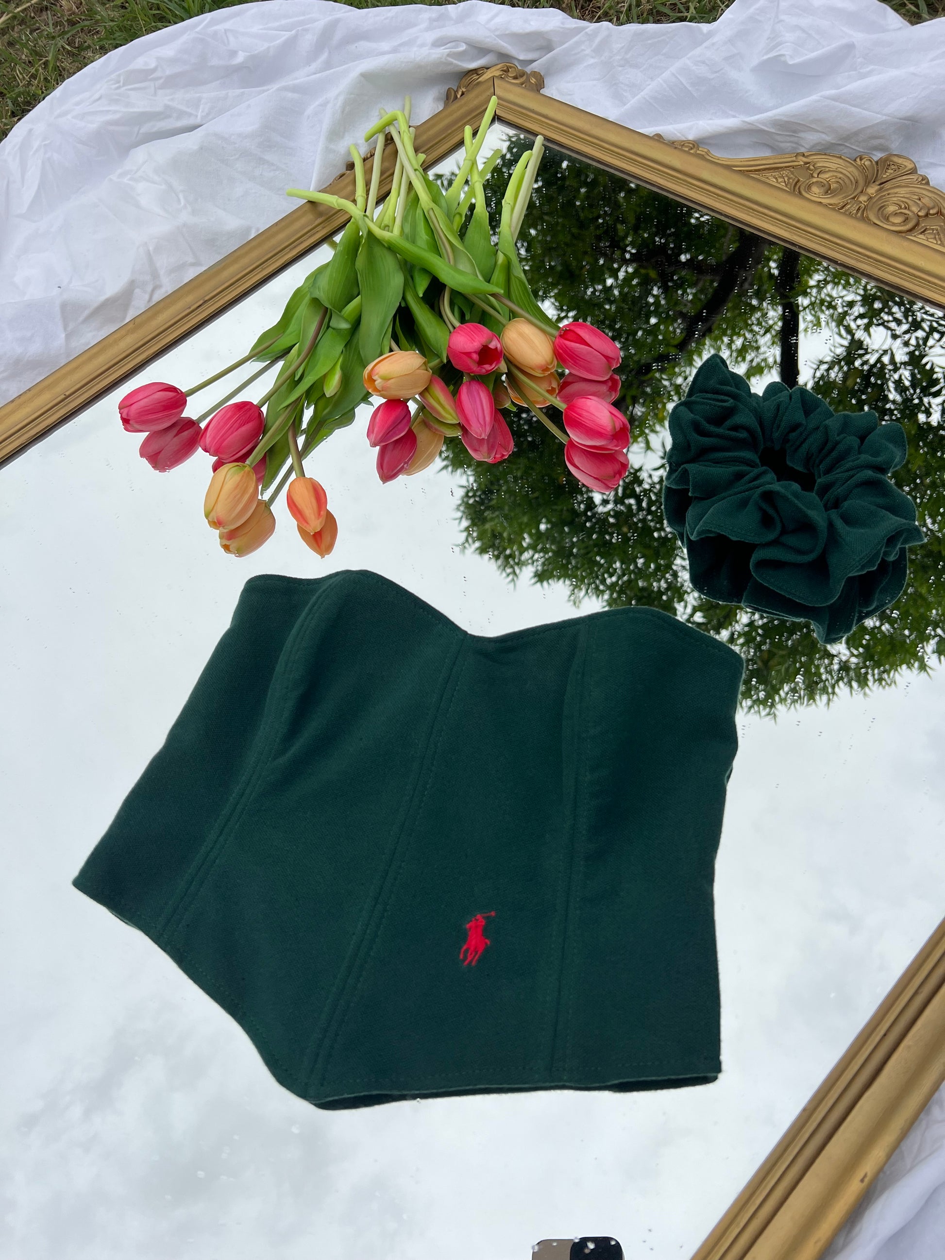 Corsetto Realizzato con una Polo Ralph Lauren Second Hand. Il Corsetto è regolabile, porta degli occhielli sul retro dove con un laccetto è possibile regolare l‘aderenza.