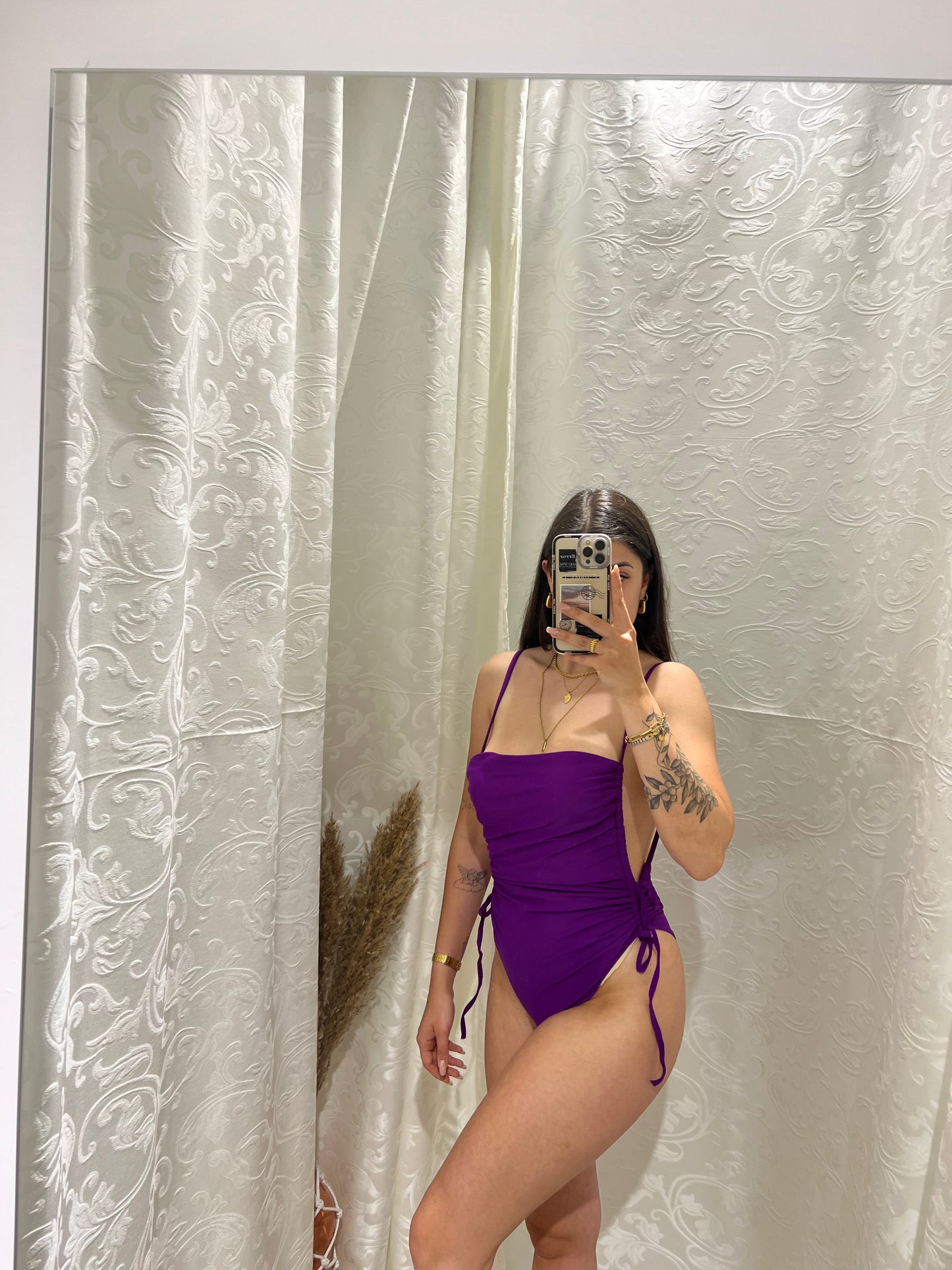 Con coppe estraibili e laccetti ai lati per poter regolare la scollatura davanti e dietro.