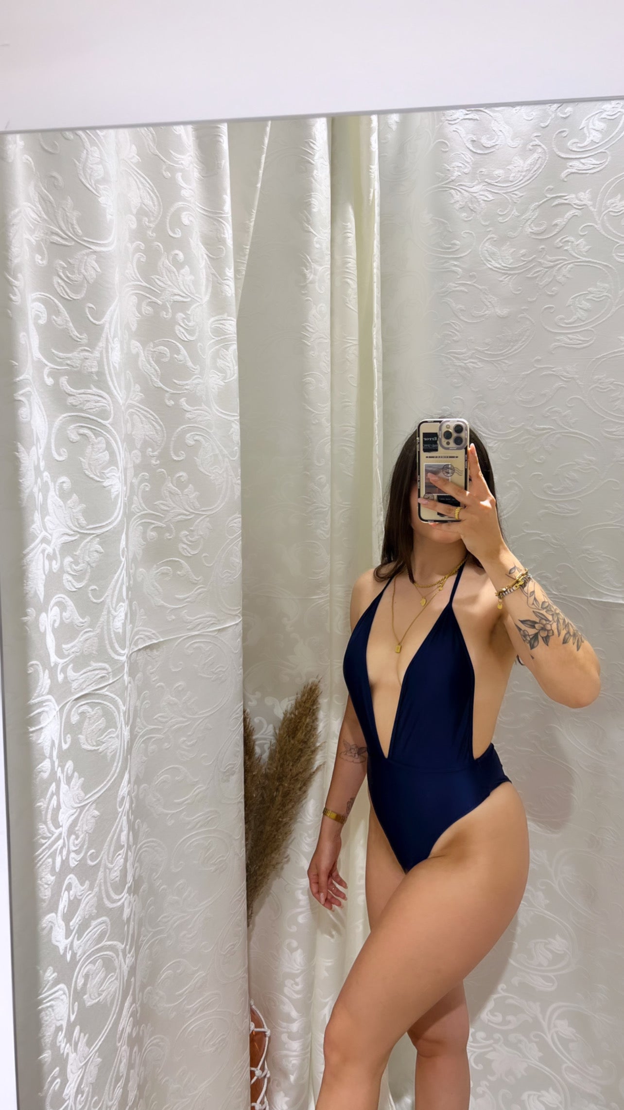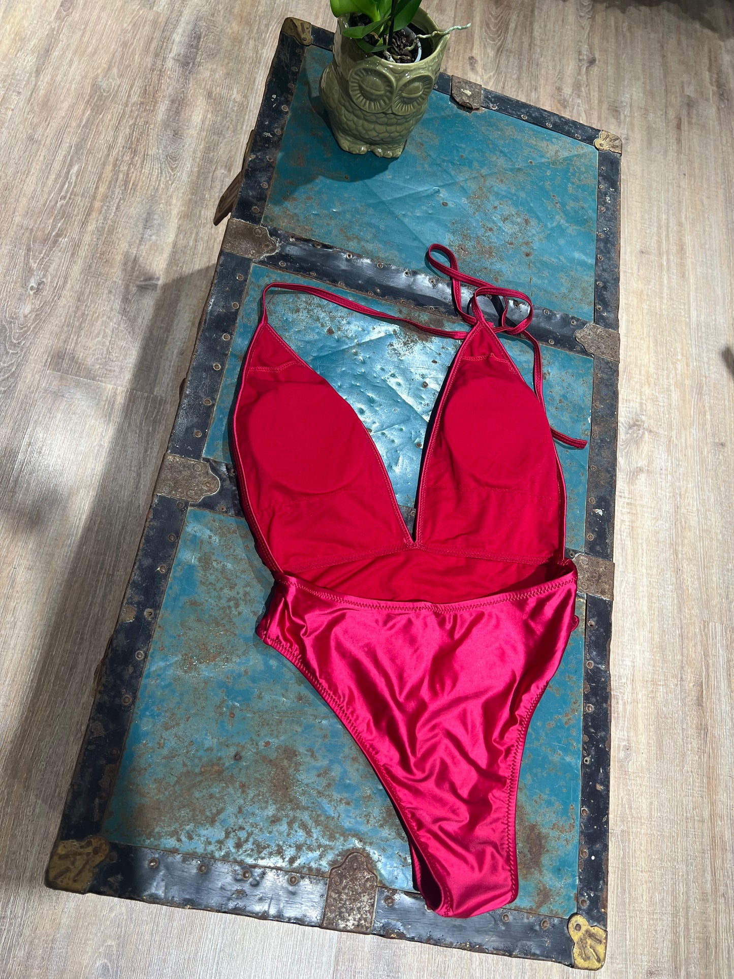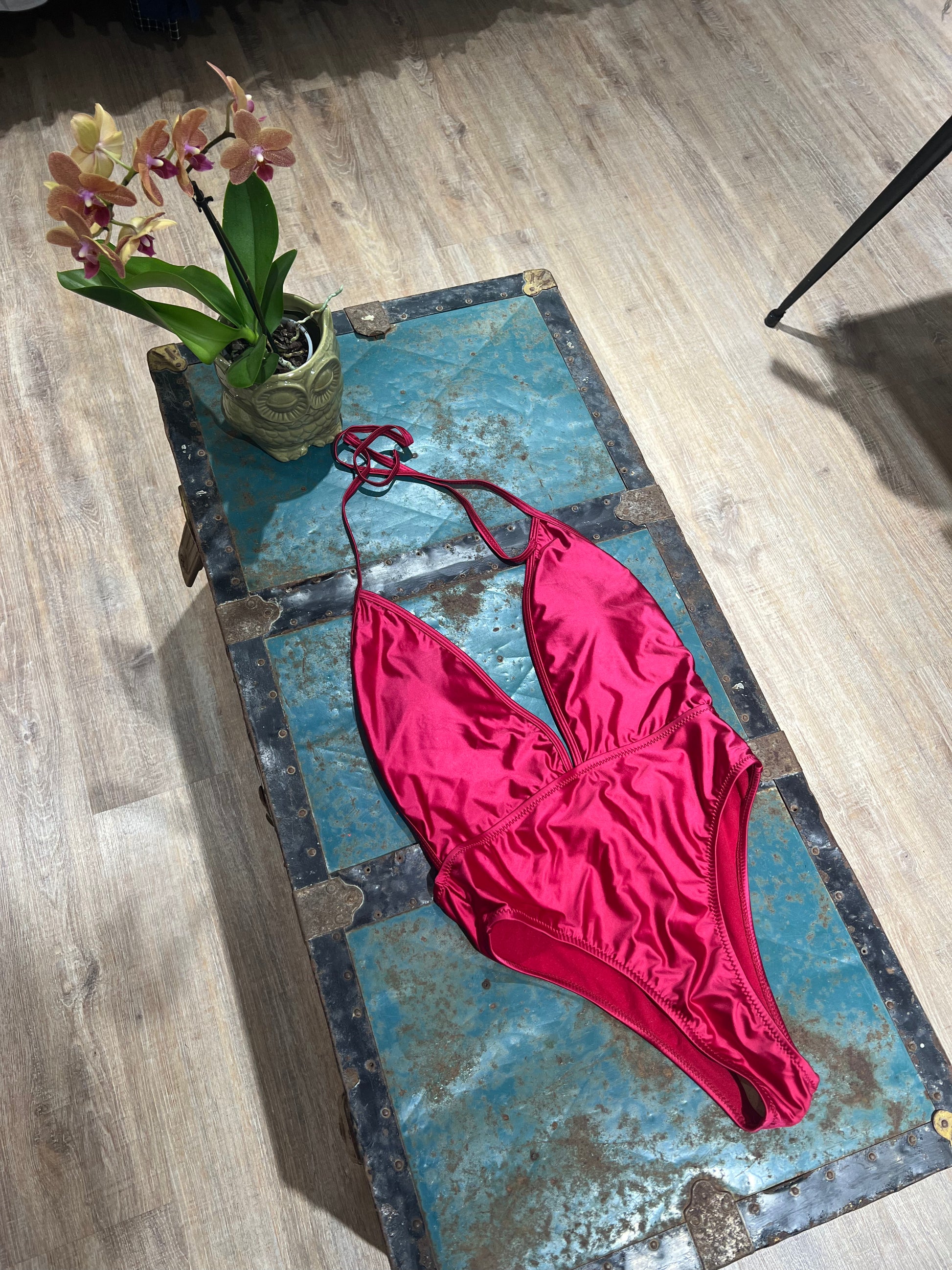 Costume intero satinato con schiena scoperta