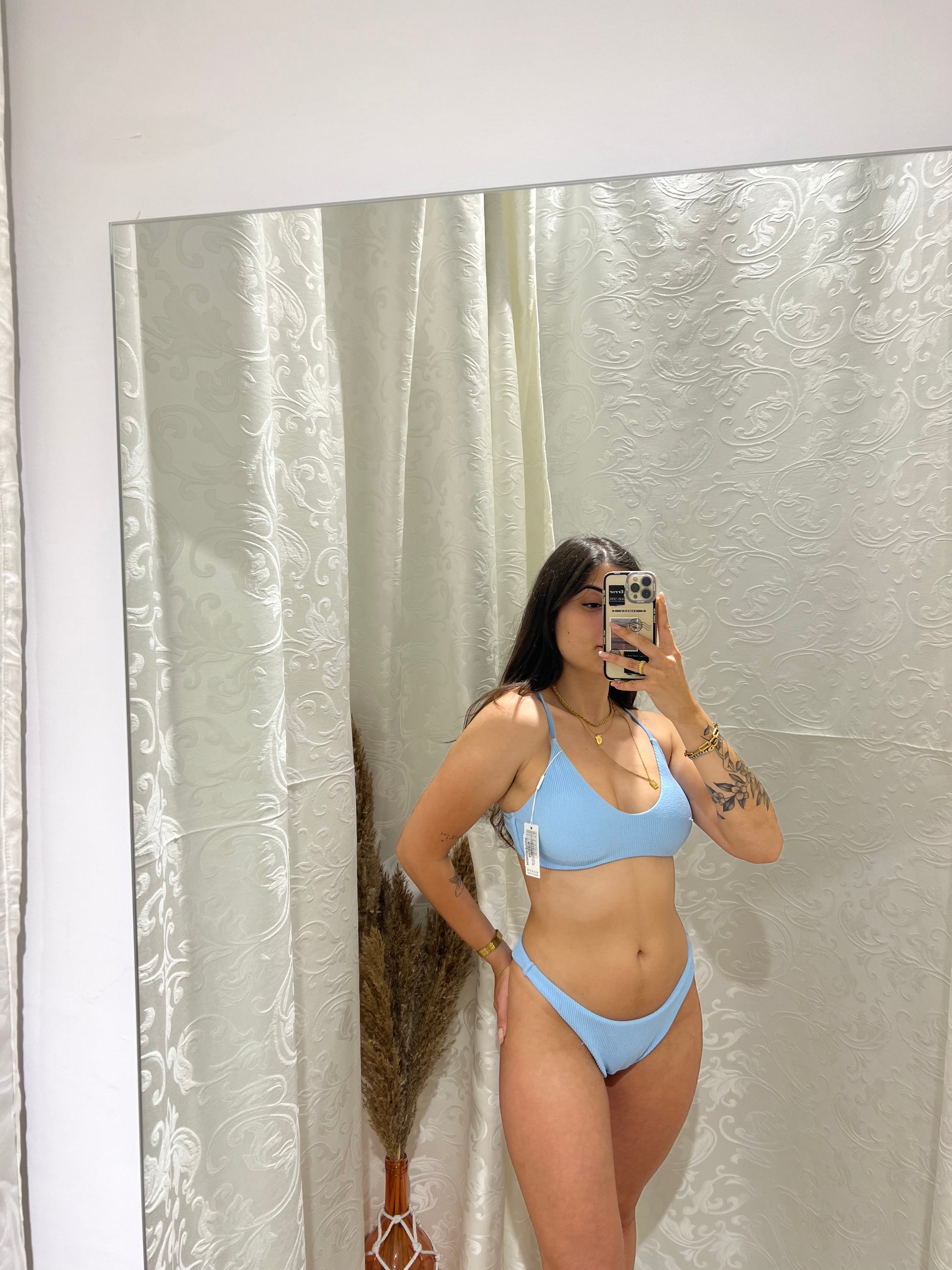 la ragazza in foto veste veste una 42/M ma in foto indossa il costume nero 46 e azzurro 48.