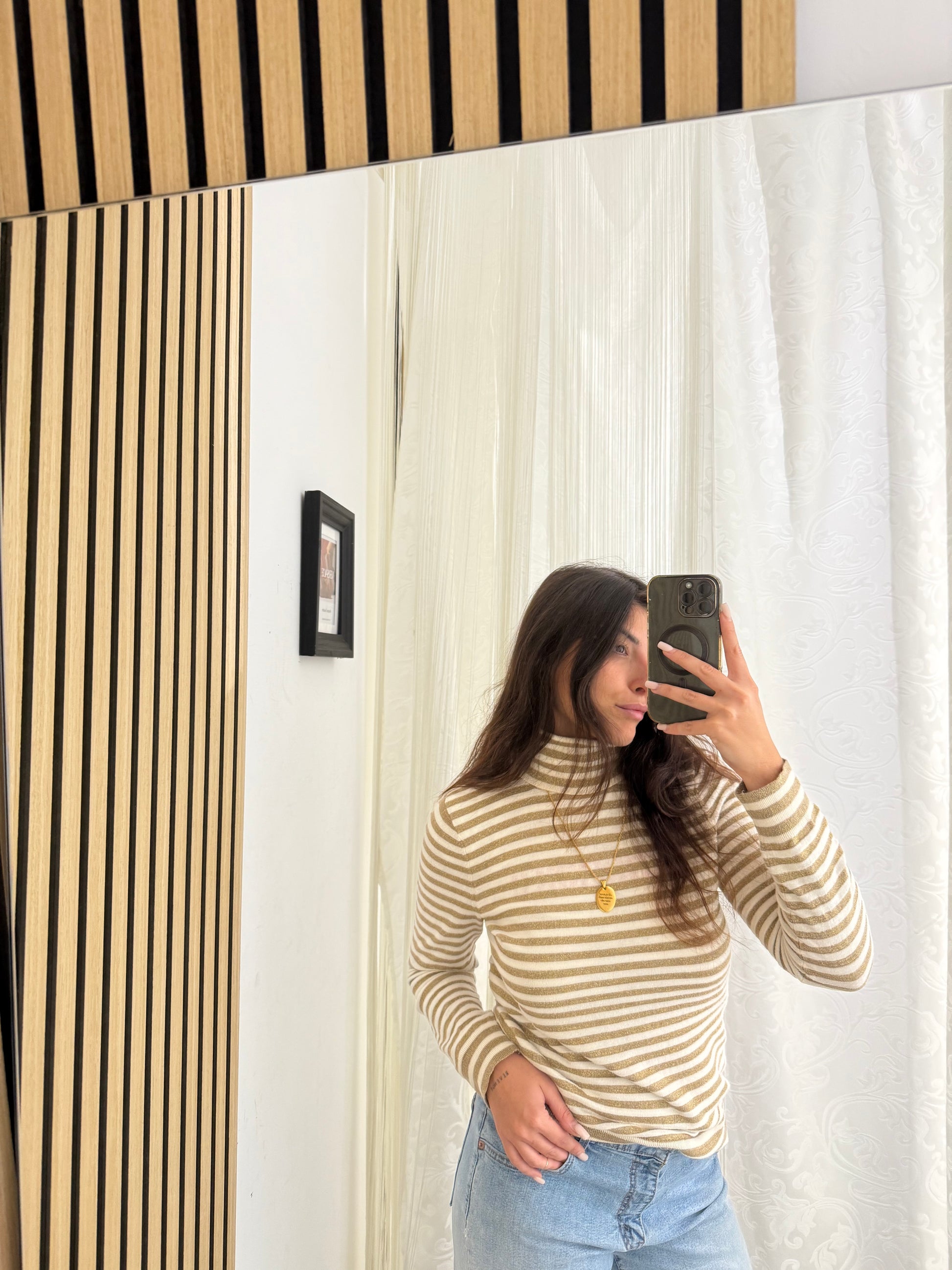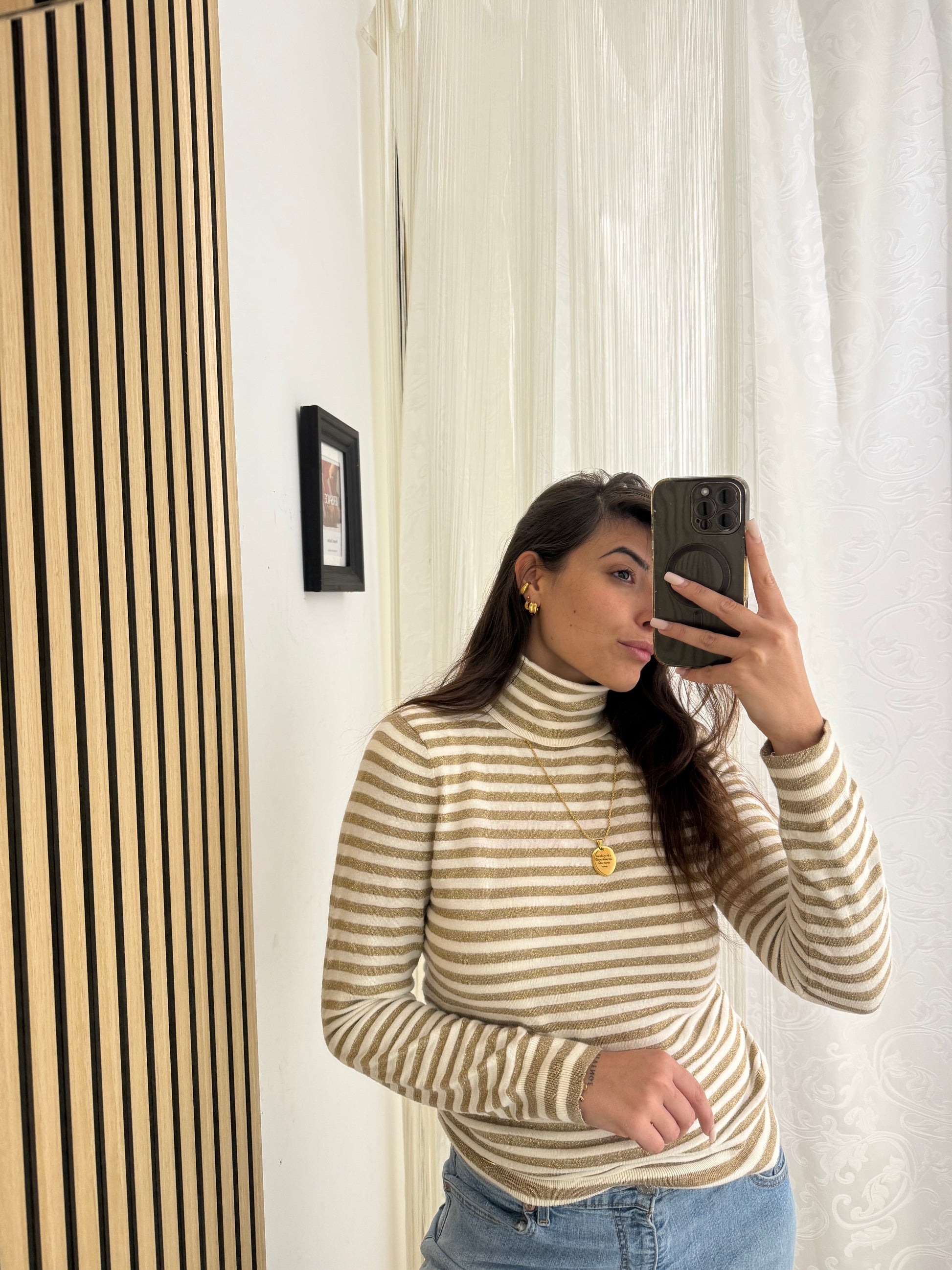 Maglia collo alto a righe lourex, Ralph Lauren Vintage. Tessuto 49% cotone, 37% Modal e 10% poliestere