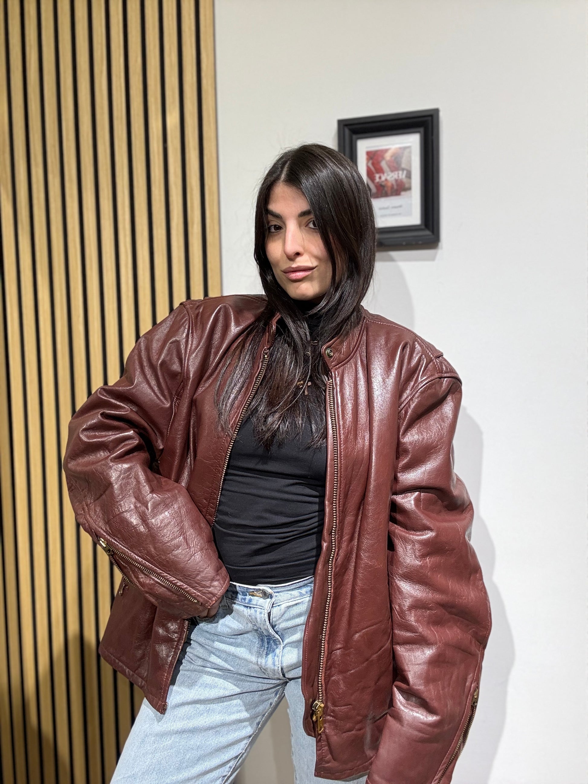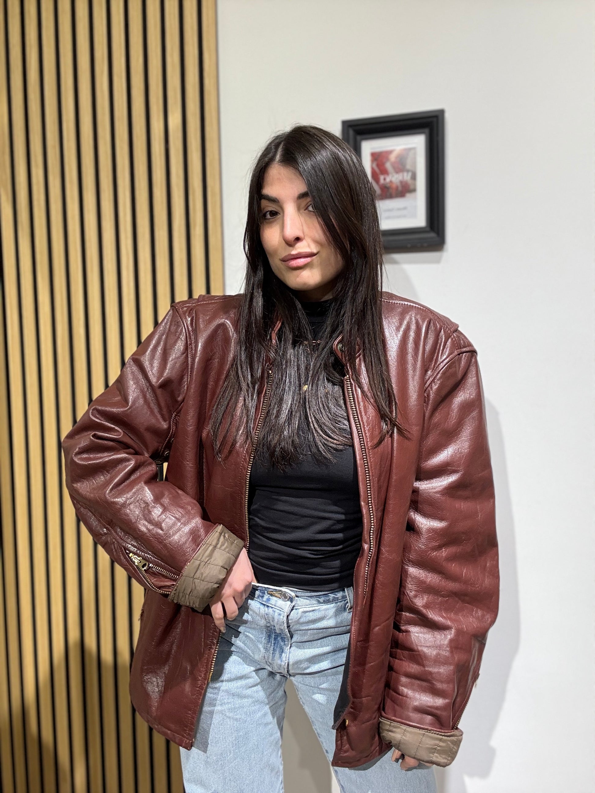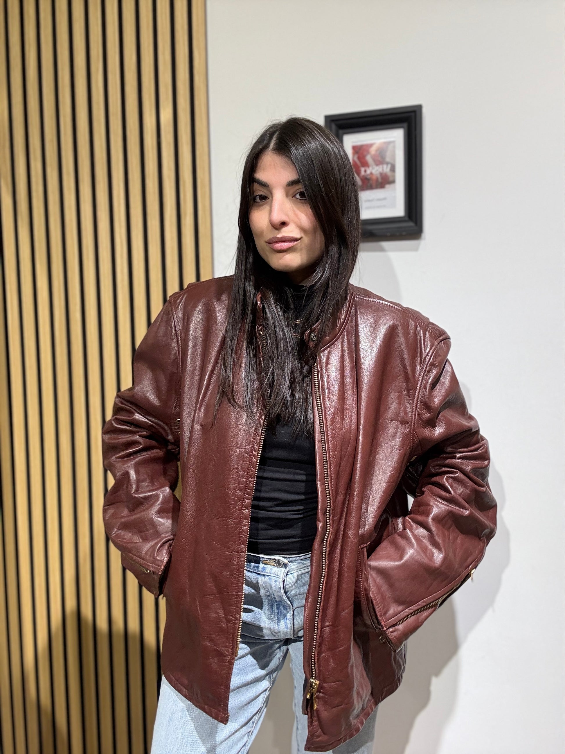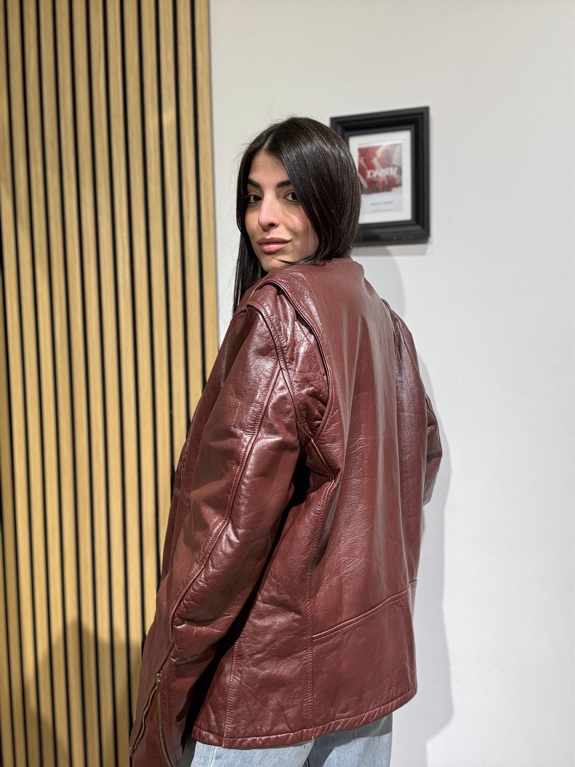 Giacca unisex in vera pelle,Oversize, Leggermente trapuntata all’interno.