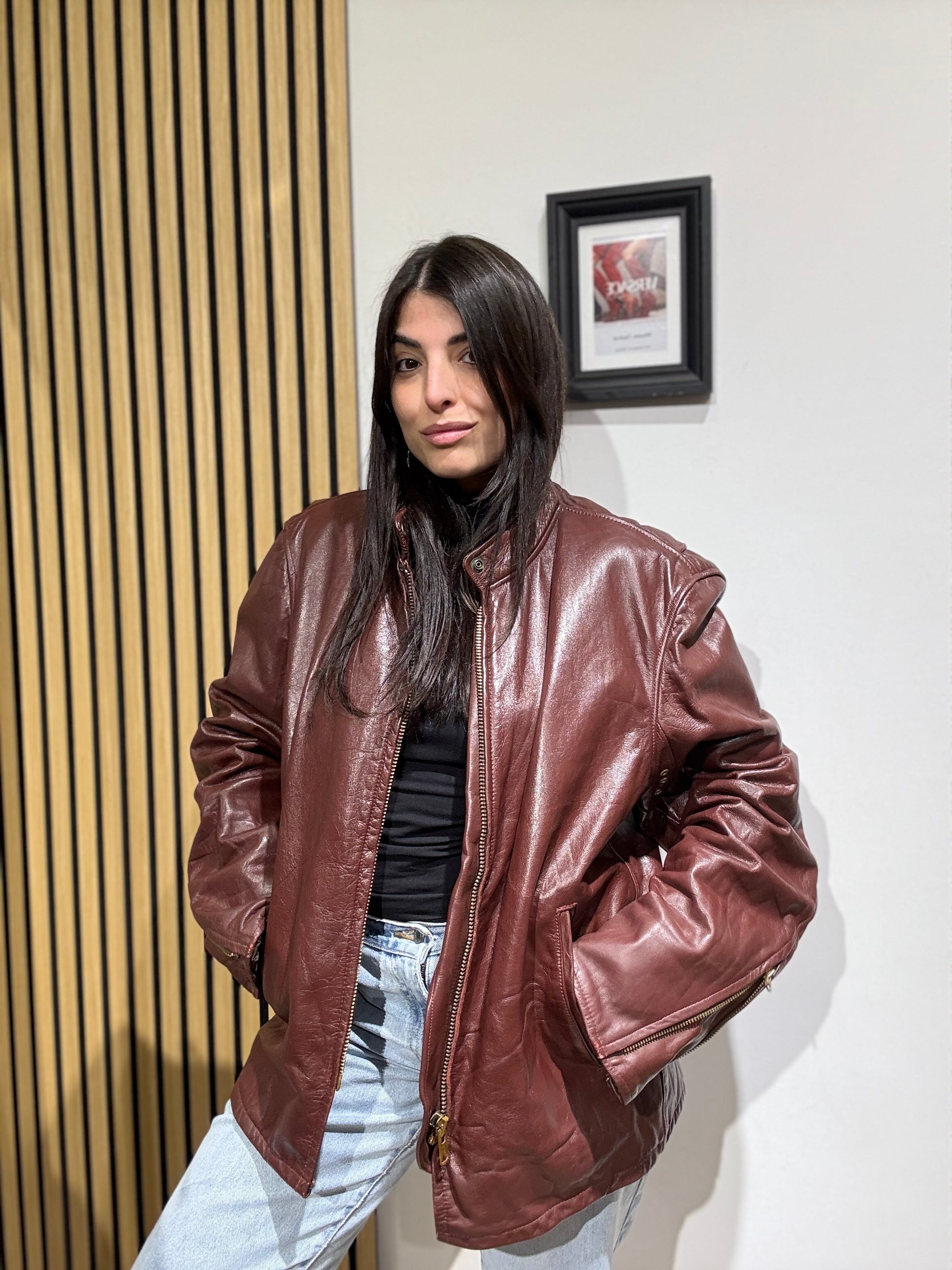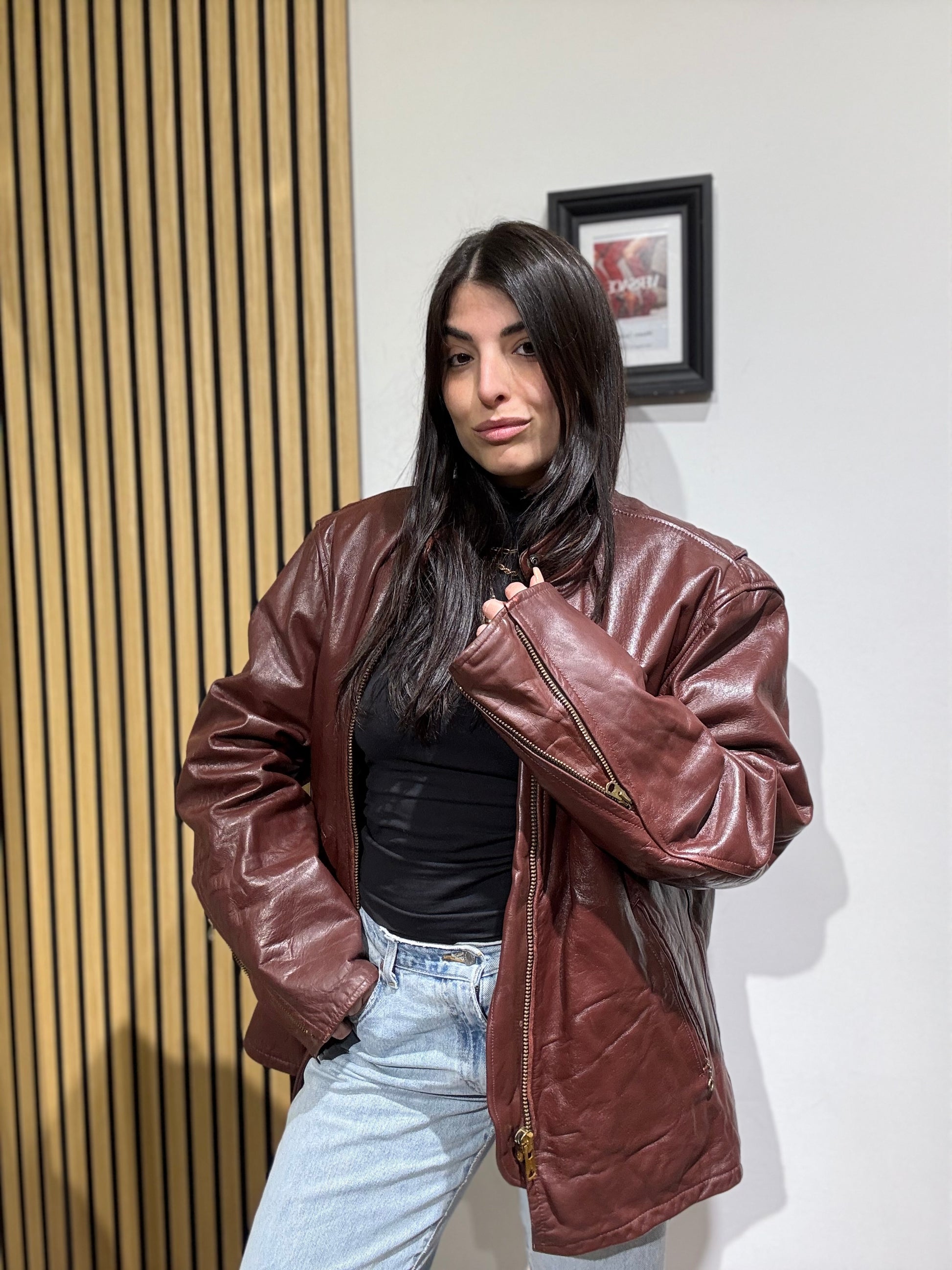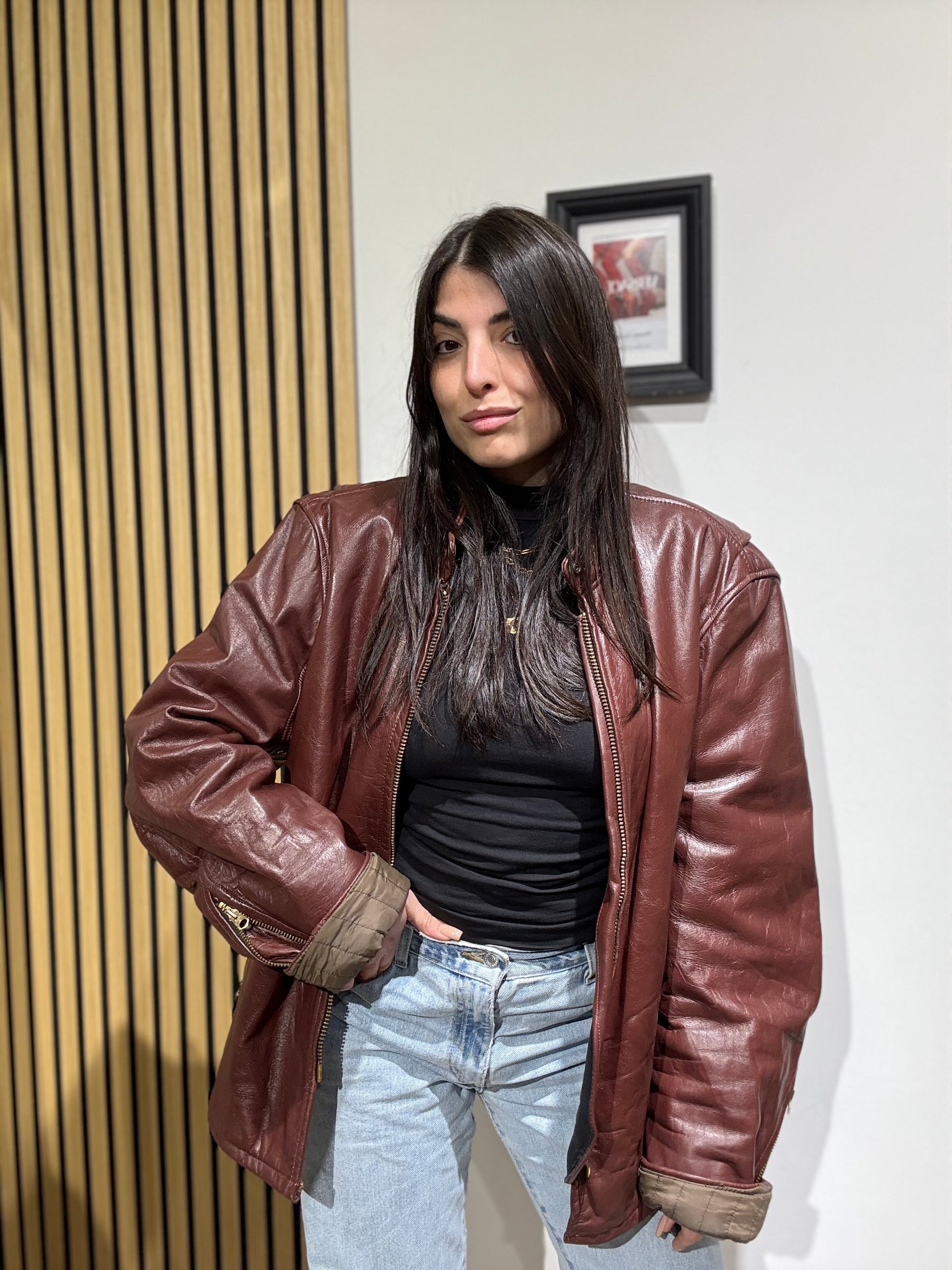 Giacca unisex in vera pelle,Oversize, Leggermente trapuntata all’interno.