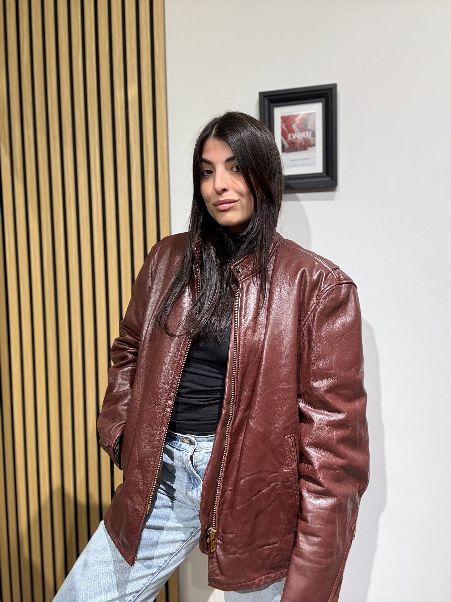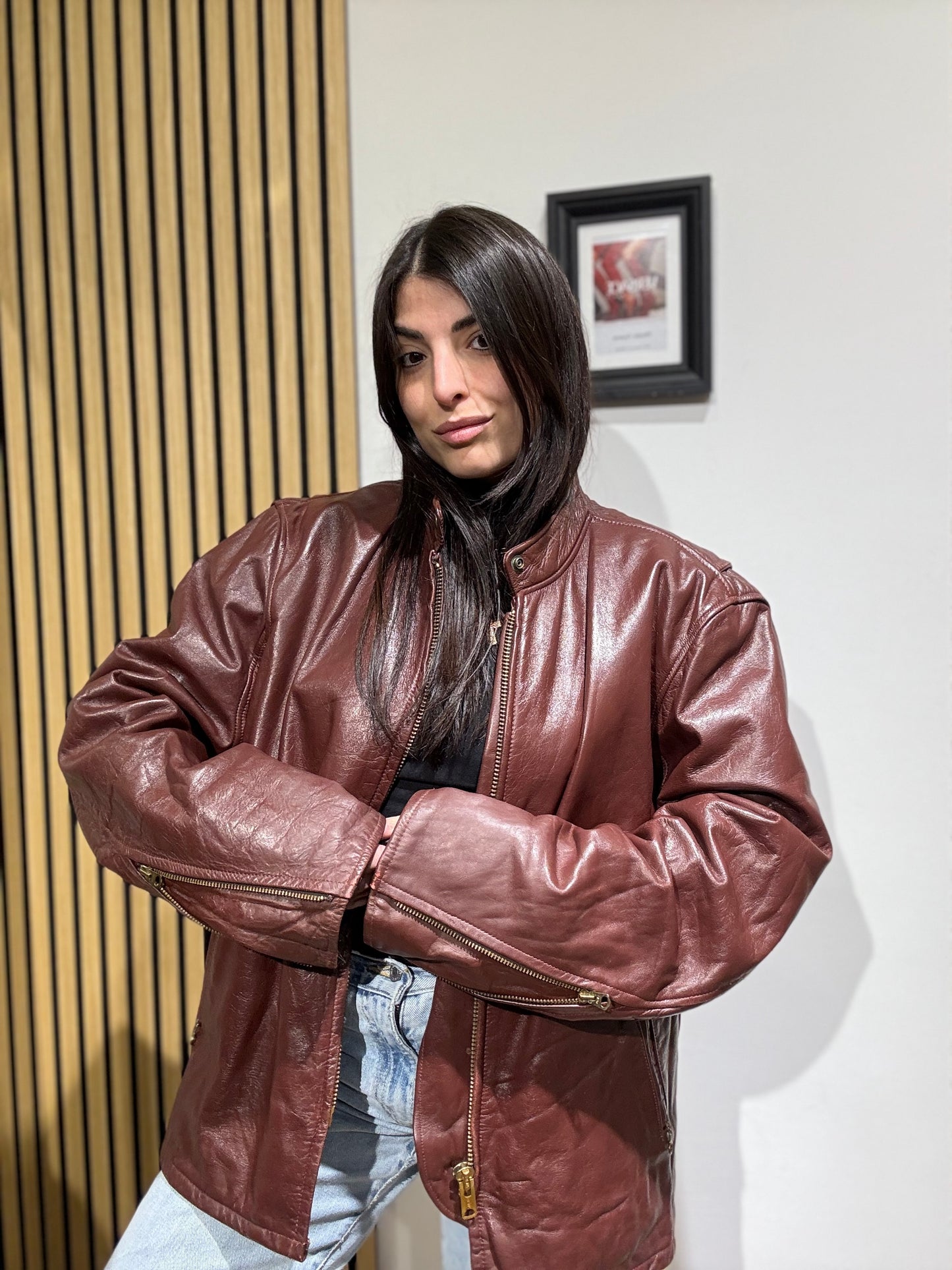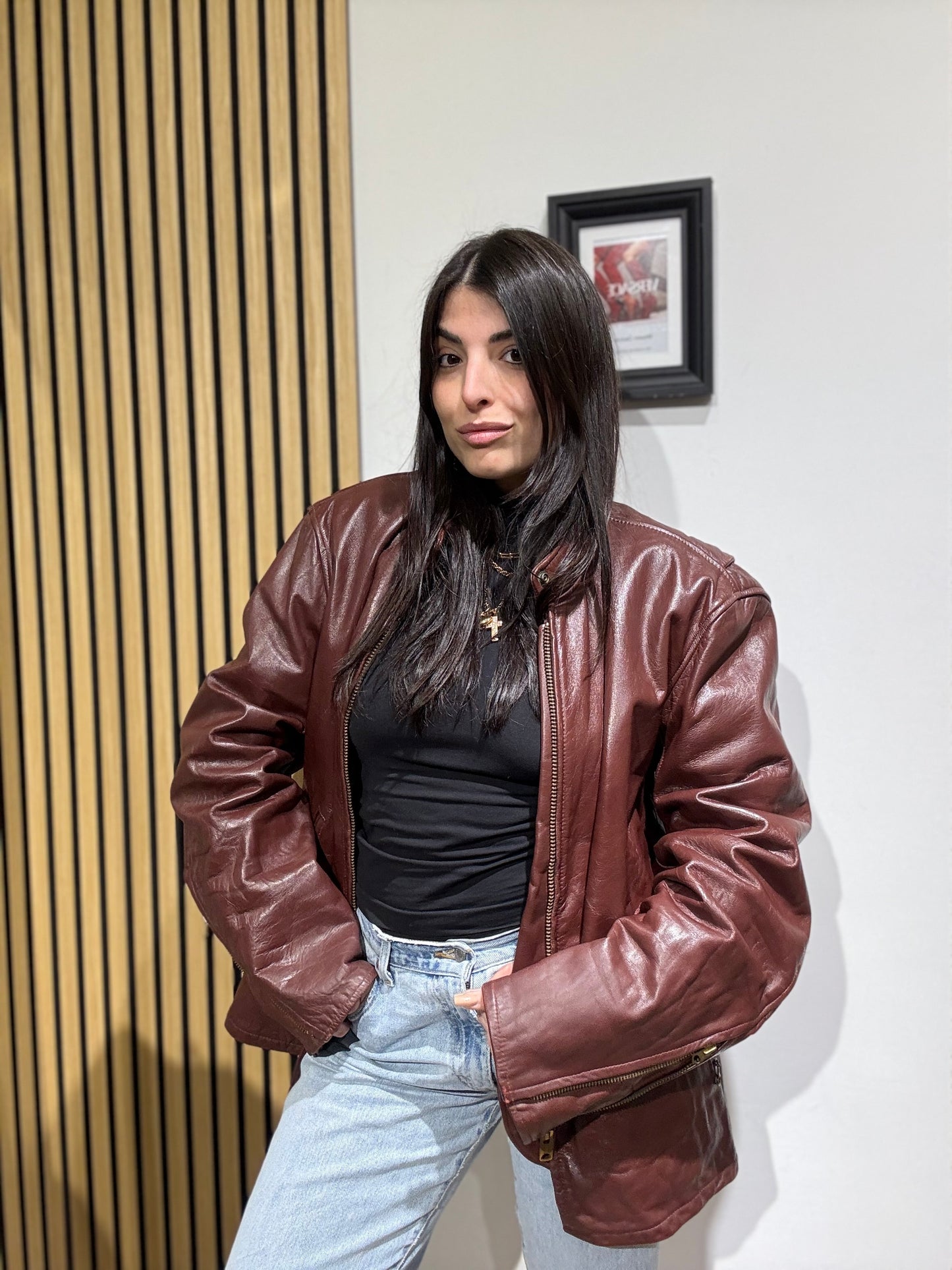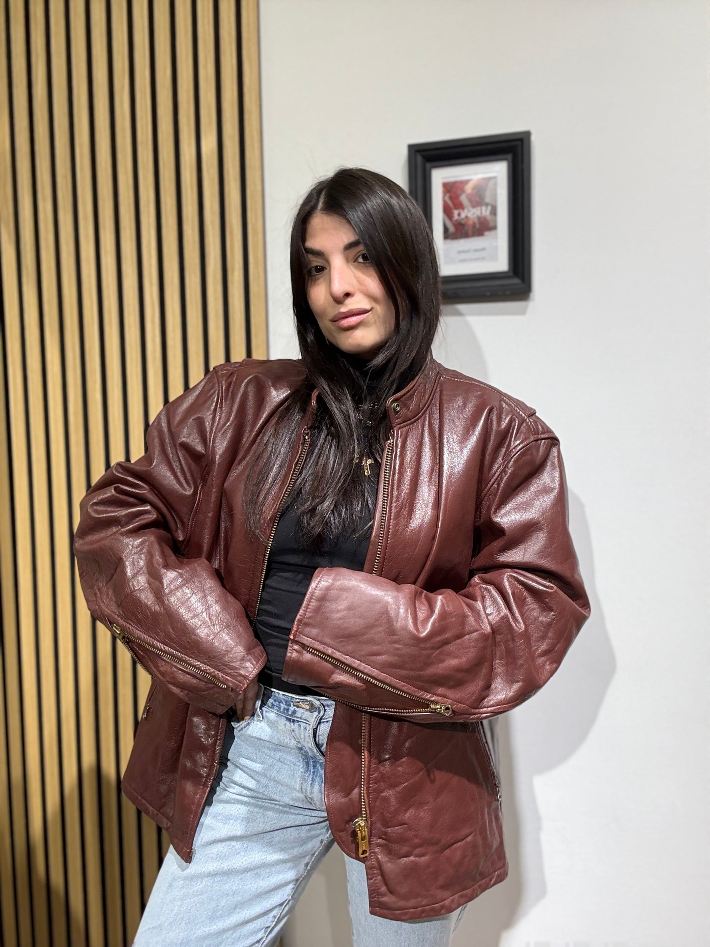 Giacca unisex in vera pelle,Oversize, Leggermente trapuntata all’interno.
