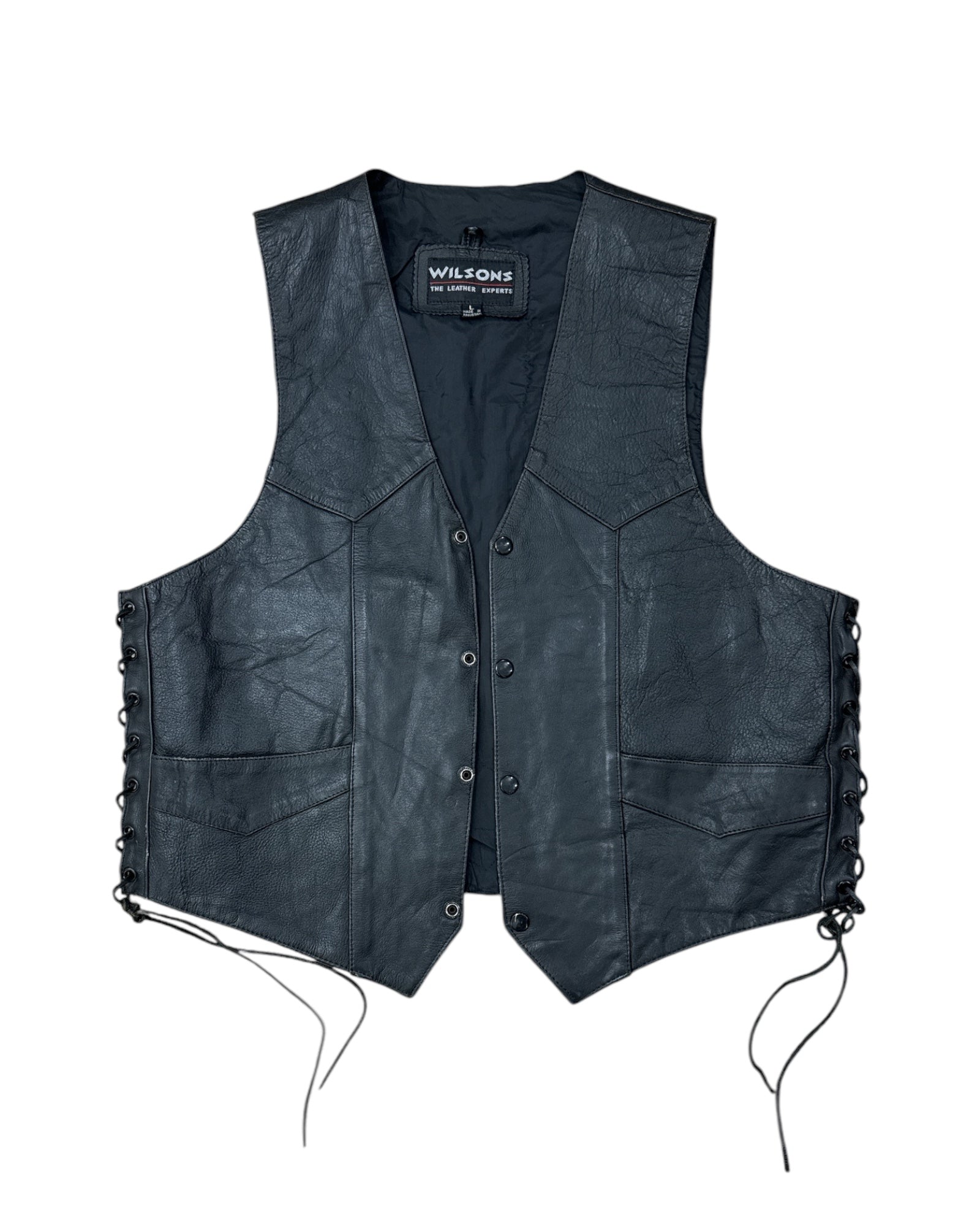 Gilet Wilsons Vintage in vera pelle regolabile con laccetti nei fianchi.