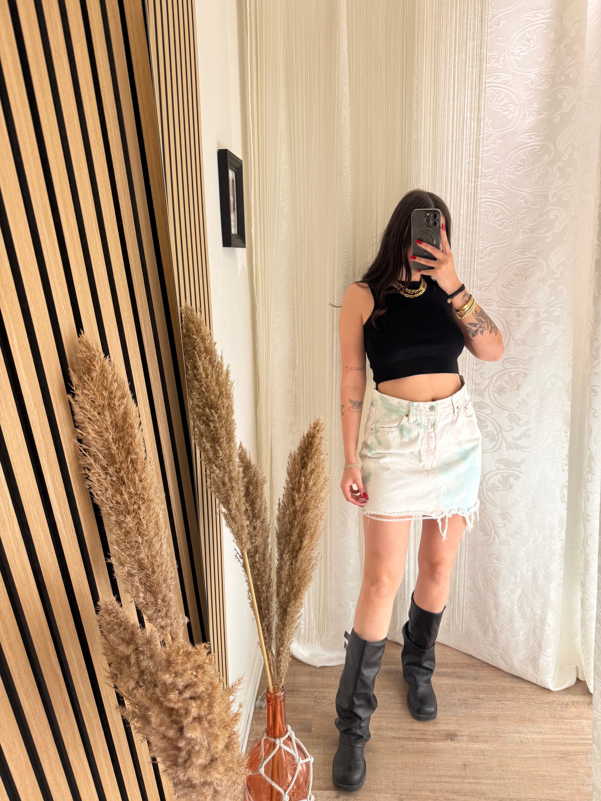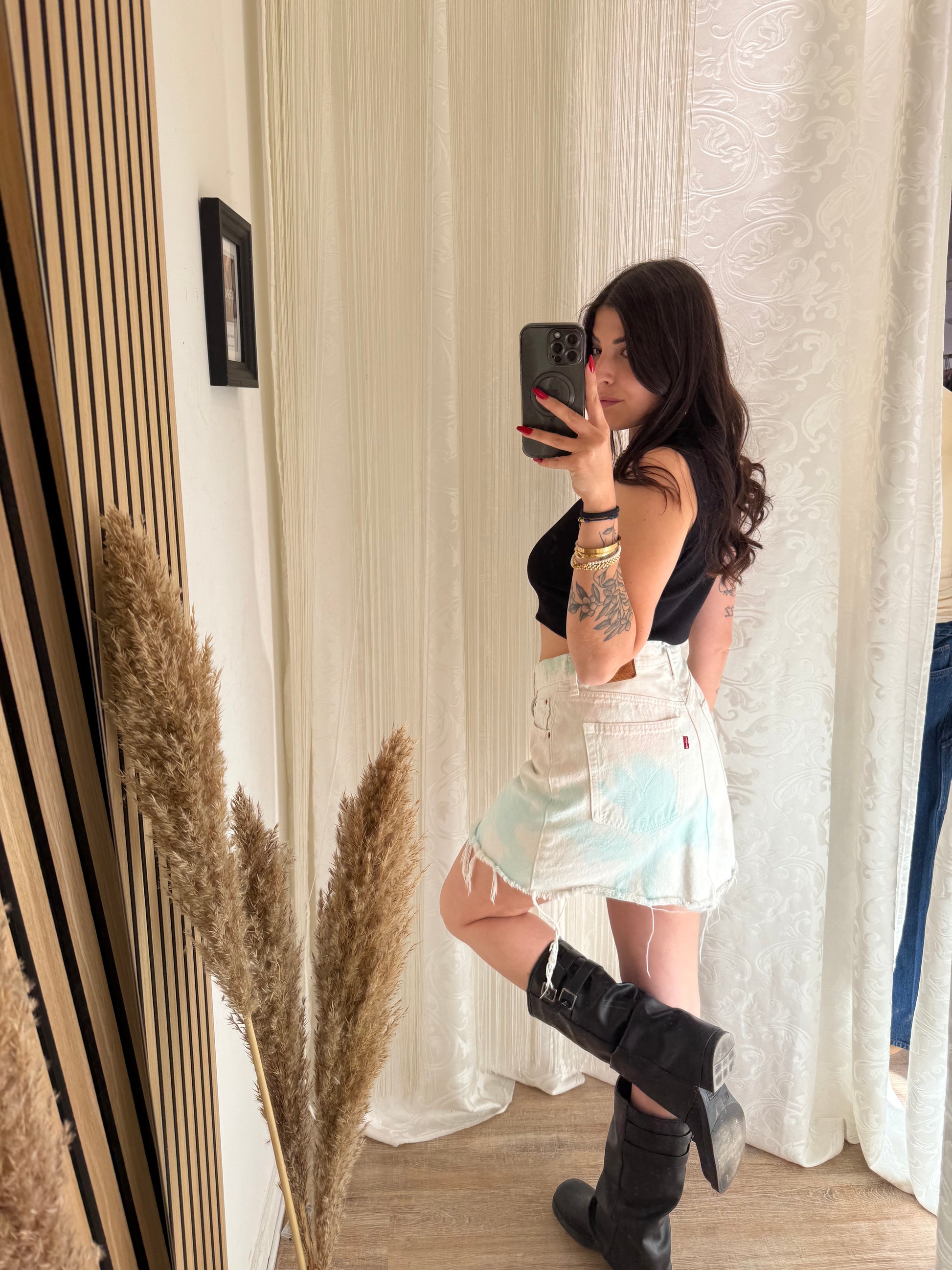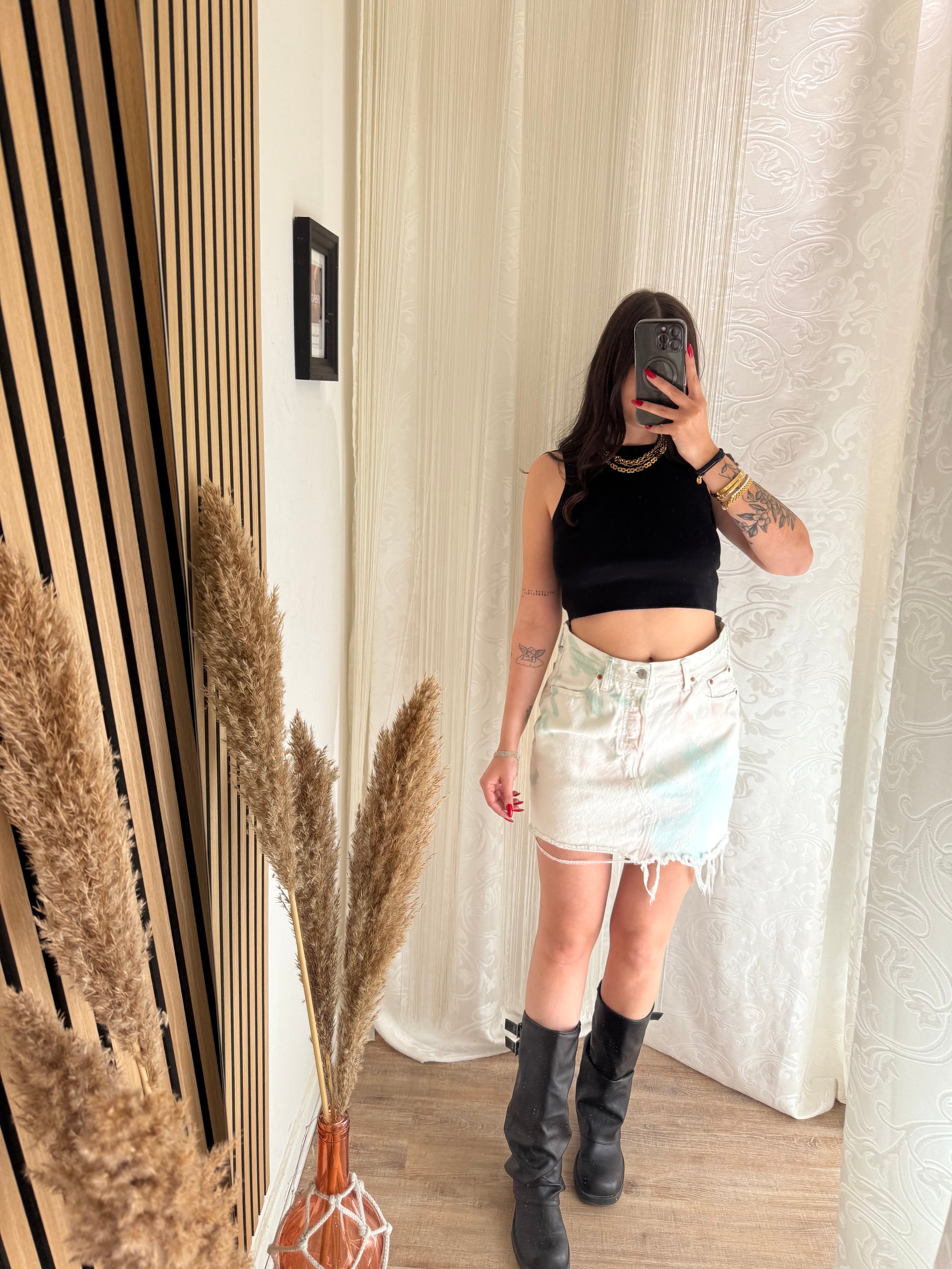 Gonna corta effetto tie Dye Sui toni dell’azzurro rosa e verde.