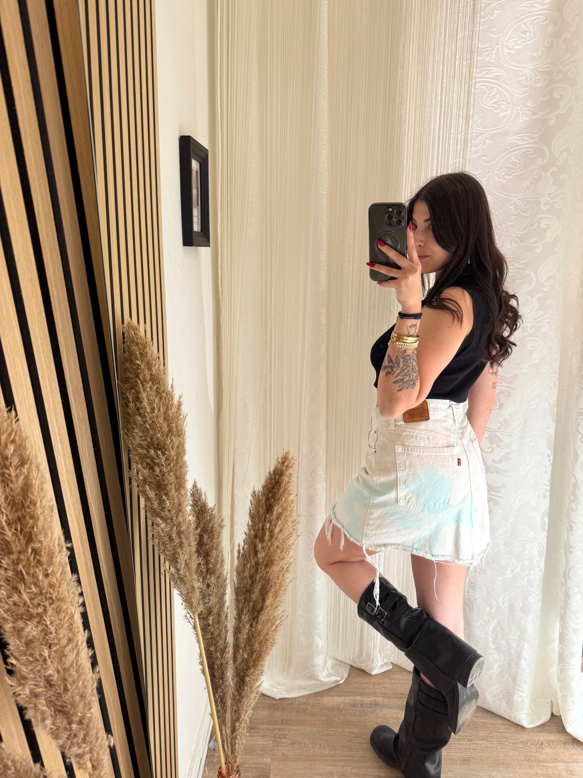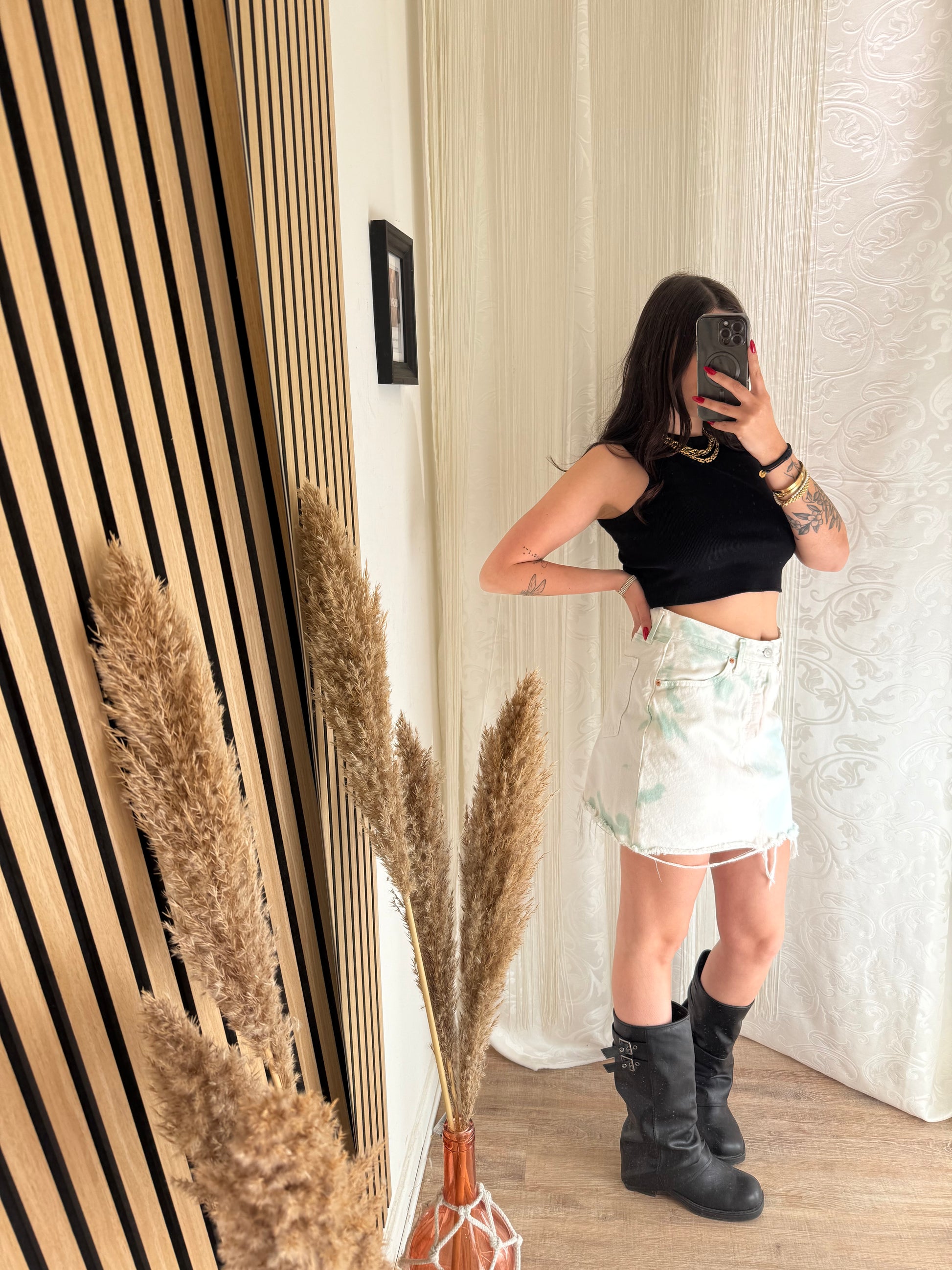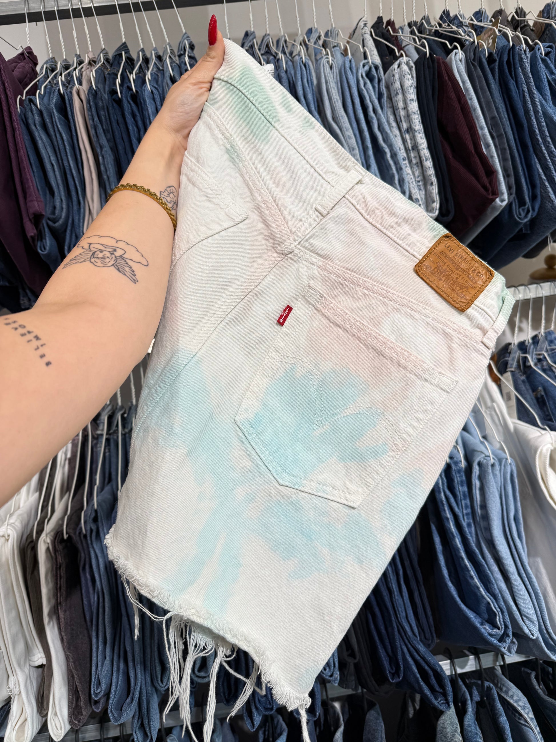 Gonna corta effetto tie Dye Sui toni dell’azzurro rosa e verde.