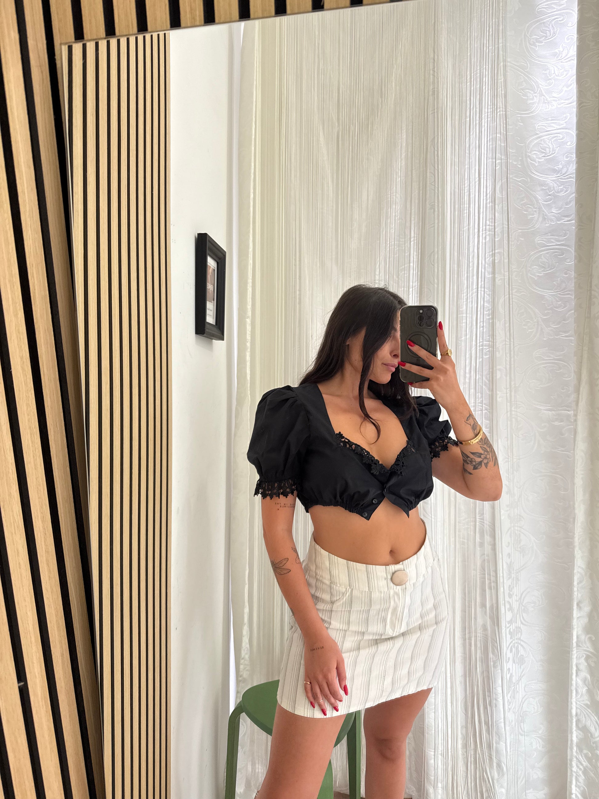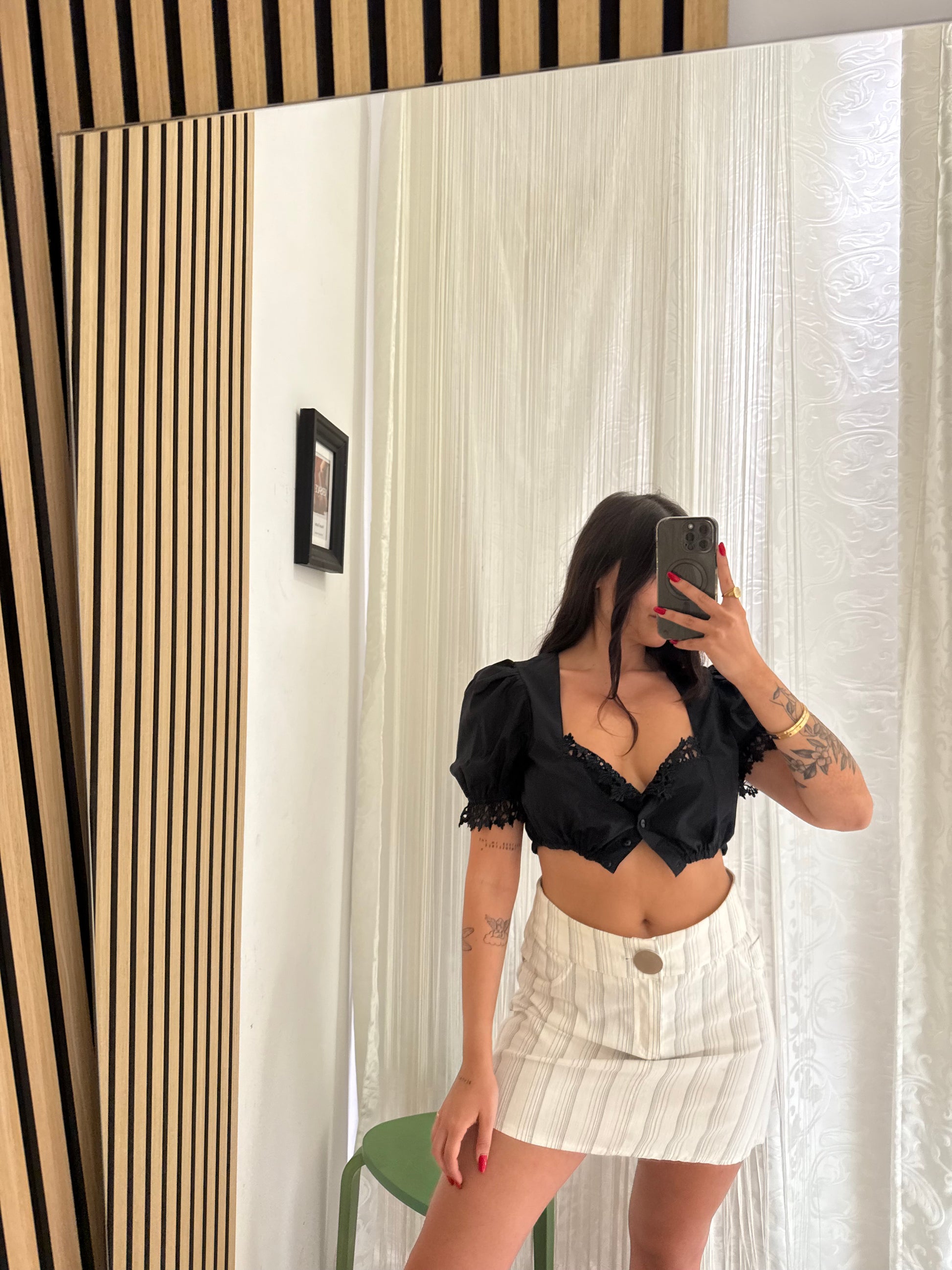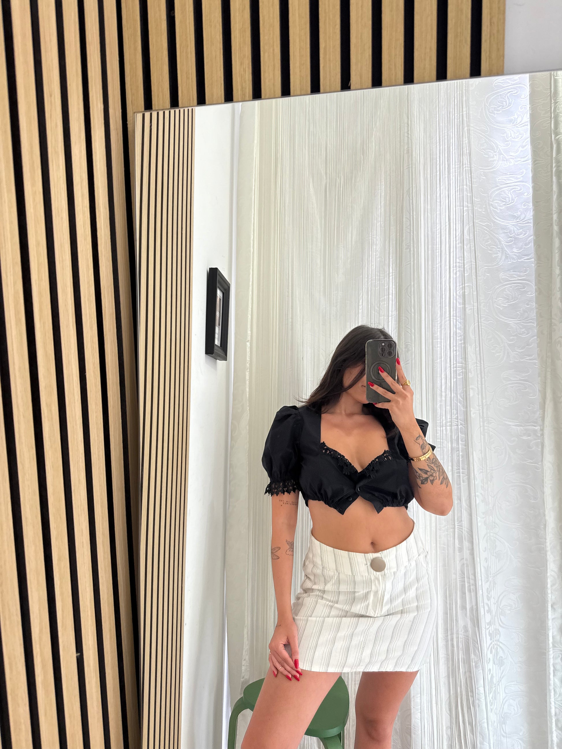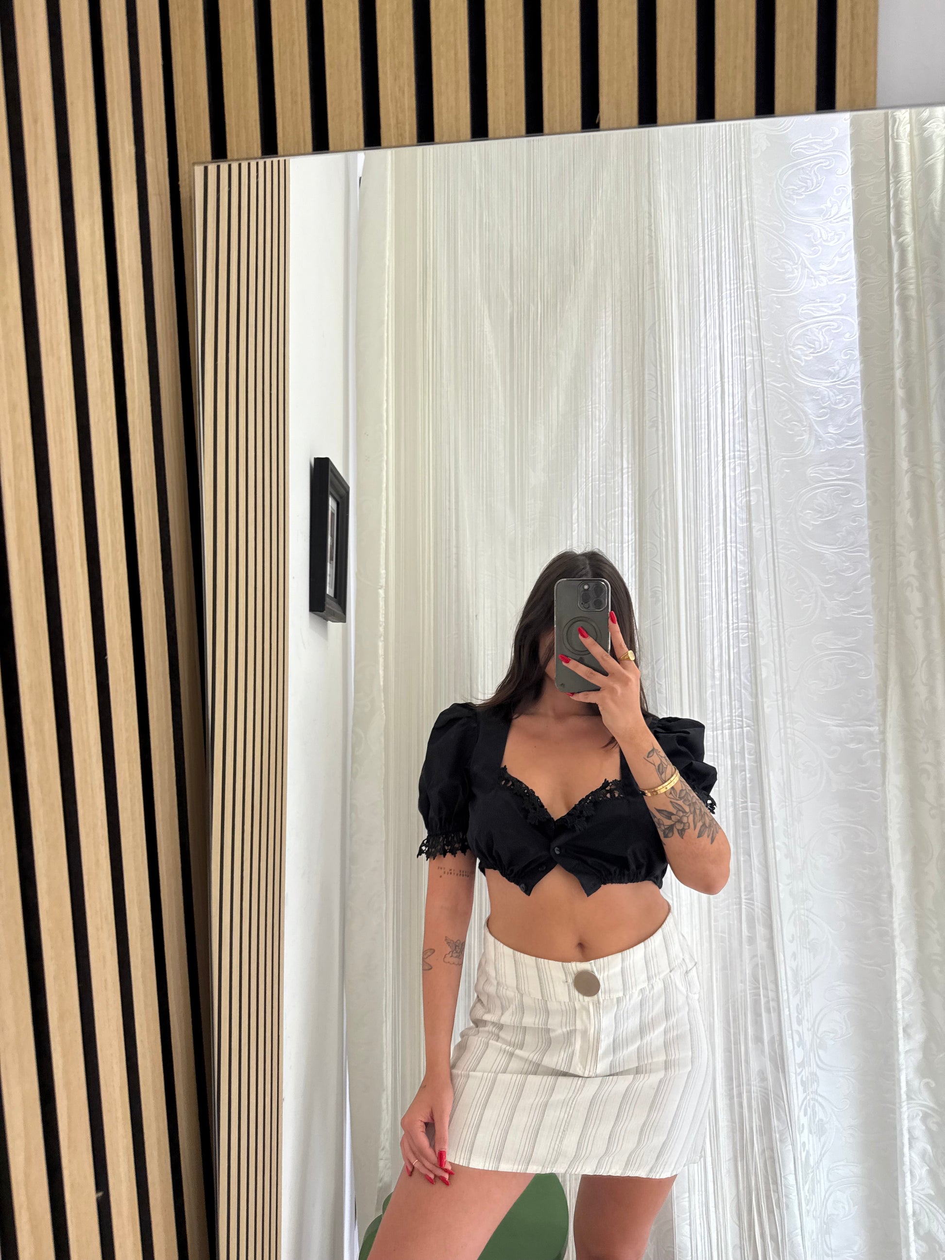 Minigonna in 95% cotone, colore bianco, panna a righe nere.