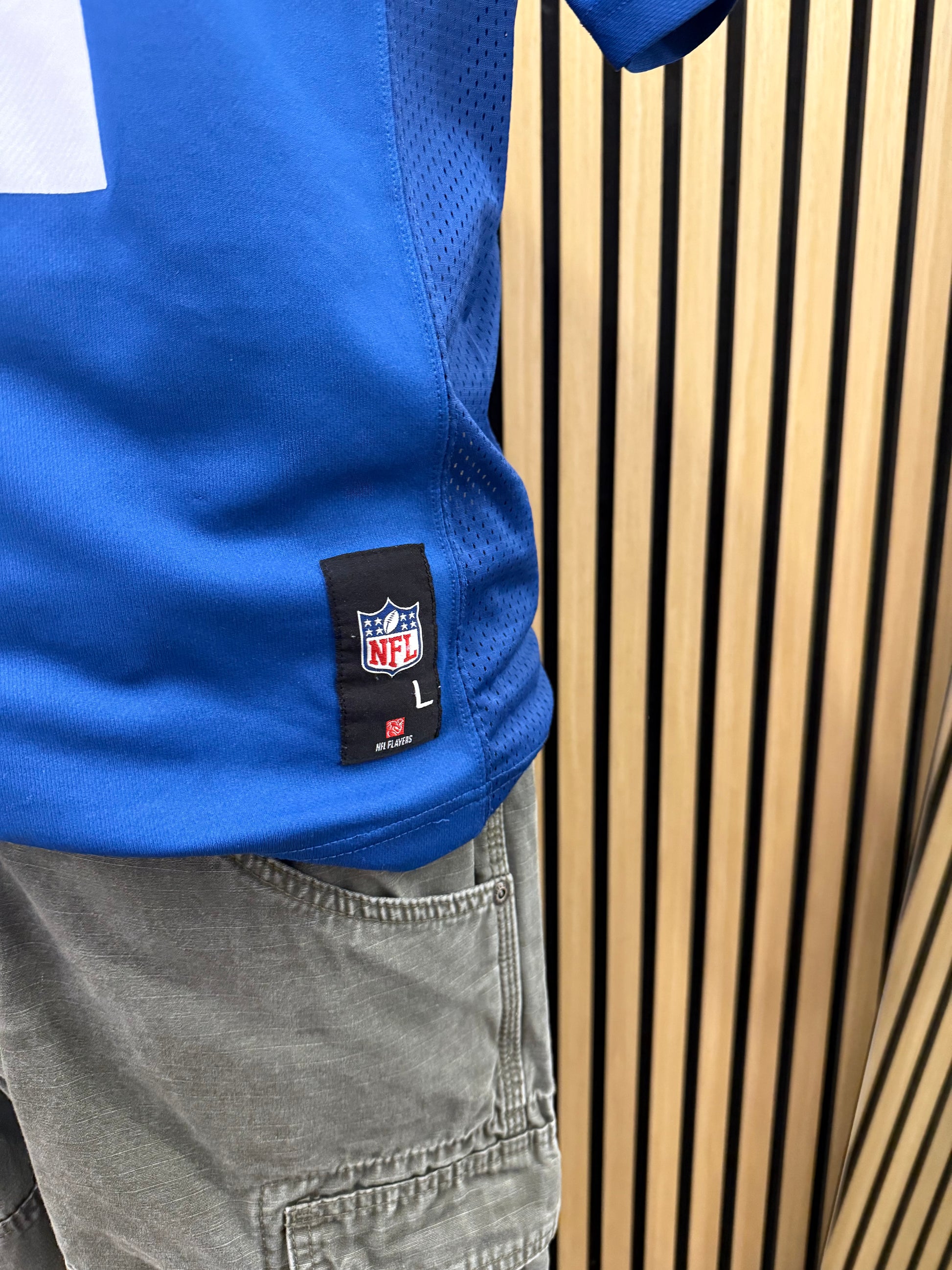 Realizzata in poliestere tecnico con pannelli traspiranti laterali, offre comfort e resistenza — perfetta per tifosi, collezionisti e appassionati di football americano autentico.