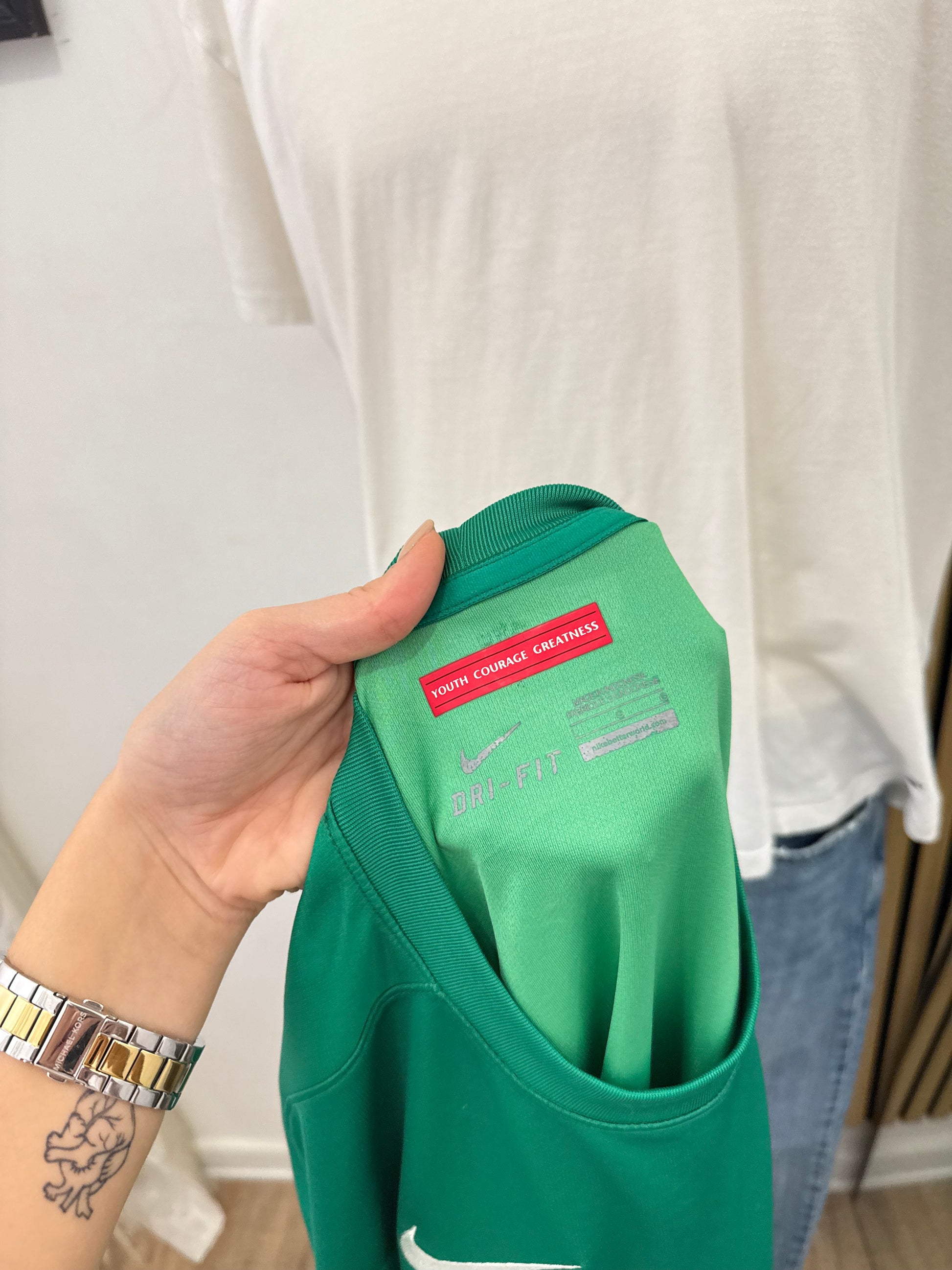 La divisa si presenta in un elegante verde brillante a maniche lunghe, con logo Manchester United sul petto, swoosh Nike bianco e sponsor centrale Chevrolet. Trattandosi della versione Authentic, il taglio e i materiali sono identici a quelli usati in partita.