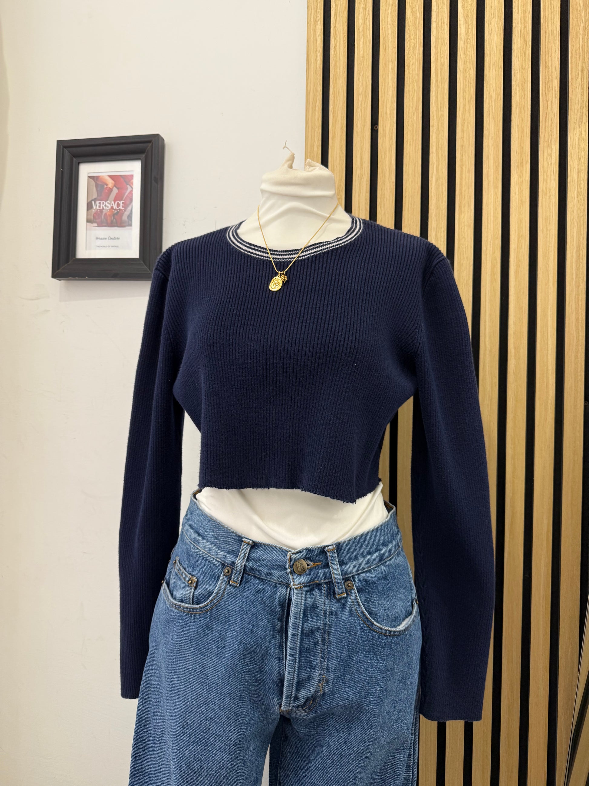 Maglia manica Lunga resa crop con taglio vivo