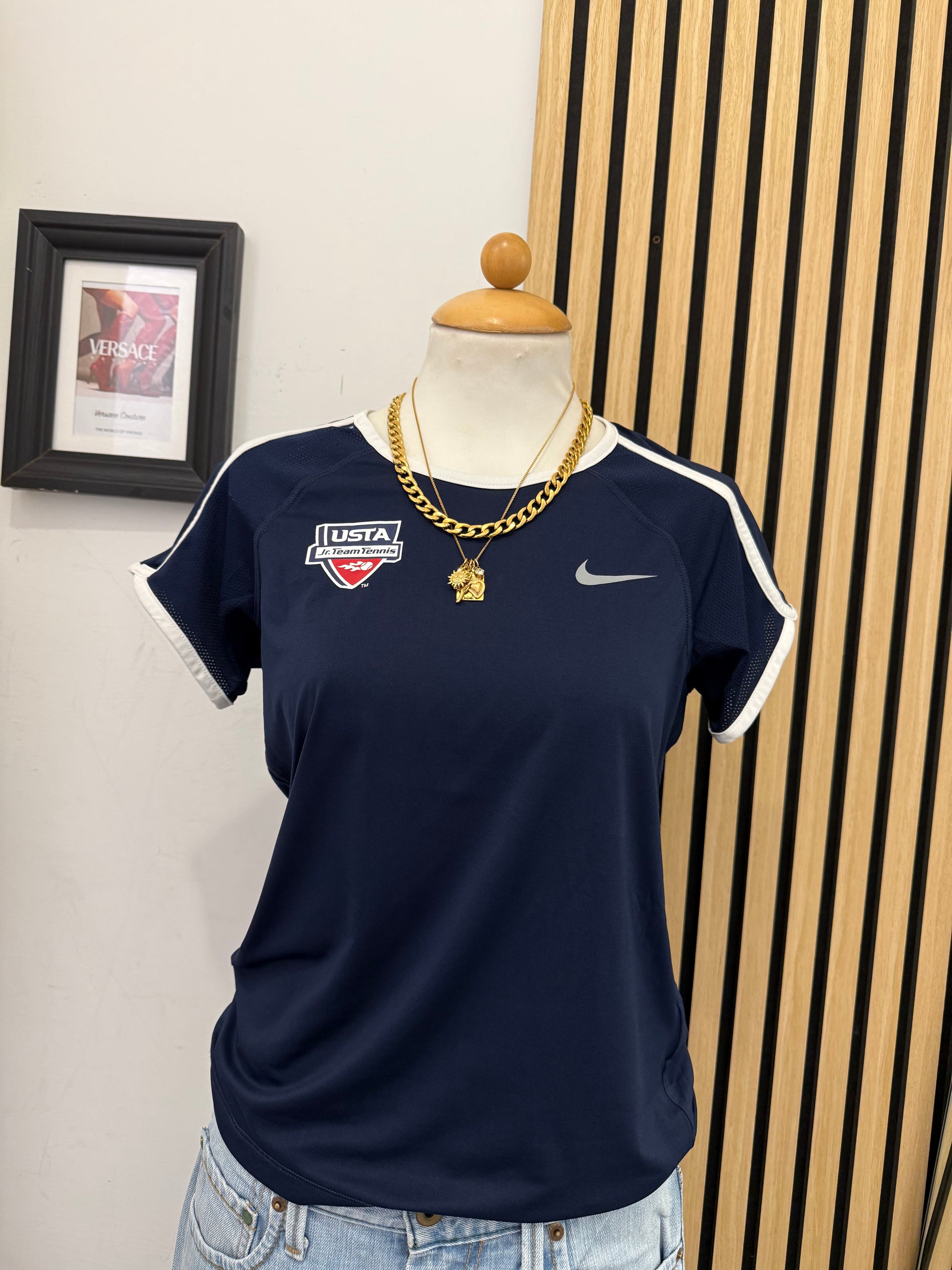 Autentica t-shirt tecnica Nike Dri-Fit del programma USTA Jr. Team Tennis, un pezzo unico che unisce heritage sportivo e stile vintage.