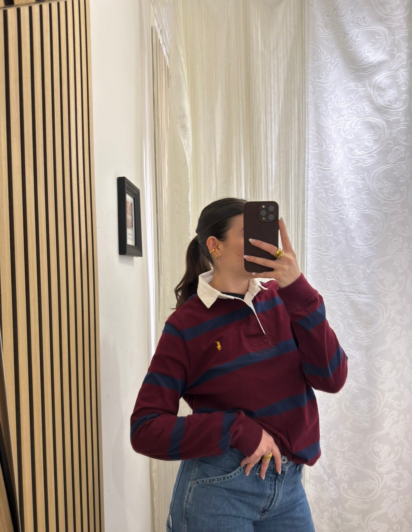 Polo a righe Burgundi unisex